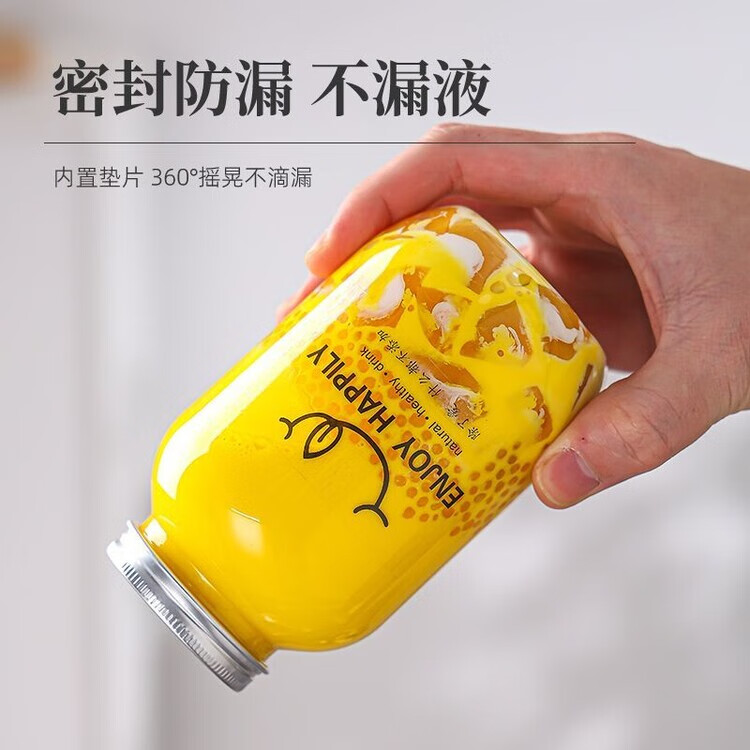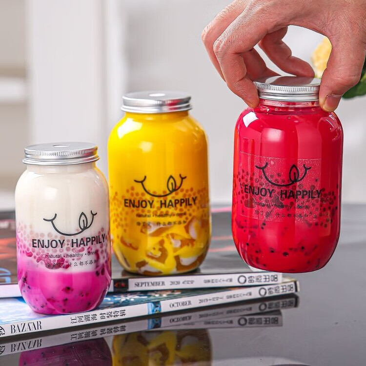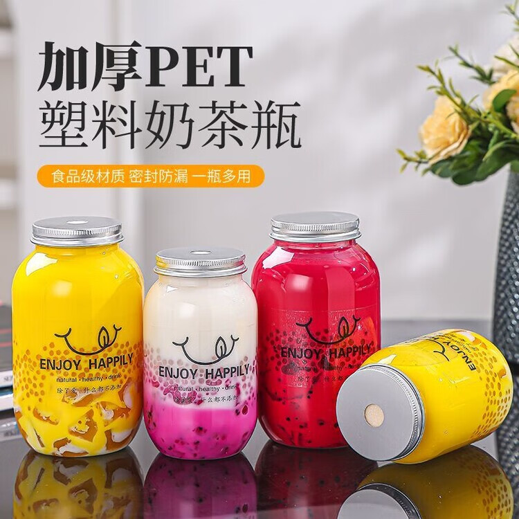 简漾网红50只装大喜茶瓶胖胖杯带盖pet奶茶杯子一次性塑料瓶果汁饮料 开孔盖 350毫升大喜茶50套