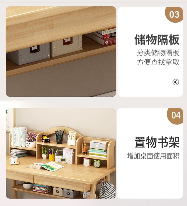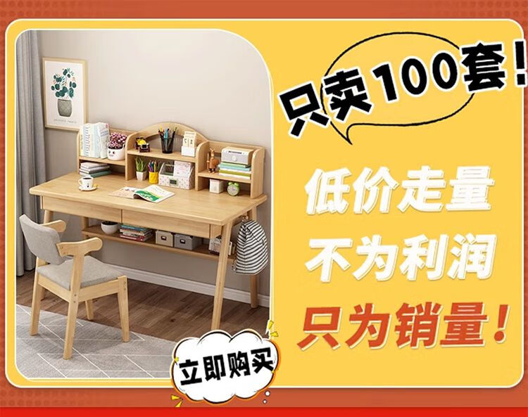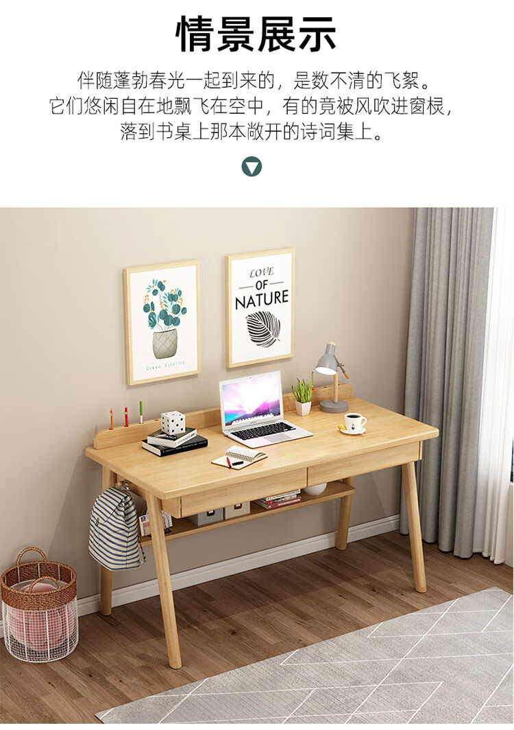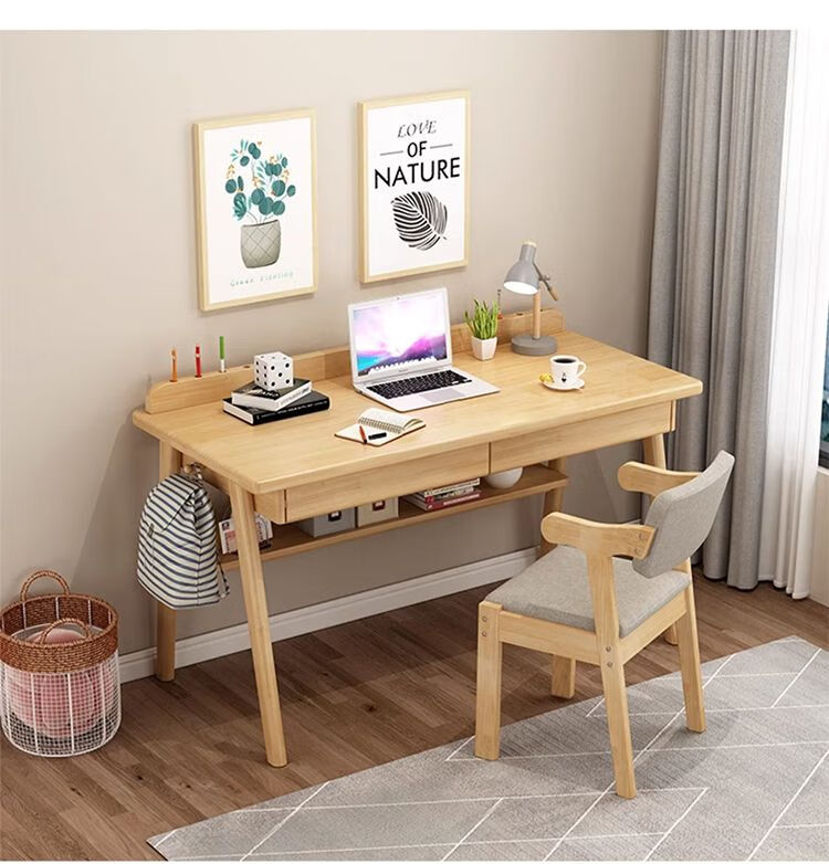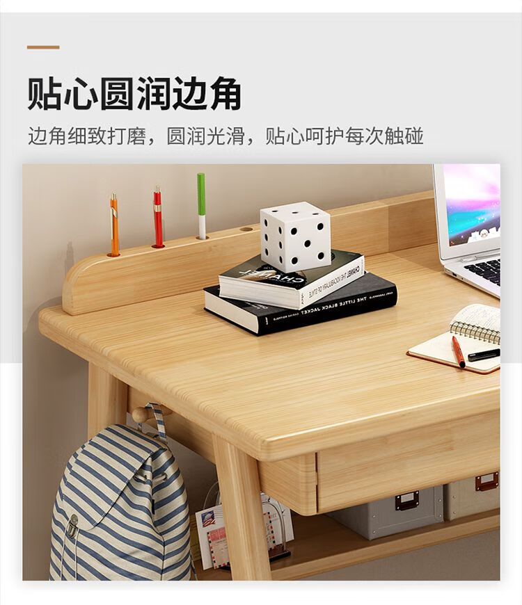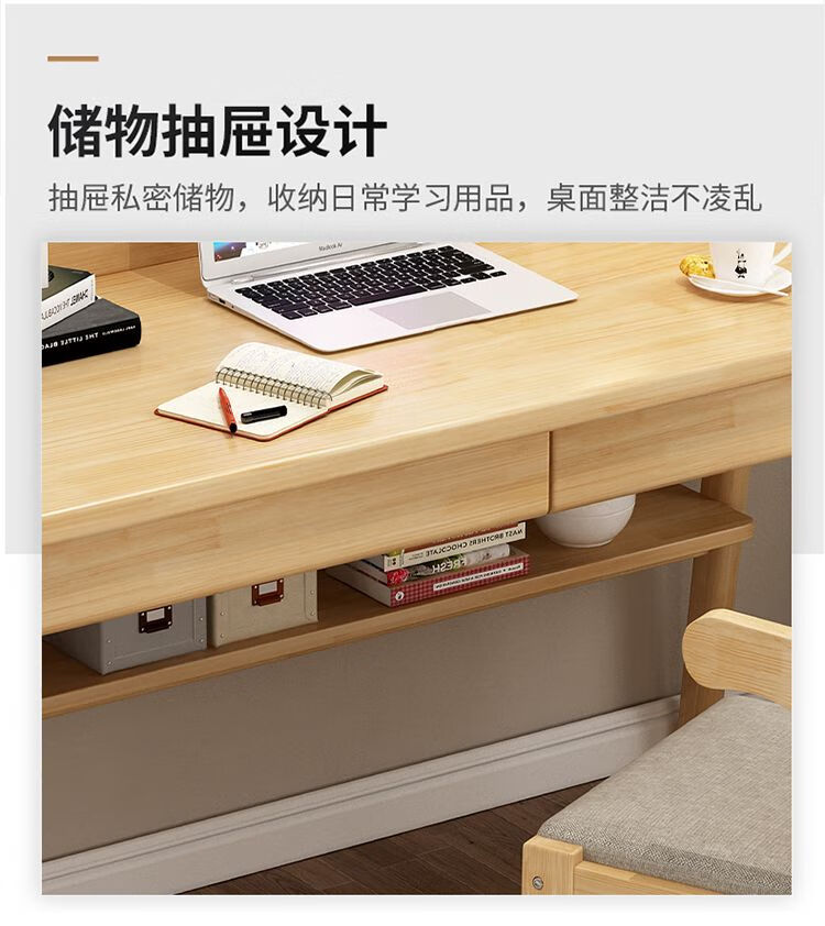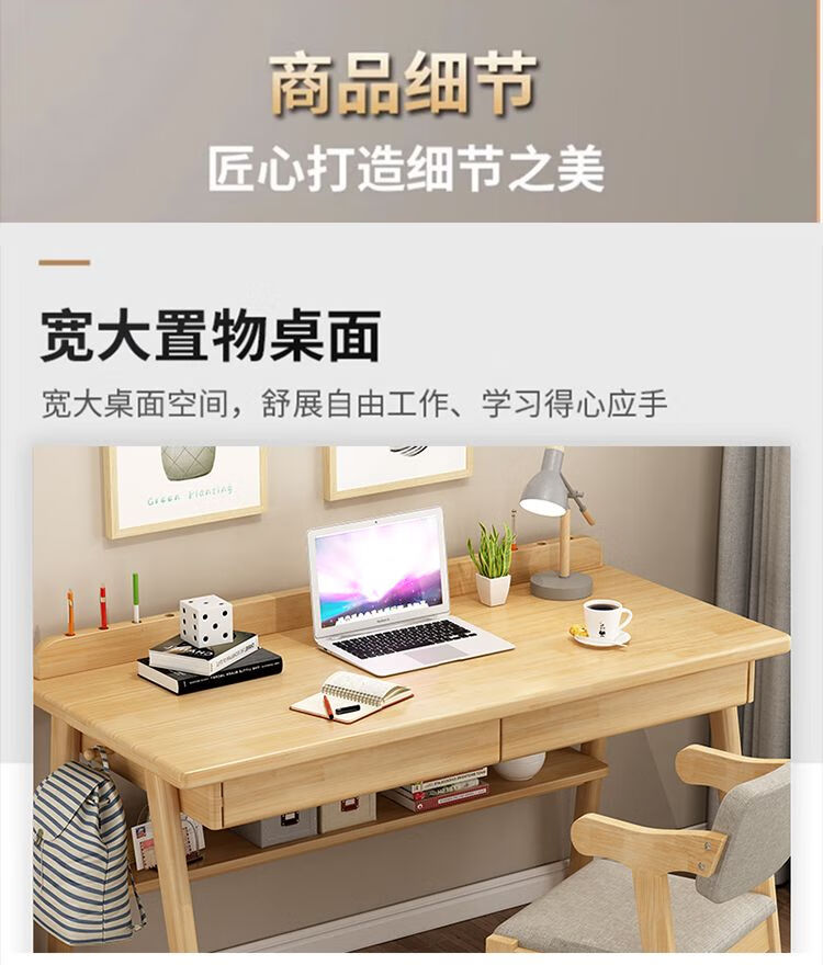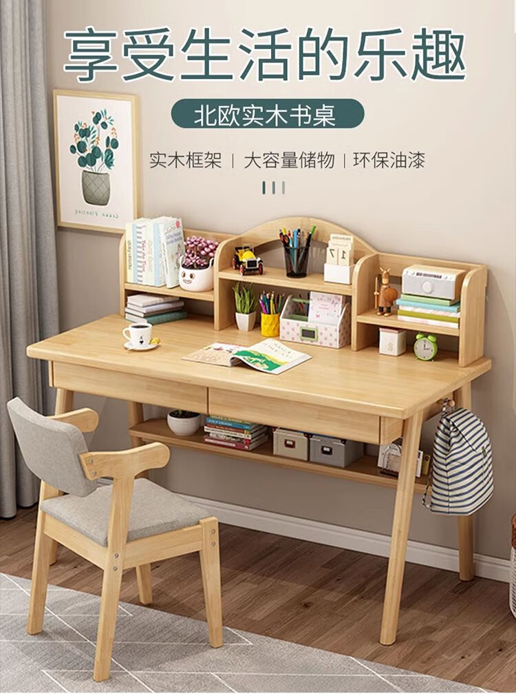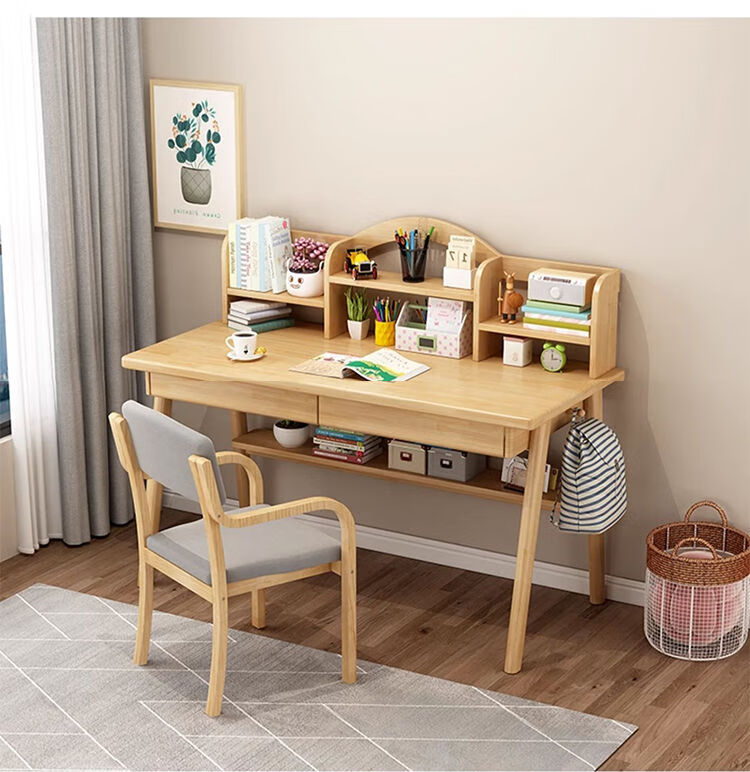 弘星隆实木书桌儿童书架一体桌学生组合学习写字桌简约卧室办公电脑桌子 全实木 【单抽+横板】60x50x75厘米