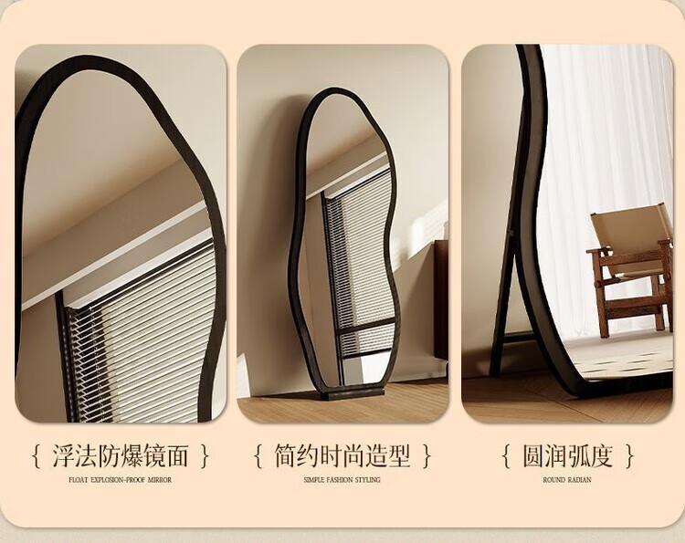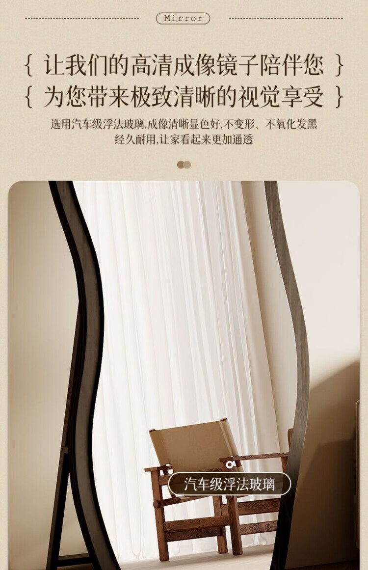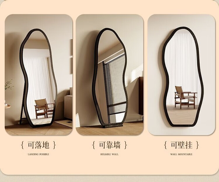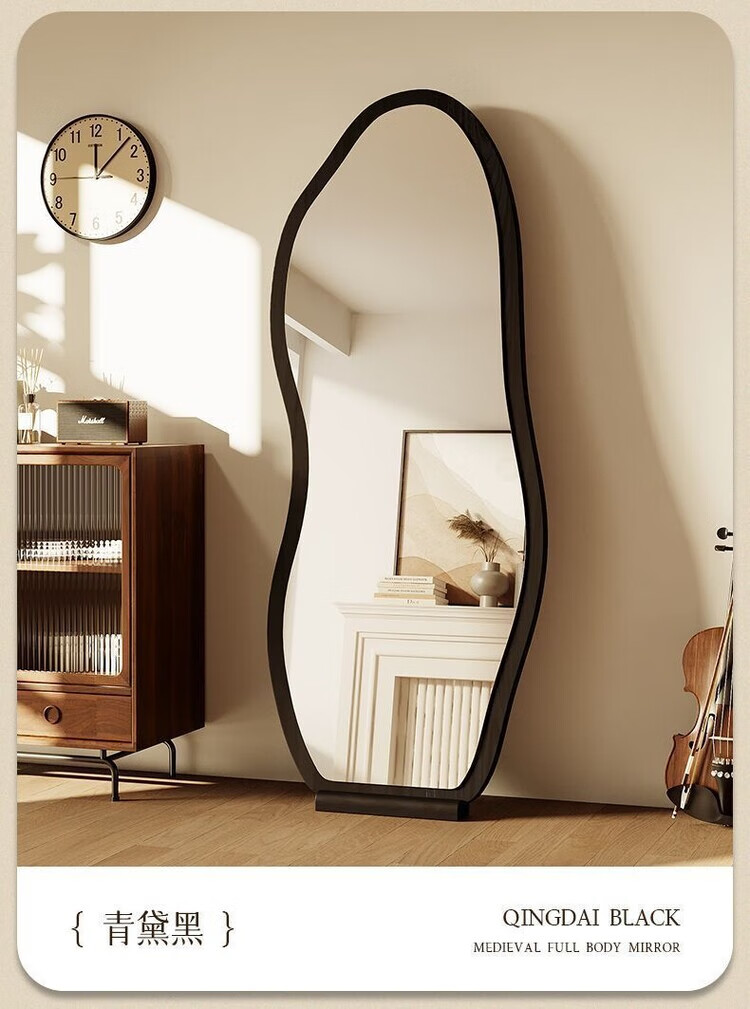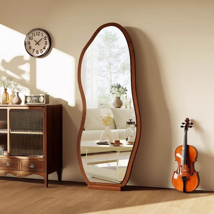 欣慕雅中古镜子全身镜落地镜卧室复古异形壁挂高级感穿衣镜服装店试衣镜 【原木理】-浮法玻璃+高清防爆镜面 【实木底托】购买时联系客服