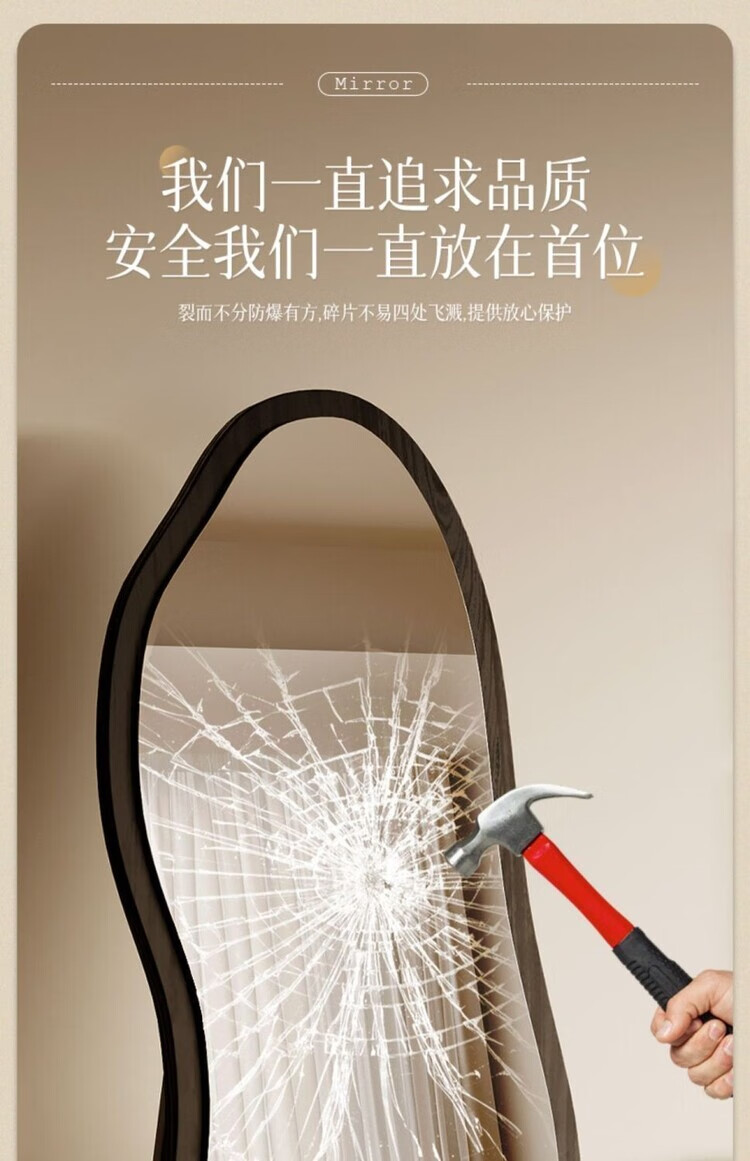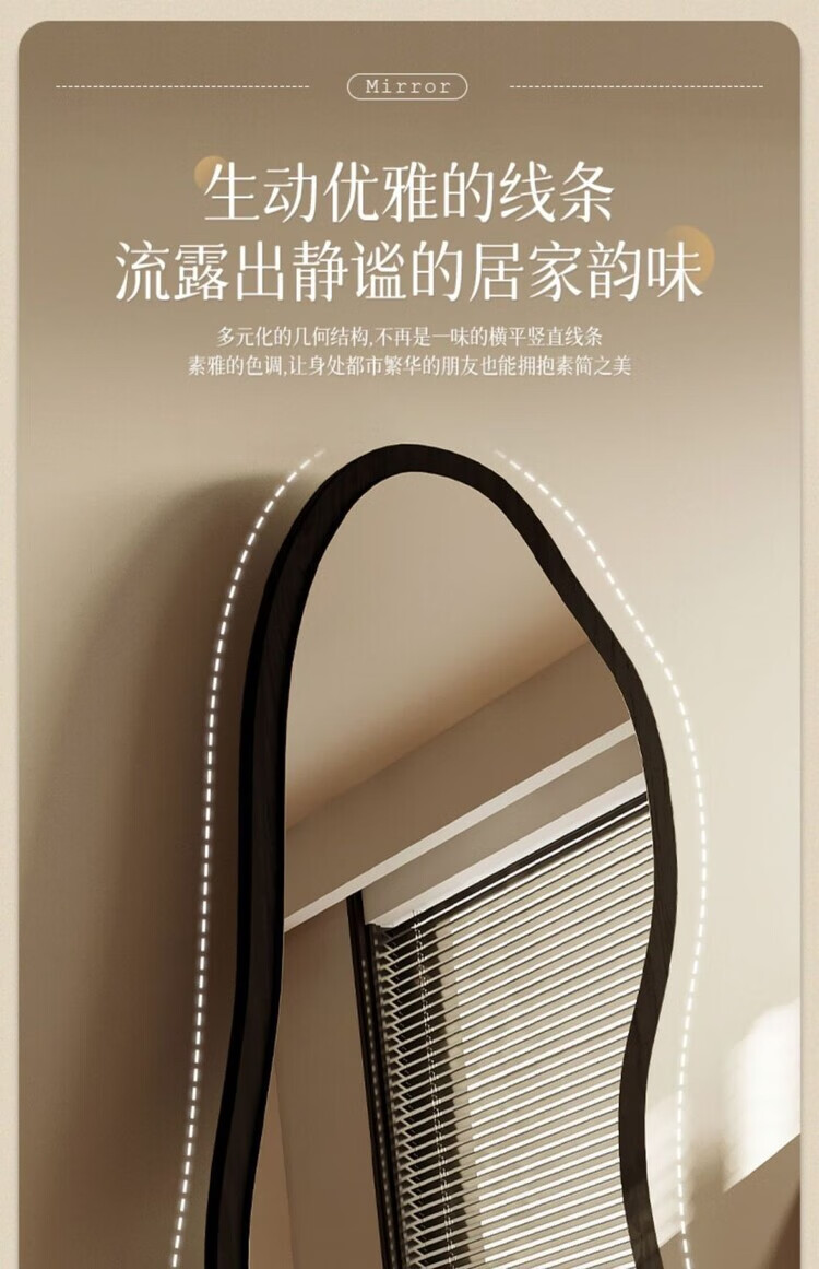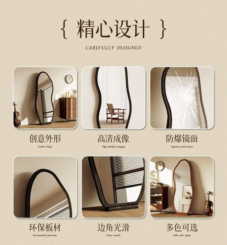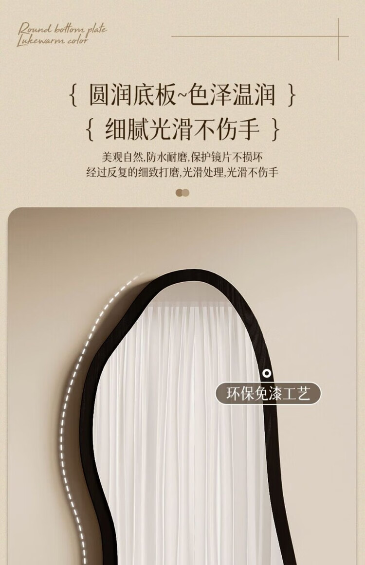 欣慕雅中古镜子全身镜落地镜卧室复古异形壁挂高级感穿衣镜服装店试衣镜 【原木理】-浮法玻璃+高清防爆镜面 【实木底托】购买时联系客服