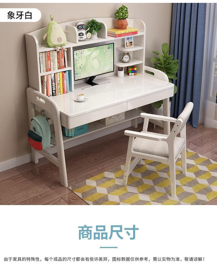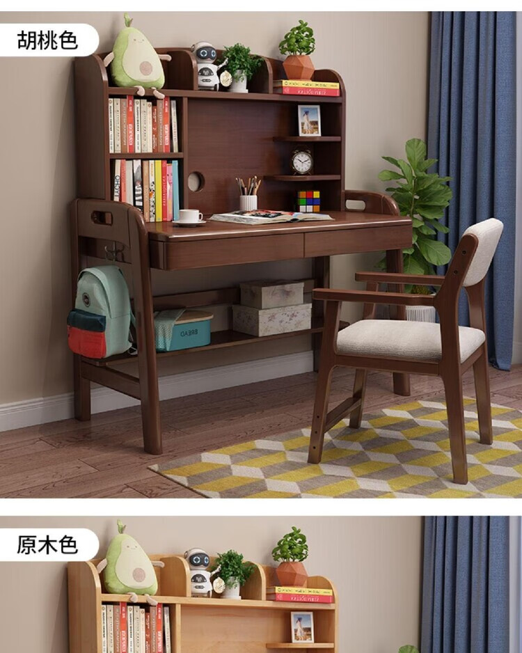 弘星隆实木学习桌男孩儿童书桌书架一体简约电脑桌家用卧室学生写字桌子 【胡桃色】单桌 实木打造. 80x60x135cm