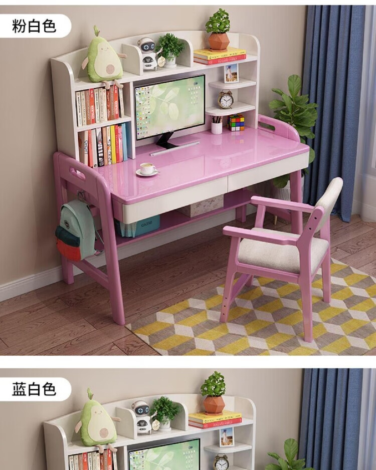 海诗圣堡儿童书桌写字桌家用小学生儿童学习桌椅男孩女孩可升降作业桌套装 学校同款 60*40桌面+粉色+桌椅