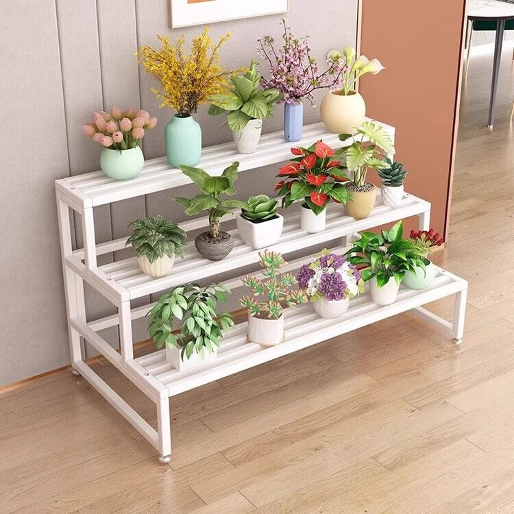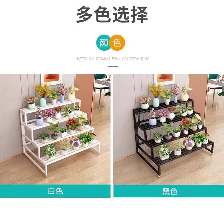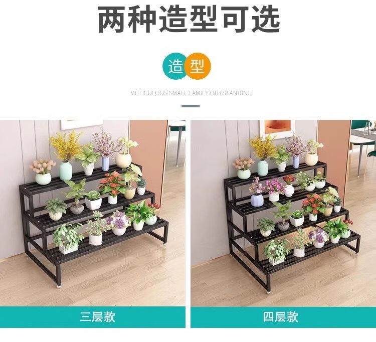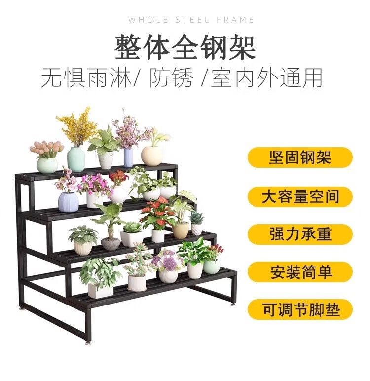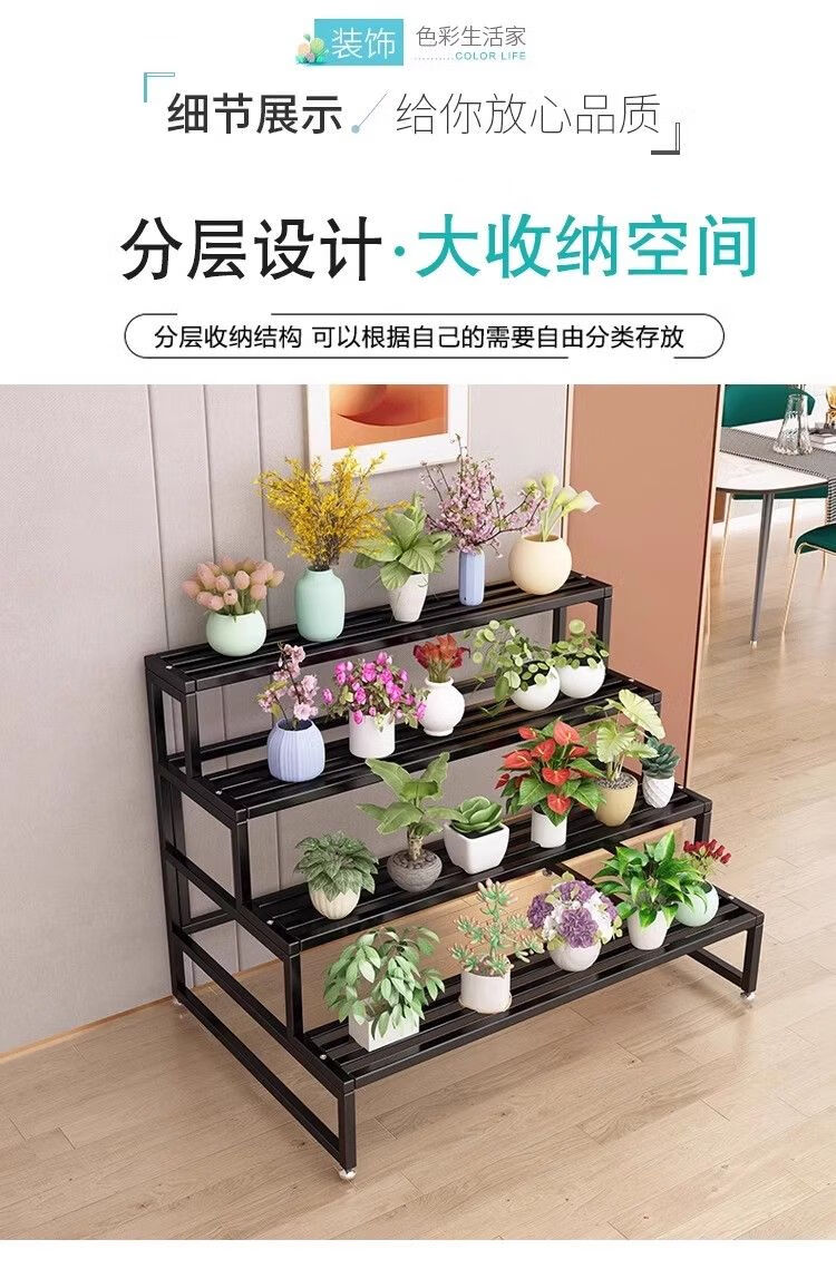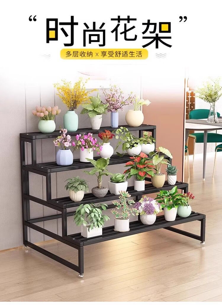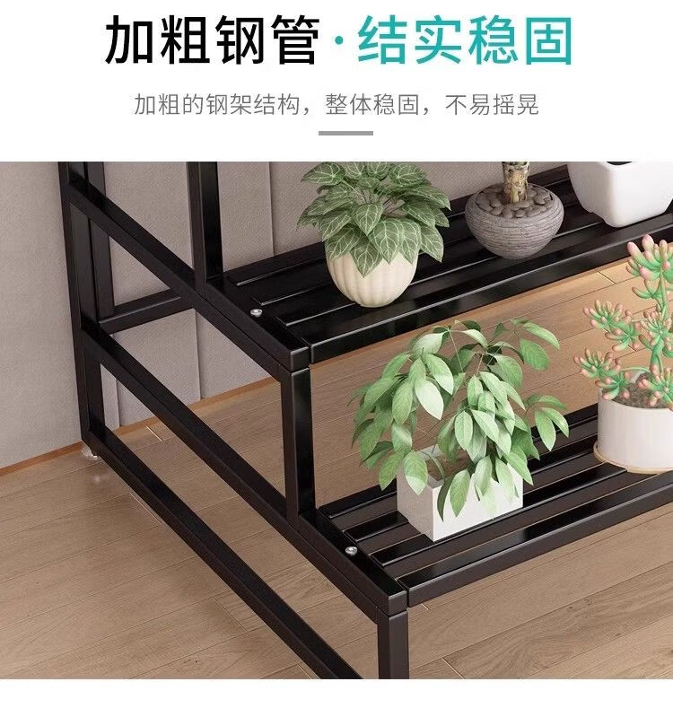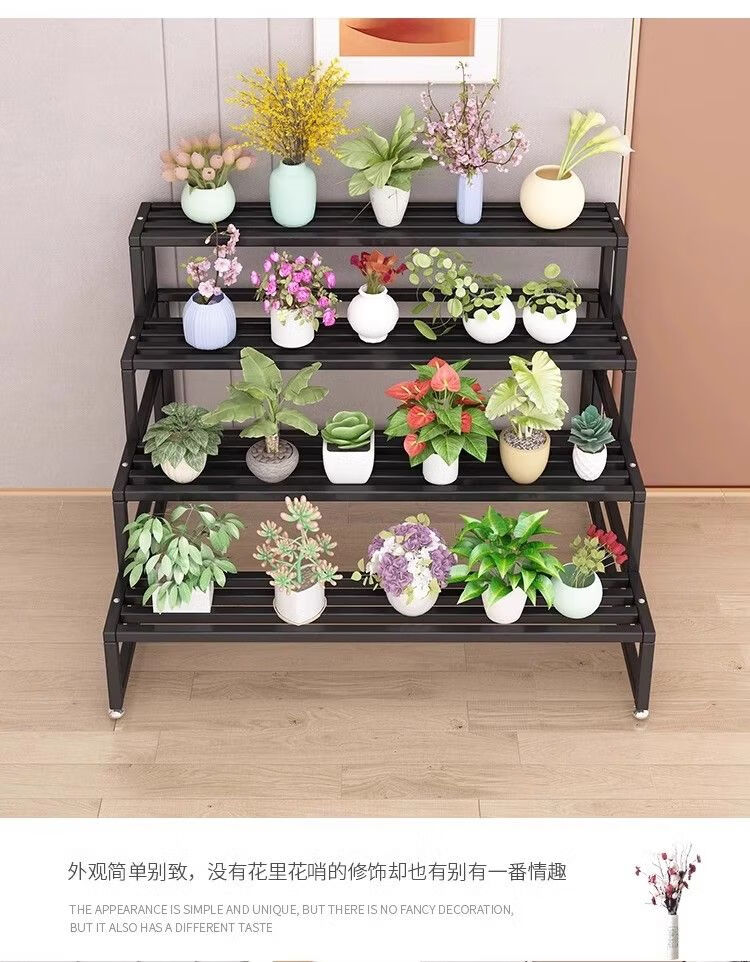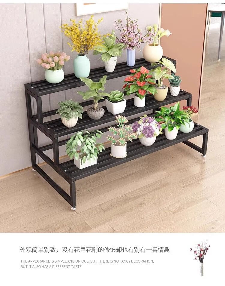 欣慕雅阳台花架子落地式多层阶梯式防水防锈庭院多肉室内室外铁艺花架 黑色【2层80长】加粗加厚