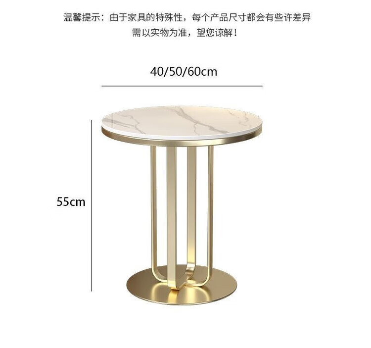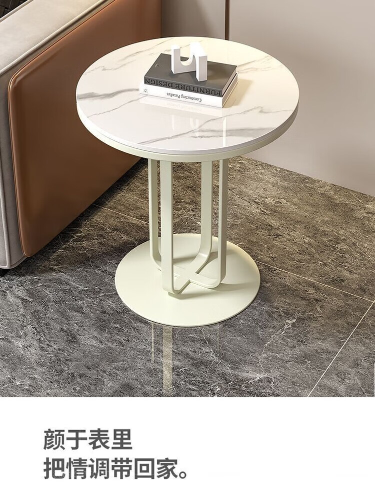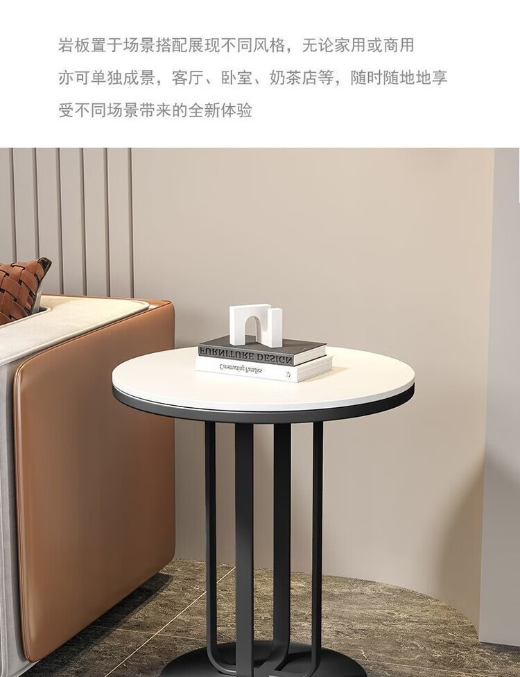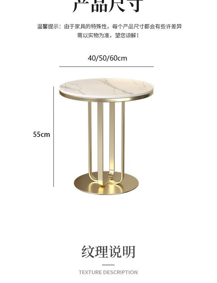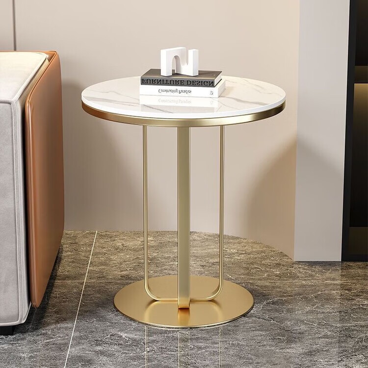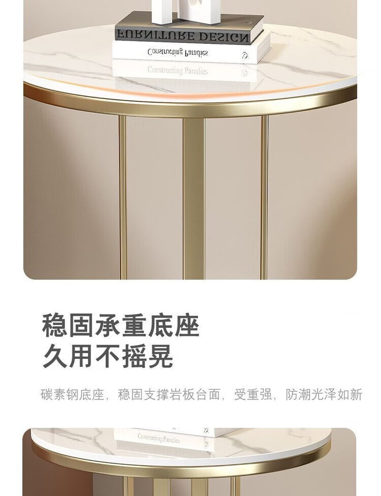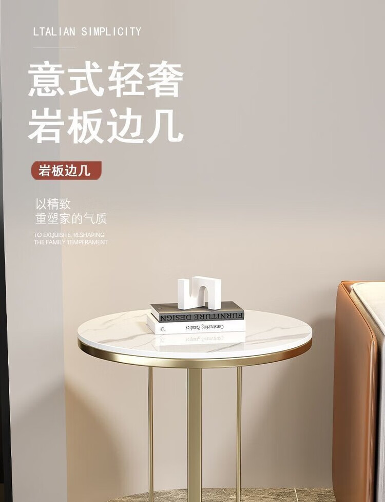 欣慕雅轻奢岩板边几小茶几客厅沙发边桌角几简约酒店客房阳台时尚小圆桌 贵宾金-雪山白亮光岩板【11mm】 【升级加重1斤-偏小桌面】直径40高55