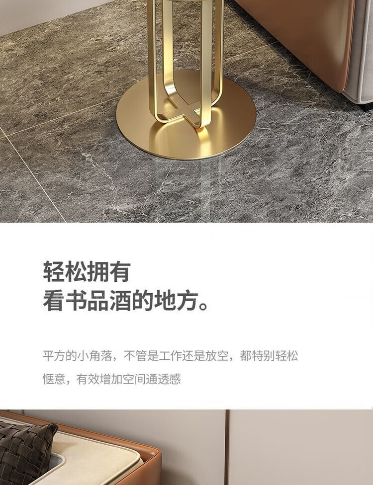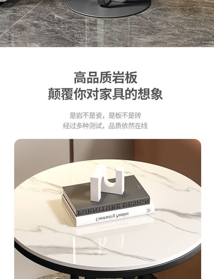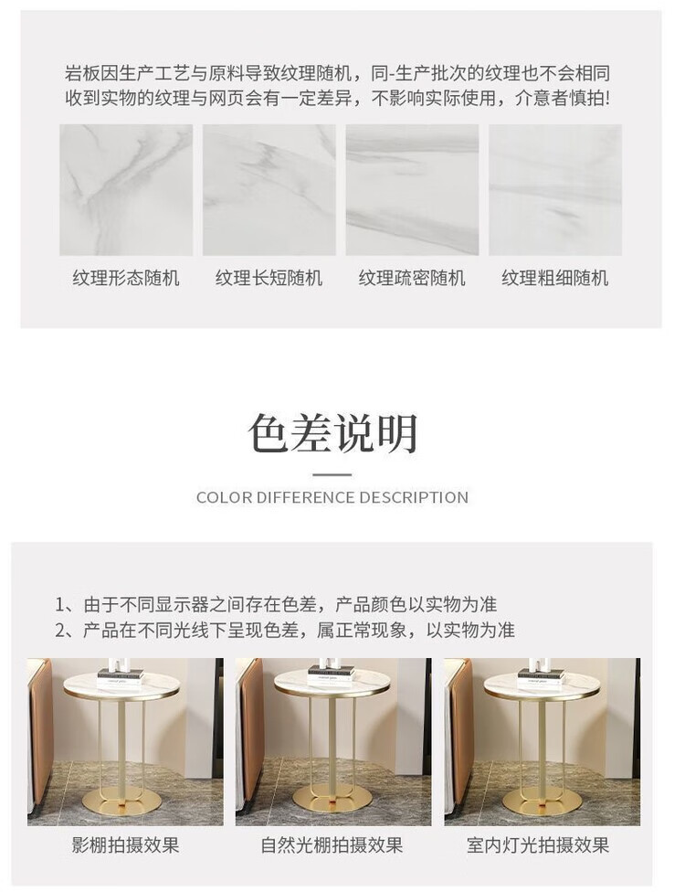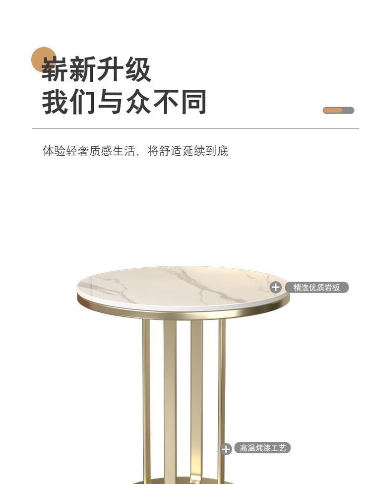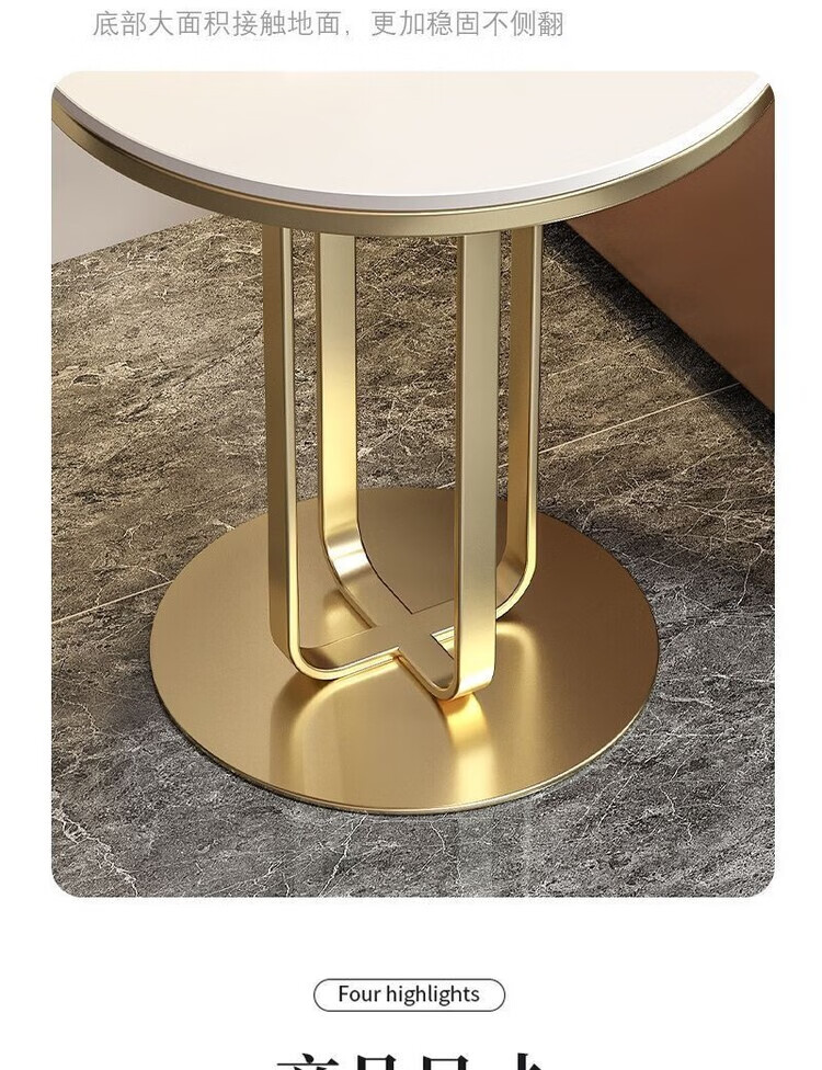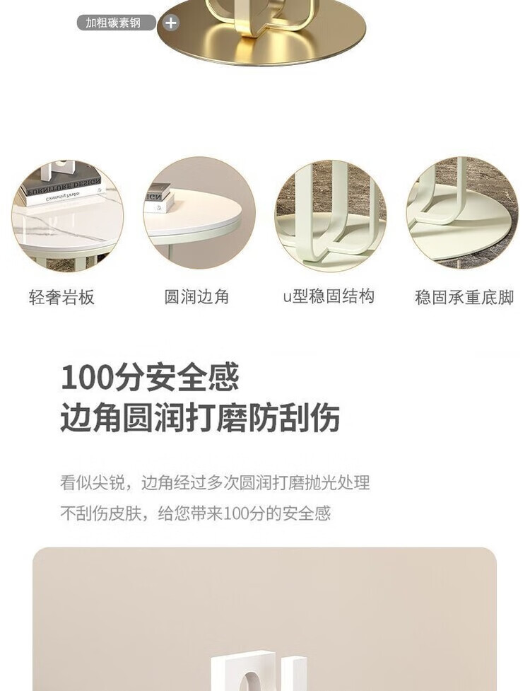 欣慕雅轻奢岩板边几小茶几客厅沙发边桌角几简约酒店客房阳台时尚小圆桌 贵宾金-雪山白亮光岩板【11mm】 【升级加重1斤-偏小桌面】直径40高55