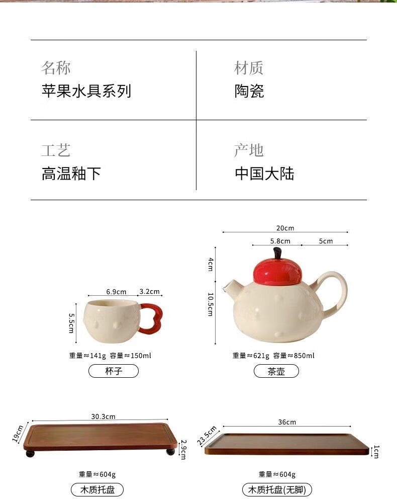 OYKTN结婚水具套装茶具陶瓷茶具套装女生乔迁新居新婚礼物伴手礼 苹果杯一个