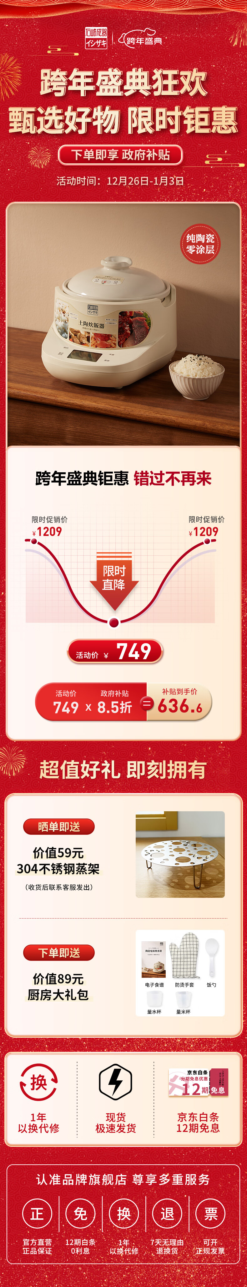 石崎成器日本 陶瓷内胆电饭煲 无涂层电饭煲 家用微压电饭锅柴火饭土陶伊贺烧3L煮饭防溢煲汤砂锅预约 胡椒白 3L