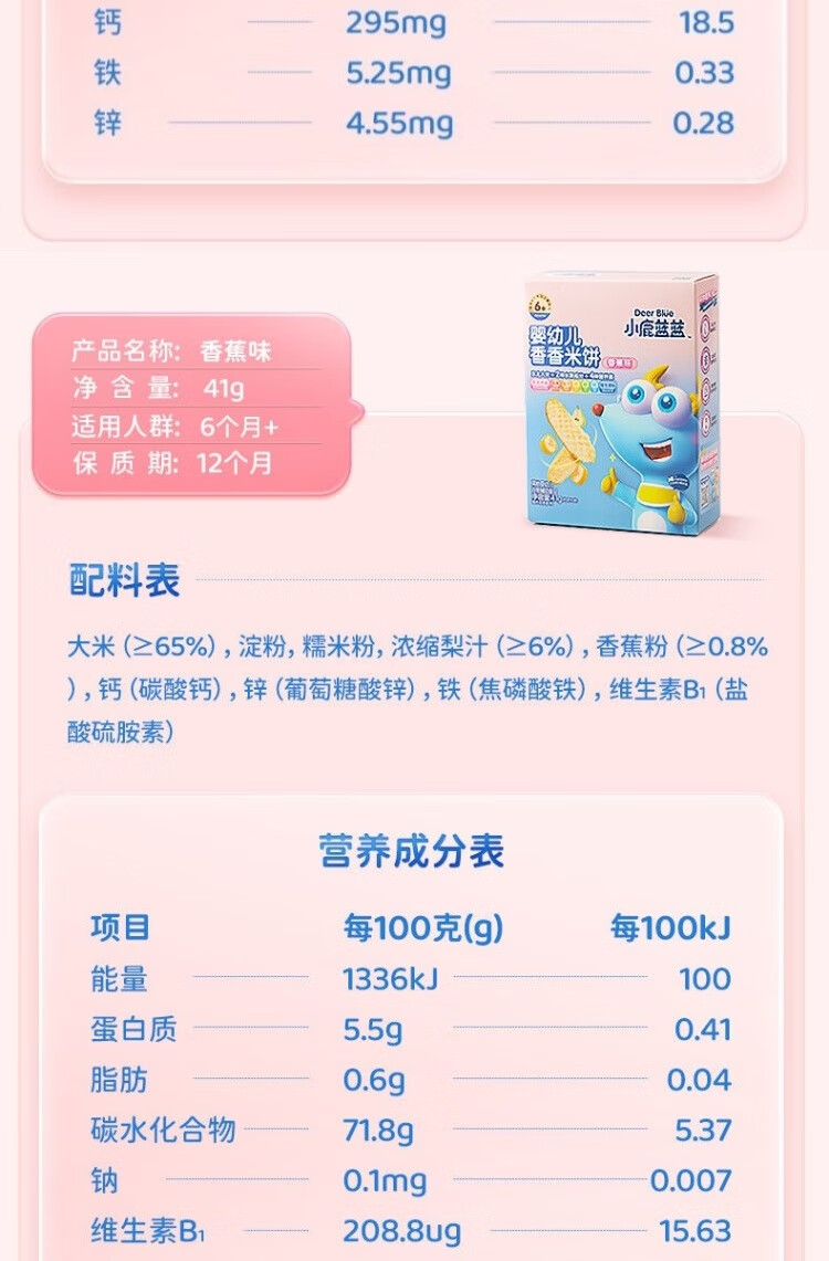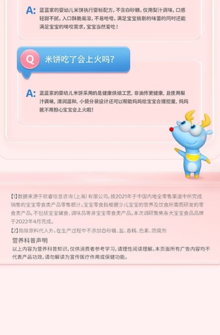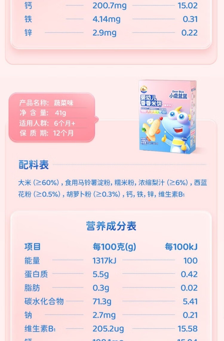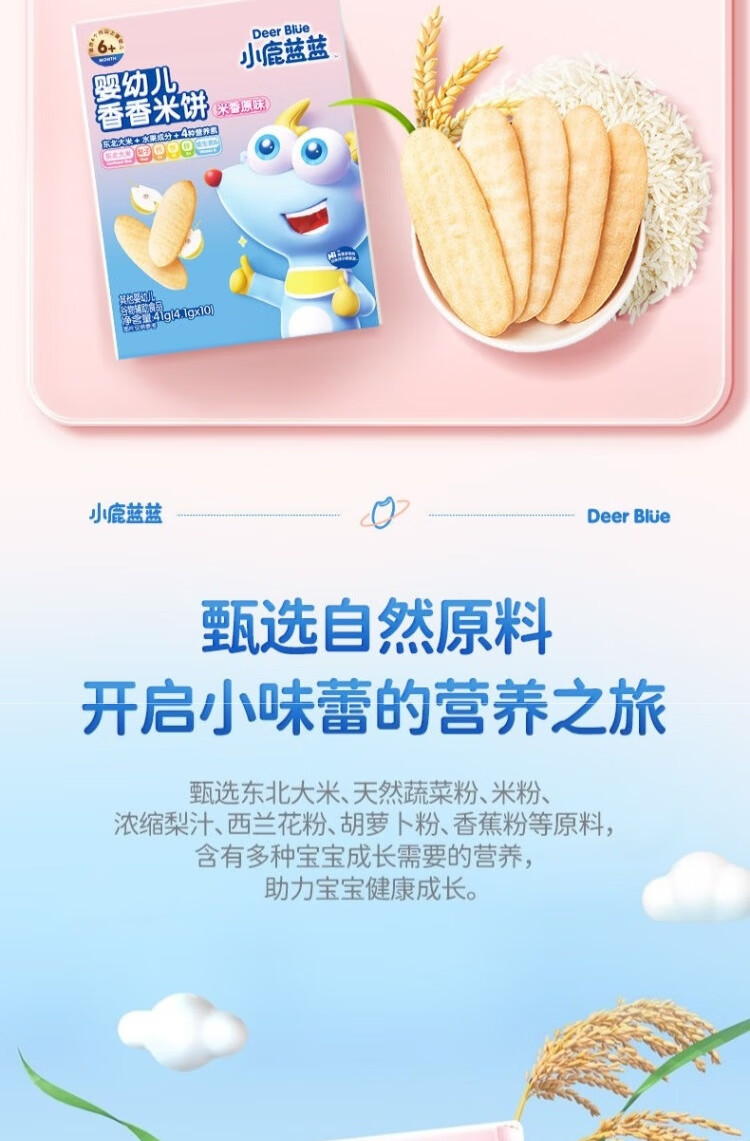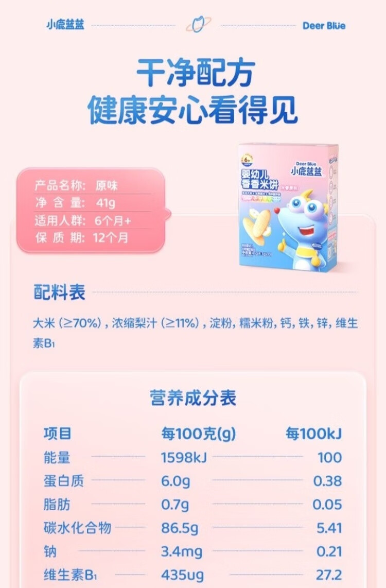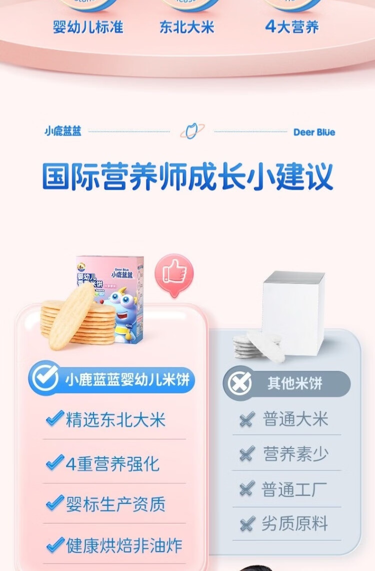 小鹿蓝蓝婴幼儿香香米饼(米香原味)41g 宝宝零食磨牙抓握【临期清仓】
