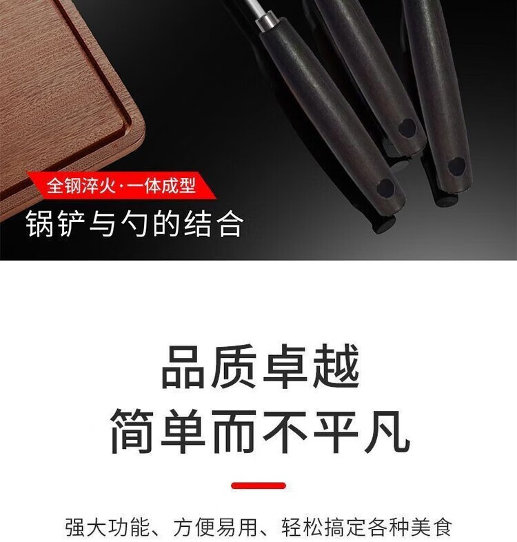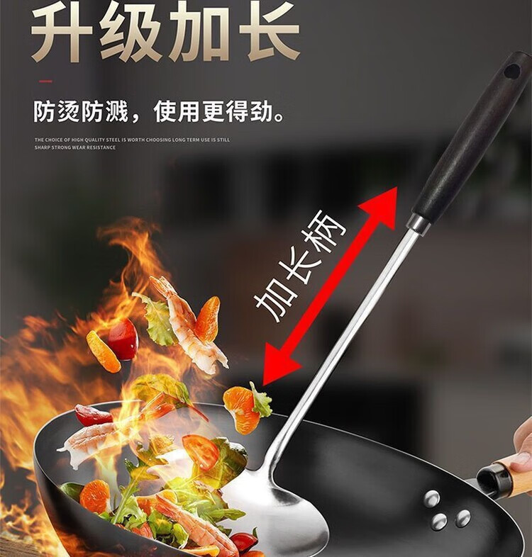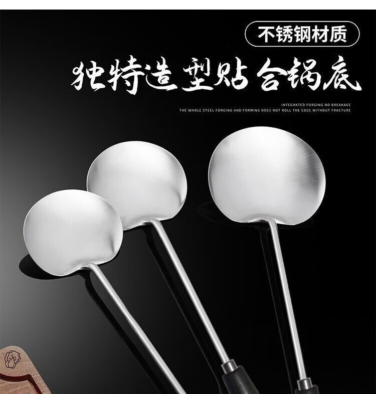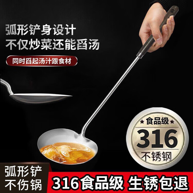 简漾316不锈钢家用锅铲勺二合一专用勺子厨师炒勺木柄长柄勺铲子加厚 二合一铲勺【抗菌款316钢】