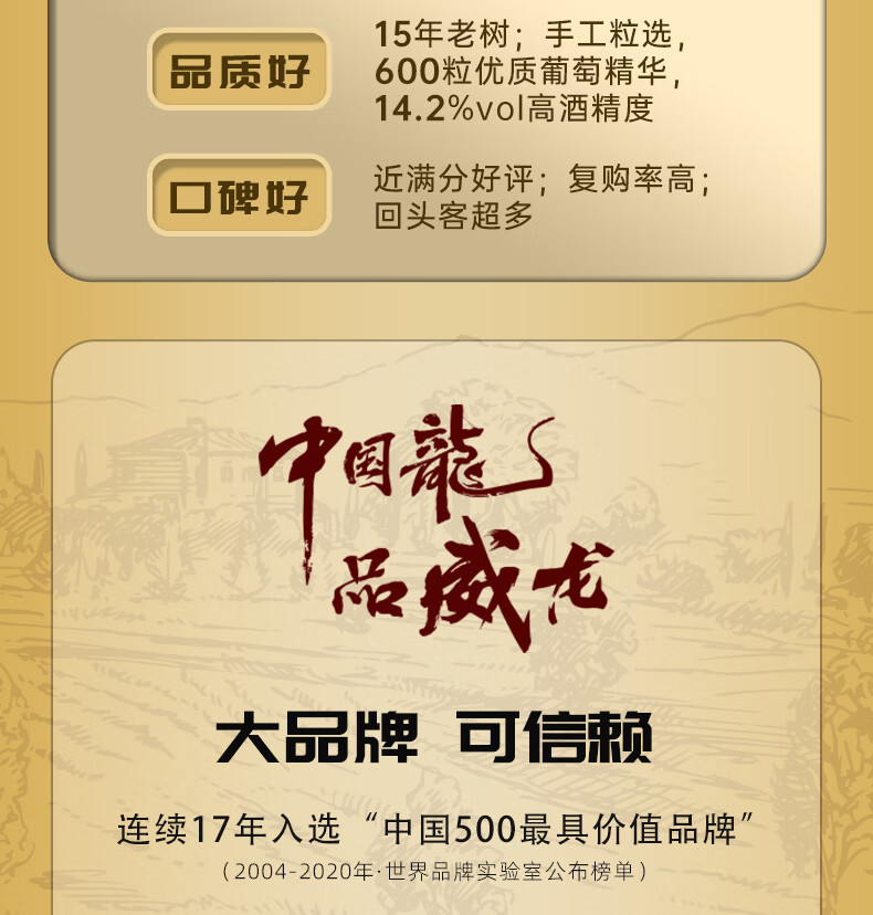 威龙官方店 14.2度手选级沙谷阳光干红葡萄酒赤霞珠红酒商务宴请礼品 沙谷阳光手选级750ml单支