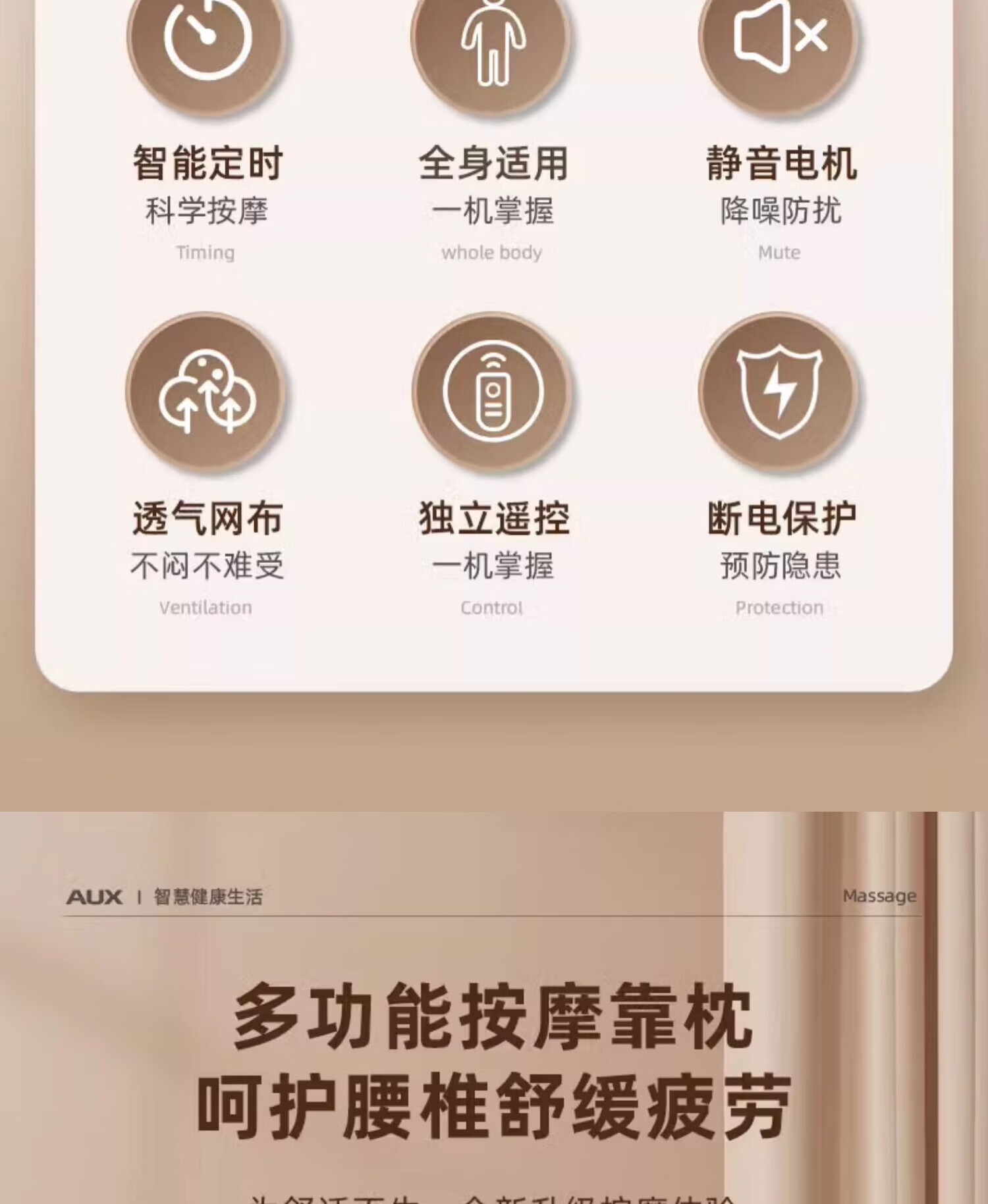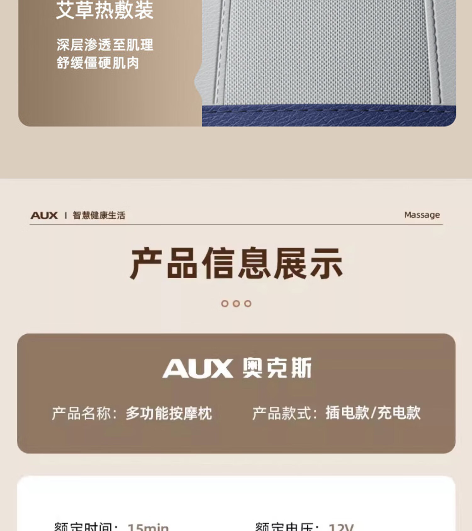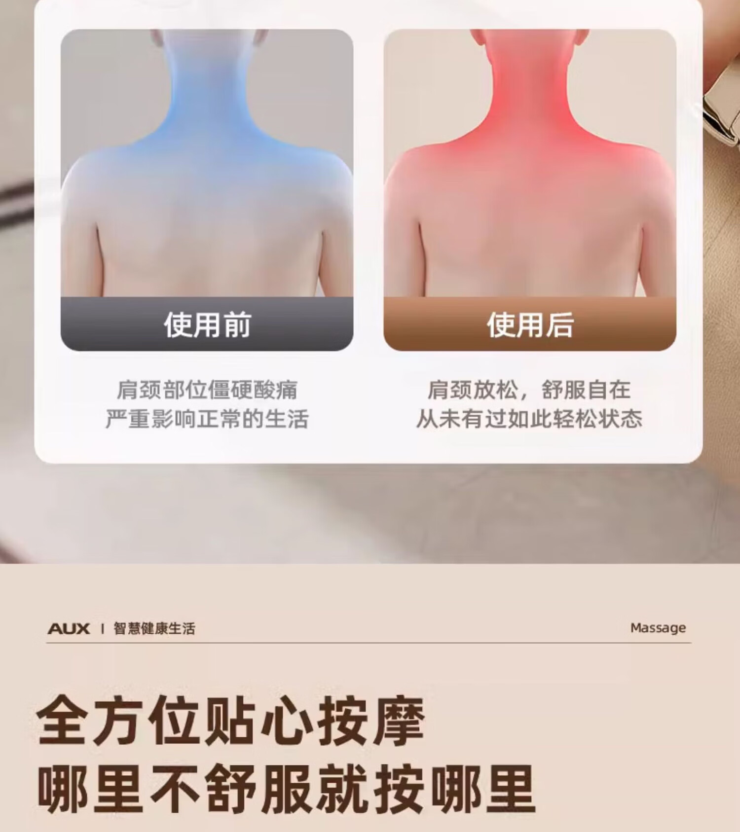 奥克斯颈椎按摩器腰部按摩仪肩颈腰背部脖子多功能全身按摩腰肌劳损腰间盘突出车载按摩靠垫父母亲节礼物 【标准款】3大模式+3档力度+2档震动