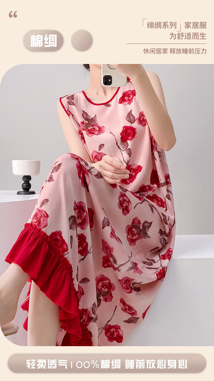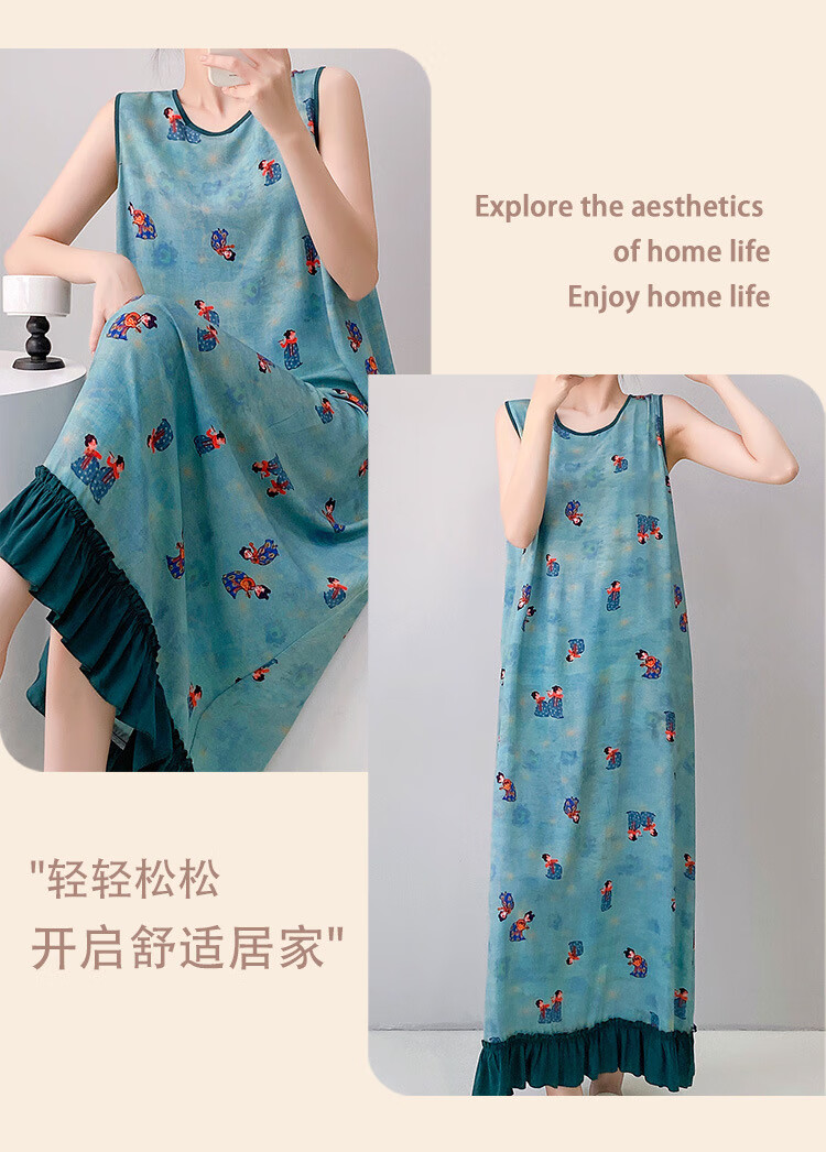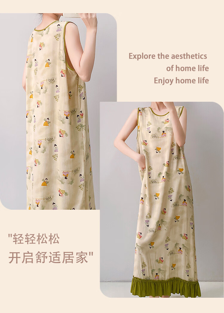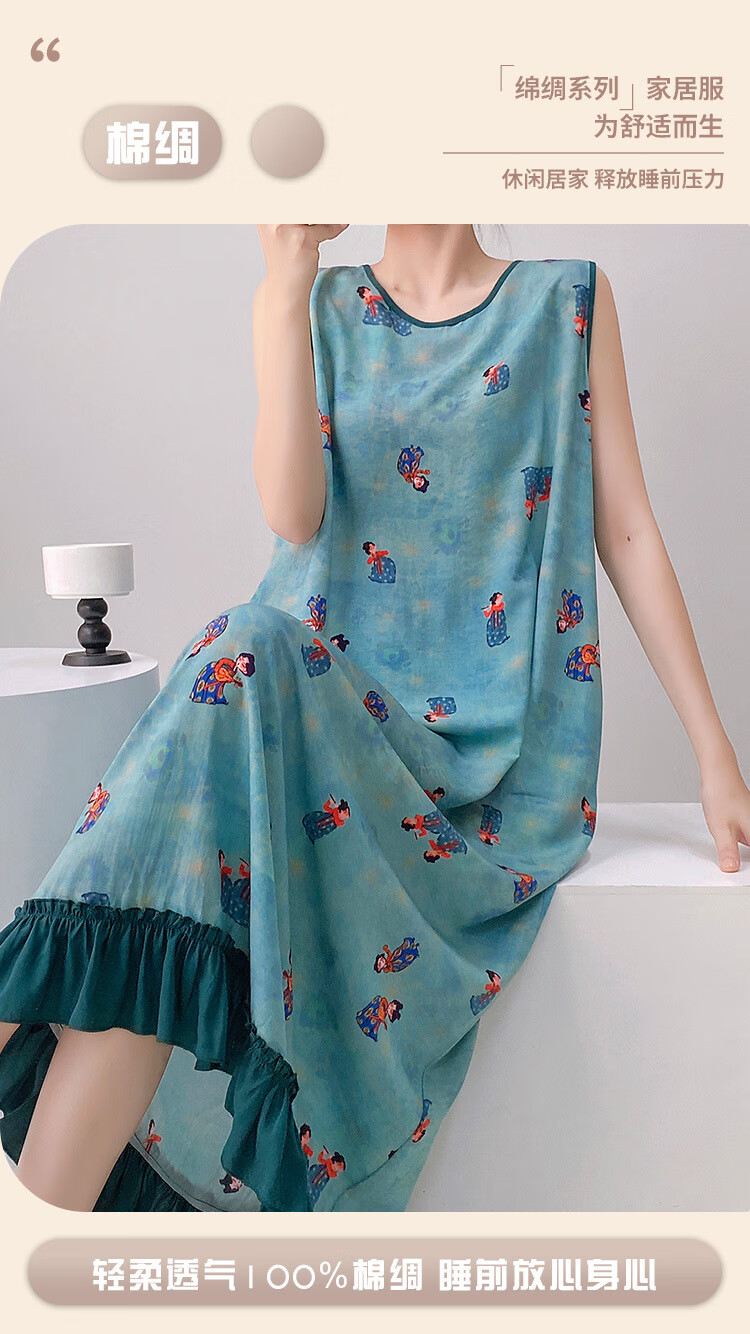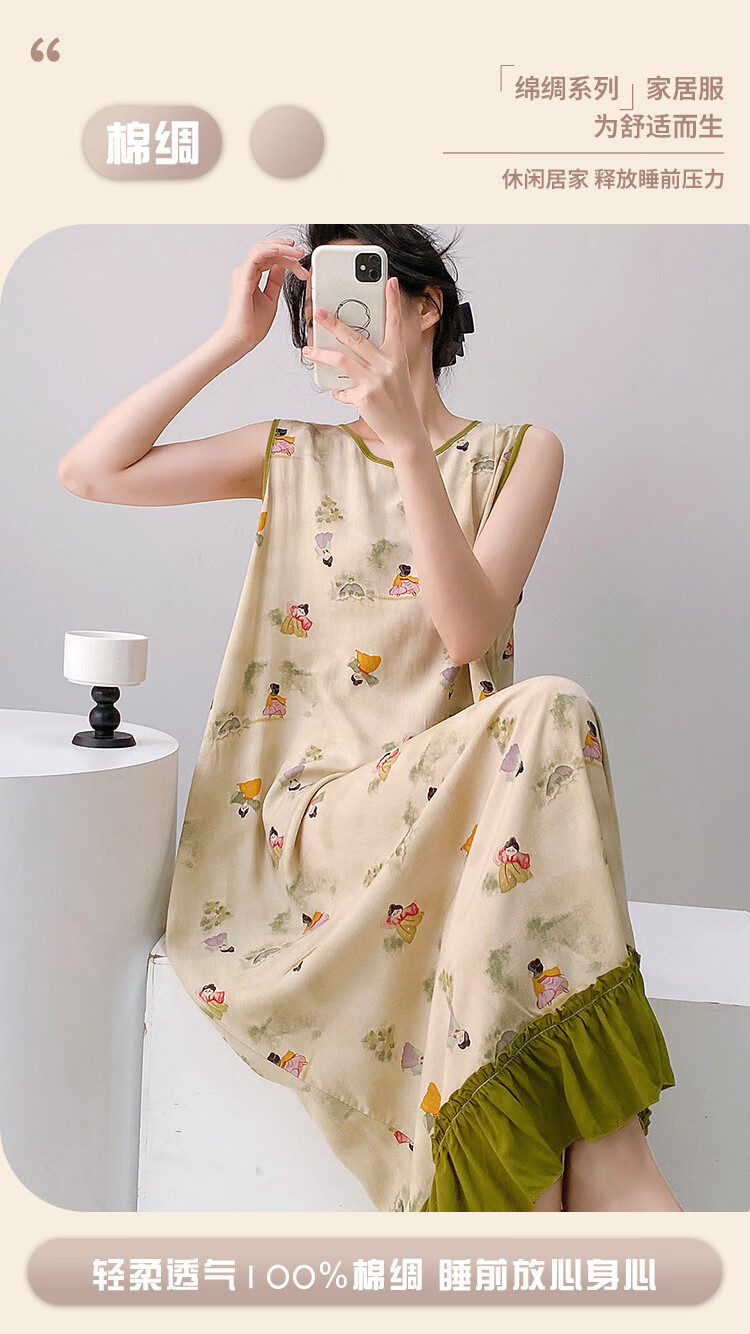 【优选好物】2025年新款新中式国风背心睡裙女夏薄款棉绸家居服可 背心裙-琵琶行 裙长120(适合160身高以下 均码