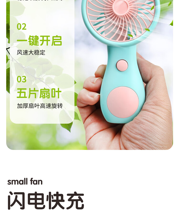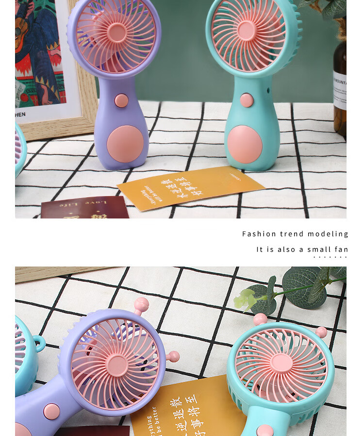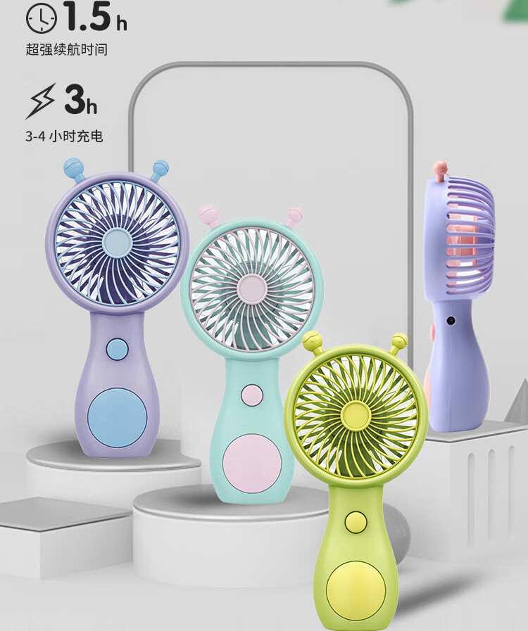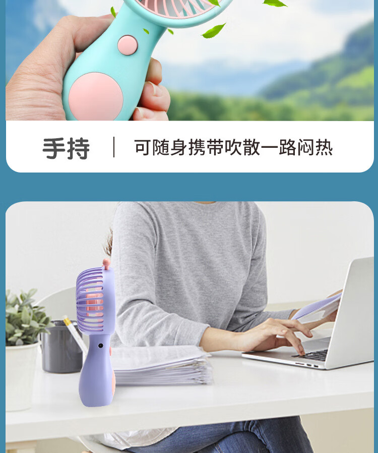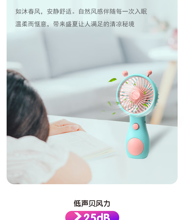小蜜蜂可爱手持小风扇学生上课静音桌面风扇儿童便携式充电 浅绿色-6602蜜蜂款