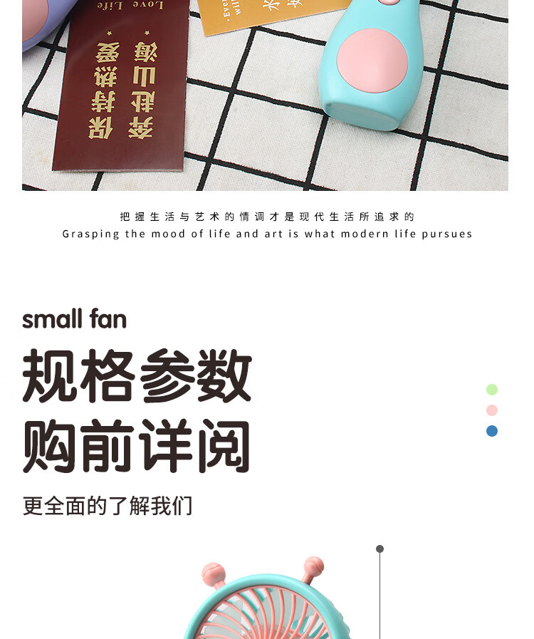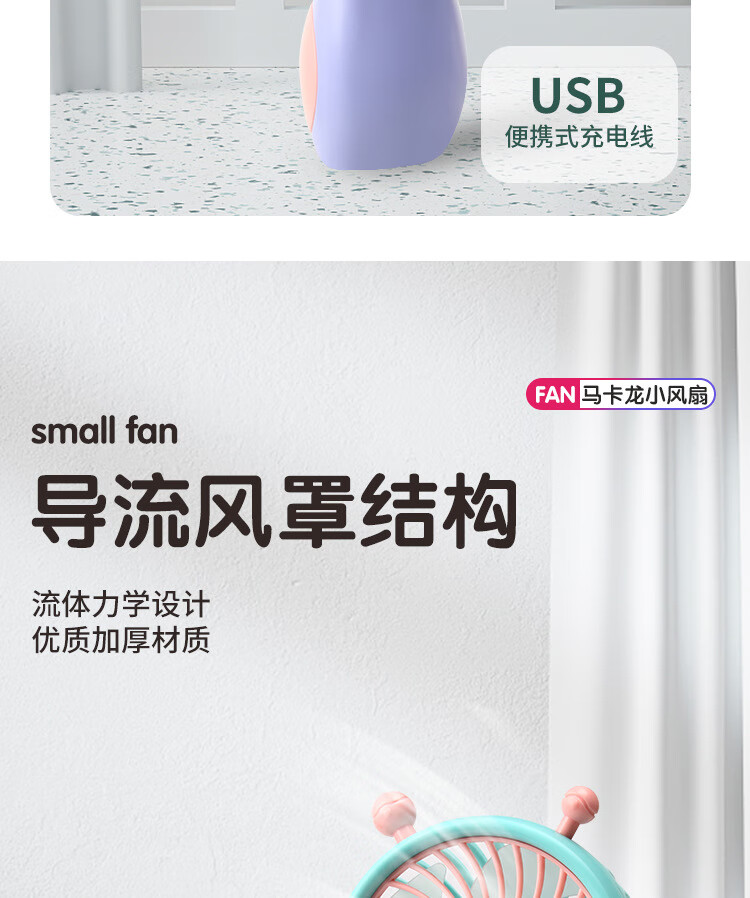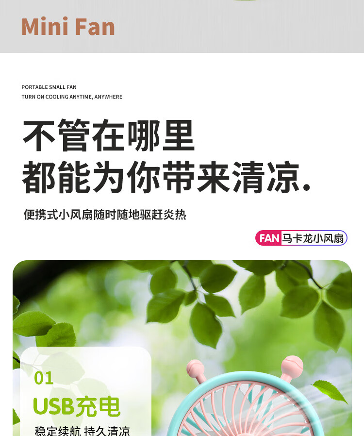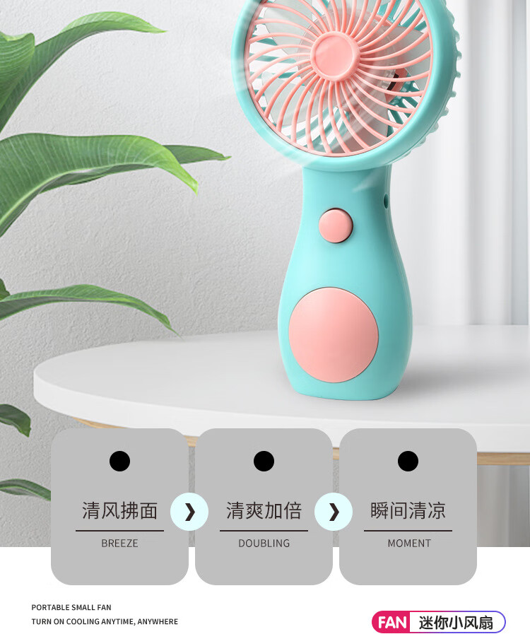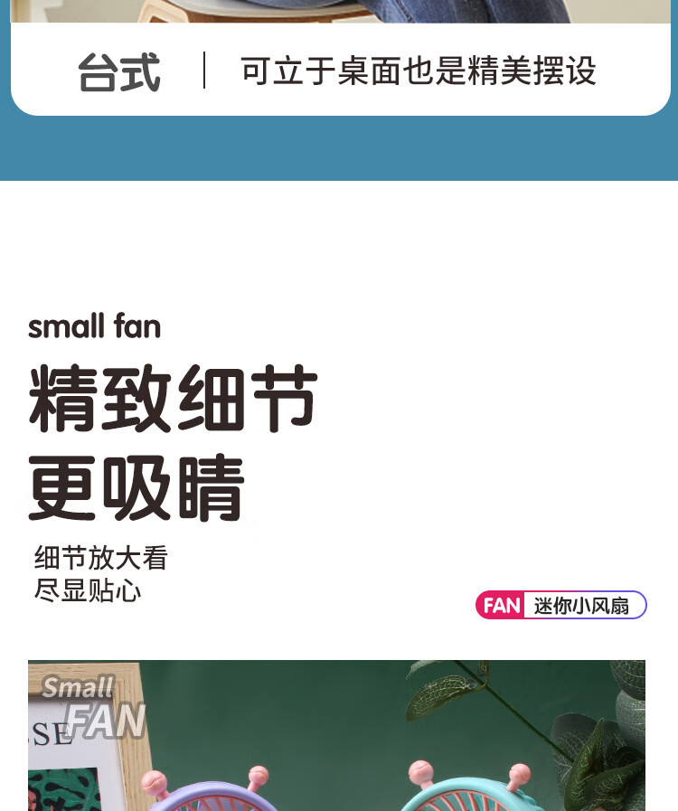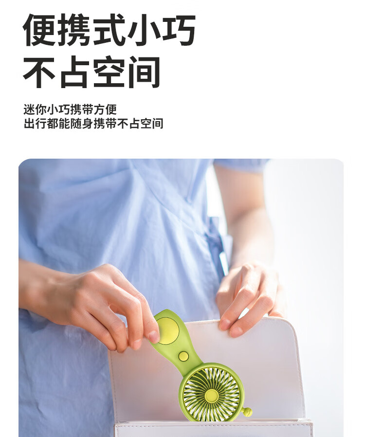 小蜜蜂可爱手持小风扇学生上课静音桌面风扇儿童便携式充电 浅绿色-6602蜜蜂款