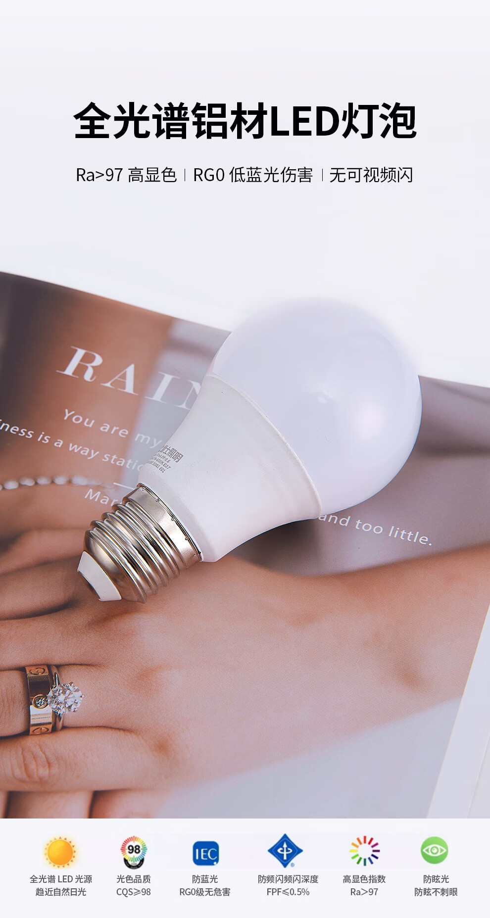 雷士(NVC)led灯泡E27螺口节能灯泡超亮家用客厅吊灯卧室照明光源灯饰 【进口普瑞全光谱】Ra97高显色 10W正白光 E27