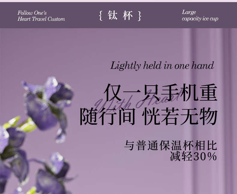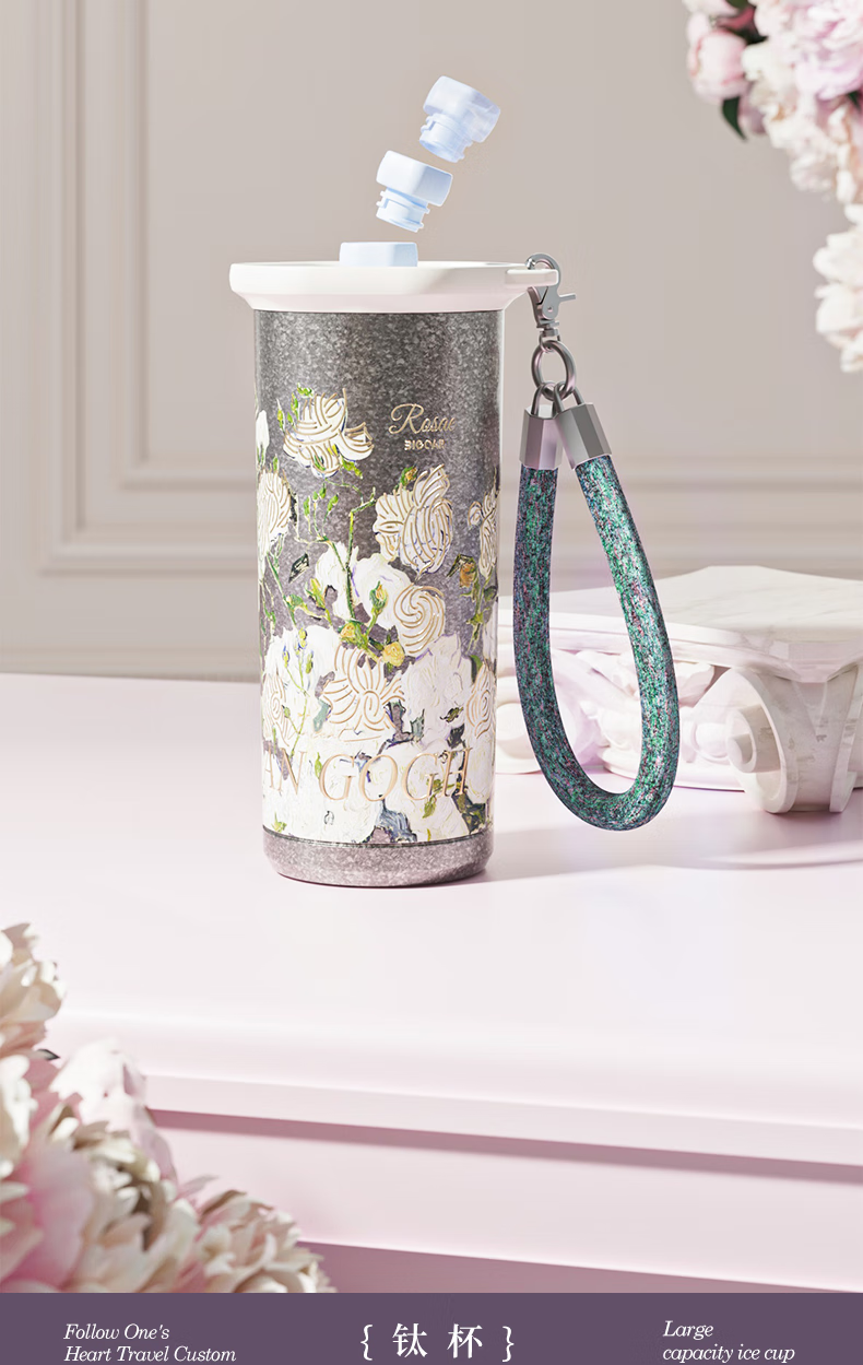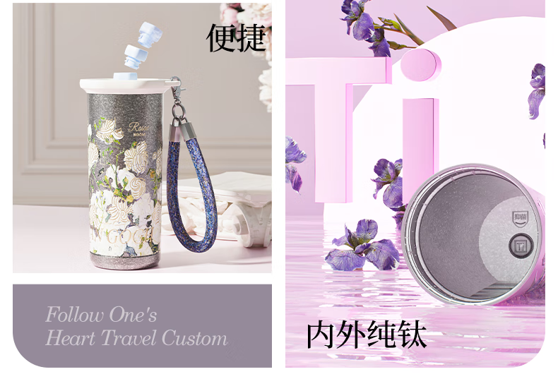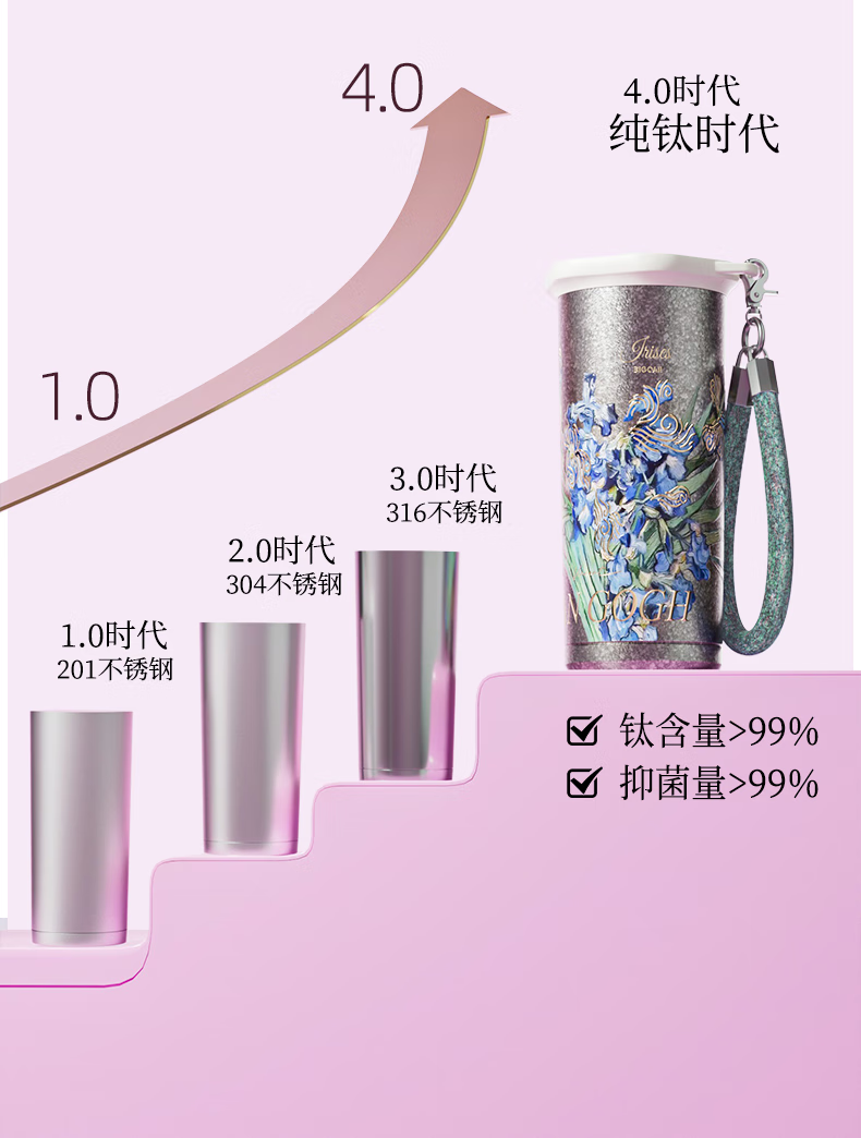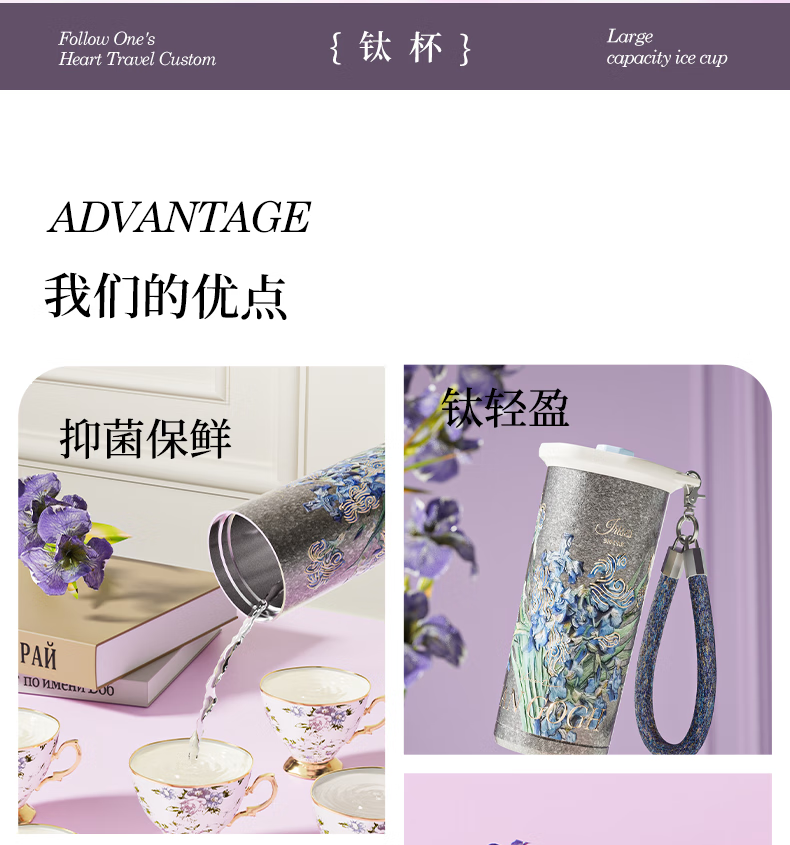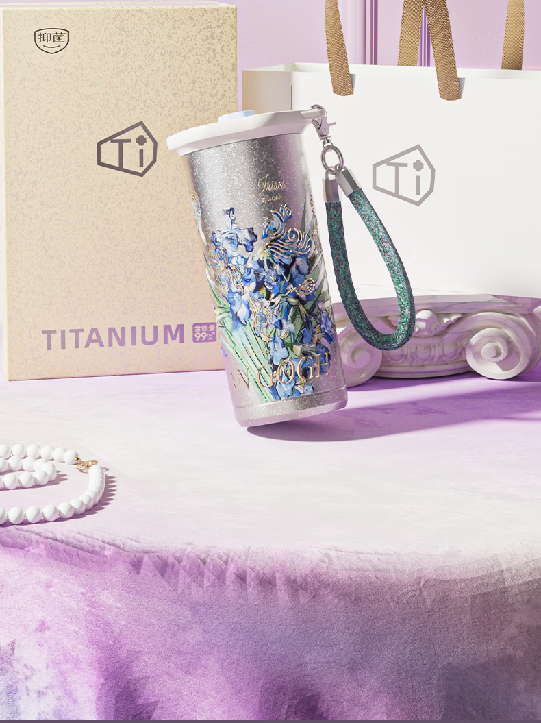 大卡钛杯纯钛保温杯男女高颜值咖啡杯学生吸管杯子送礼生日礼物礼盒装 鸢尾花【纯钛+礼盒】500ml