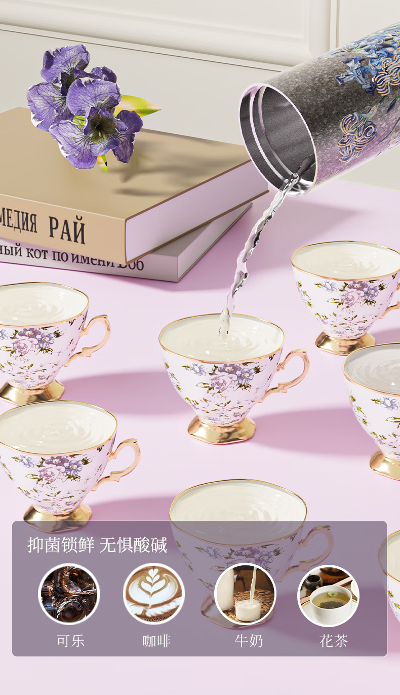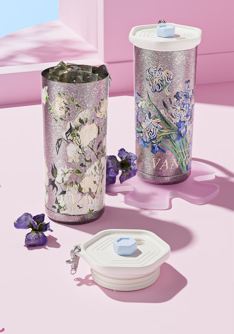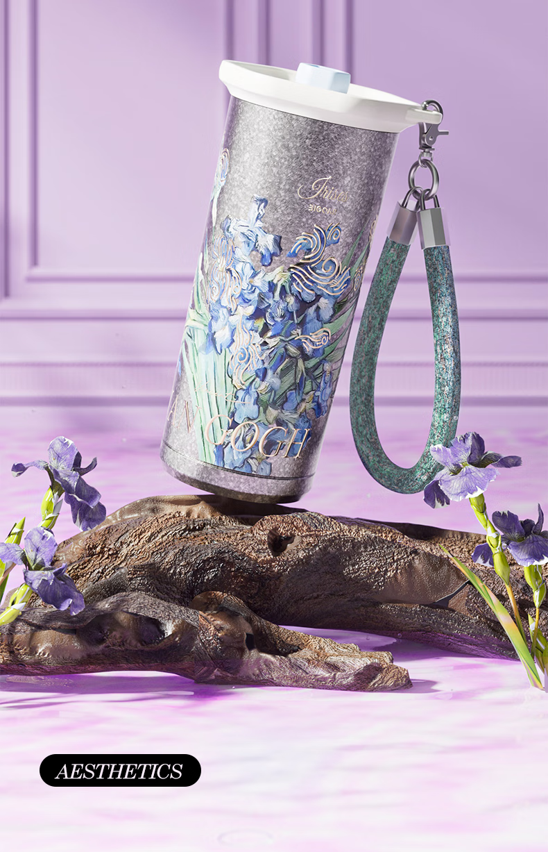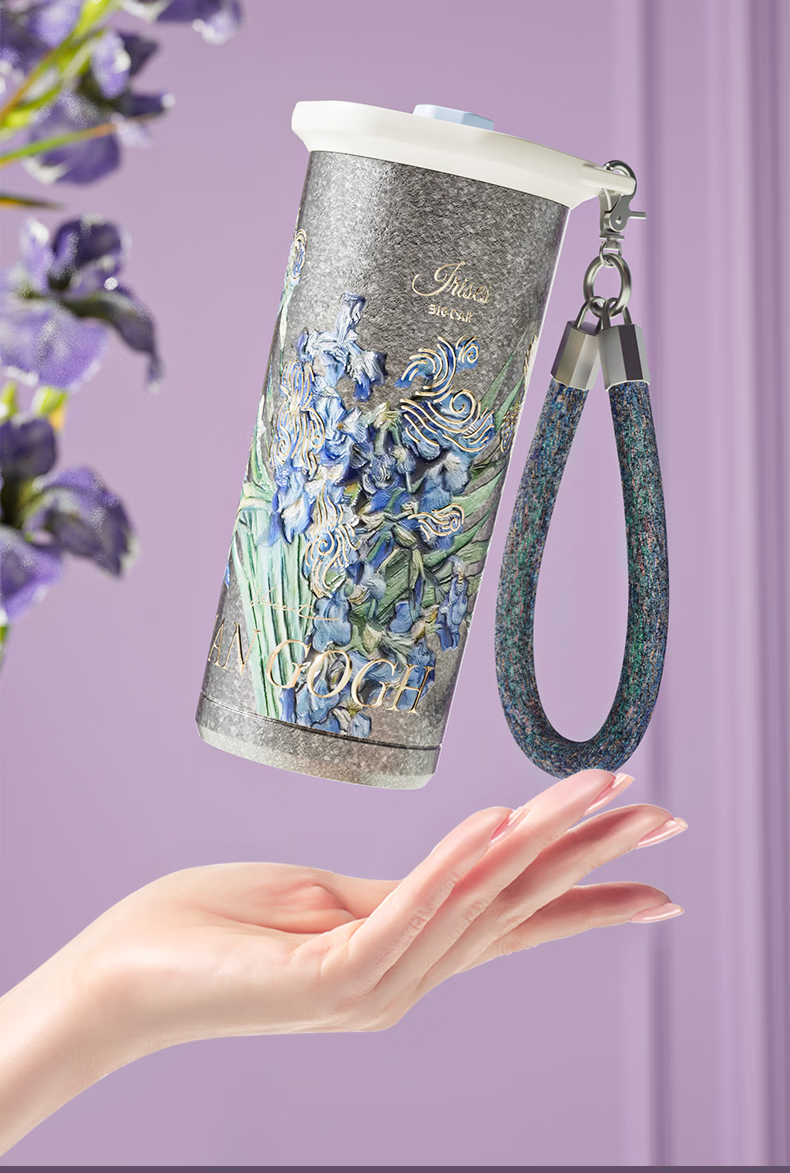 大卡钛杯纯钛保温杯男女高颜值咖啡杯学生吸管杯子送礼生日礼物礼盒装 鸢尾花【纯钛+礼盒】500ml