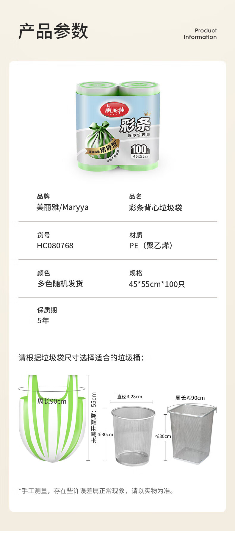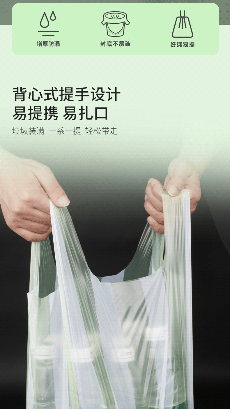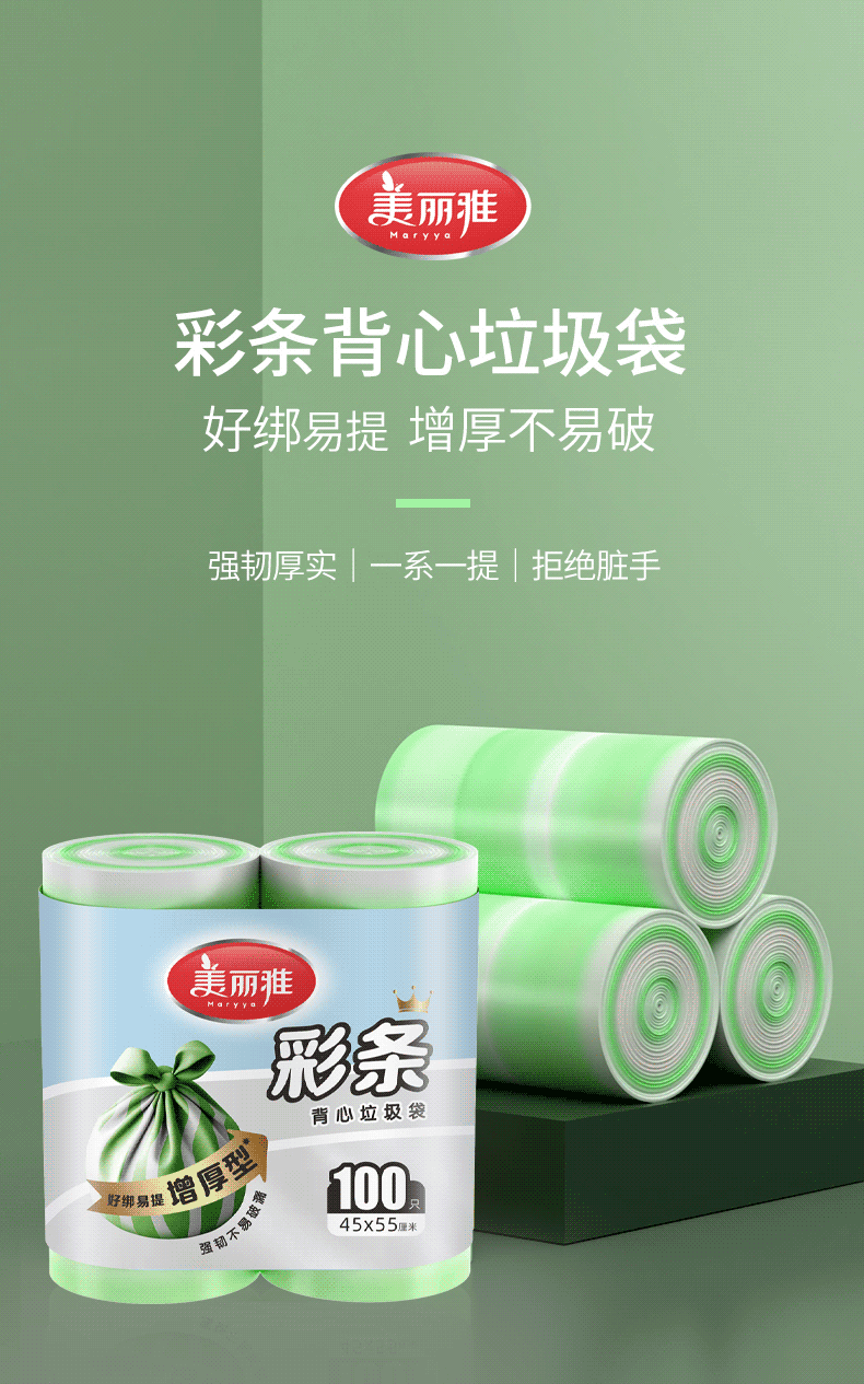 美丽雅(MARYYA)背心垃圾袋1丝 家用加厚垃圾袋 塑料手提垃圾袋 【45*55cm】300只装 45*55cm加厚