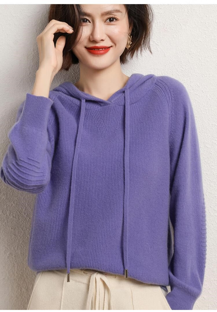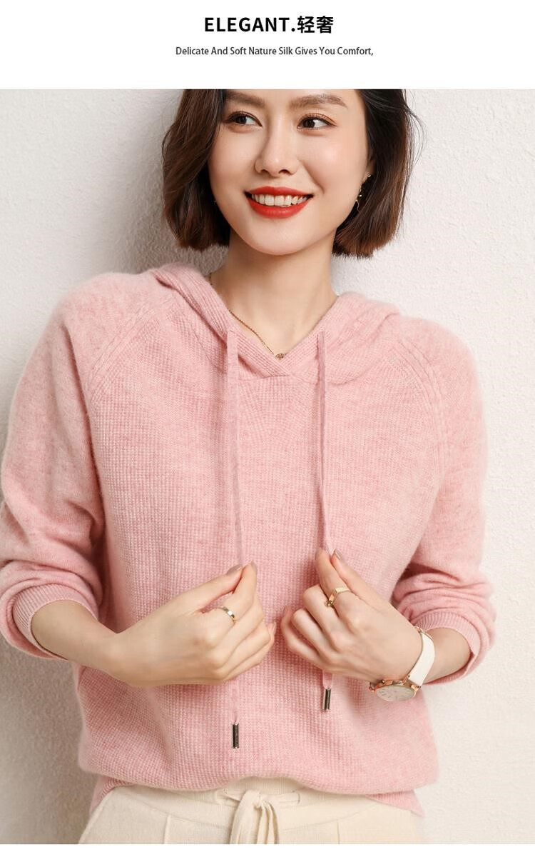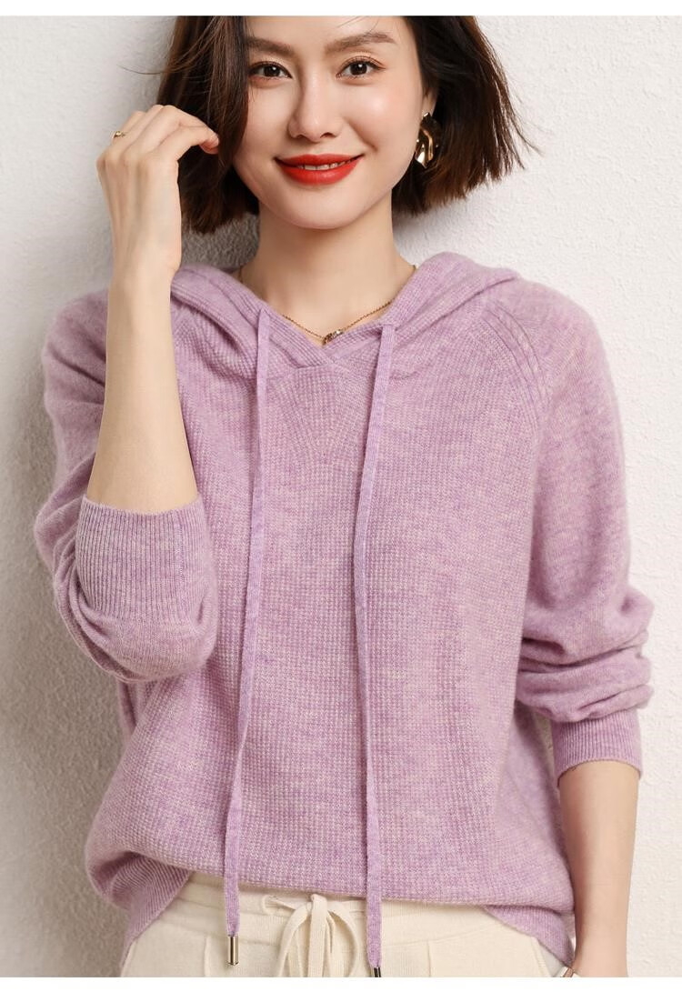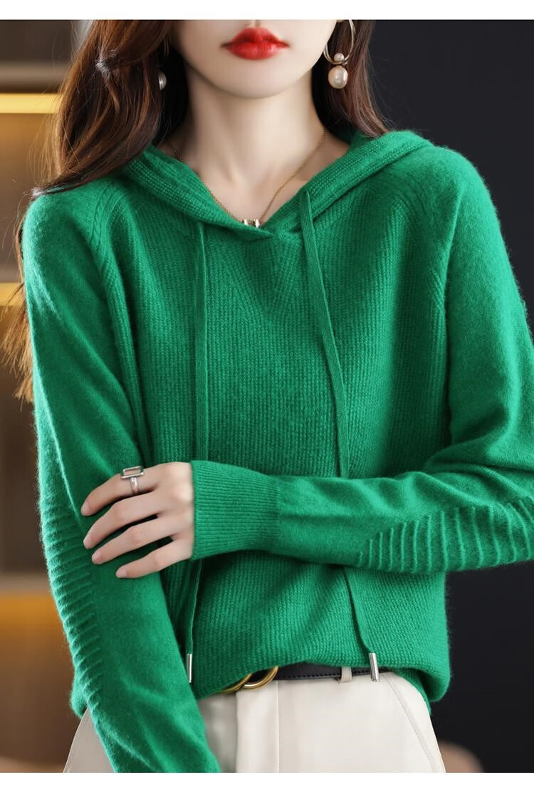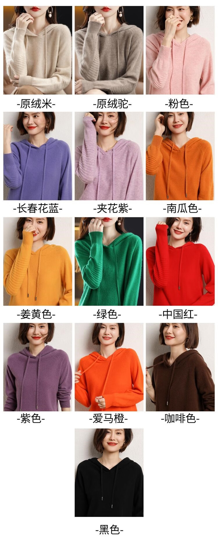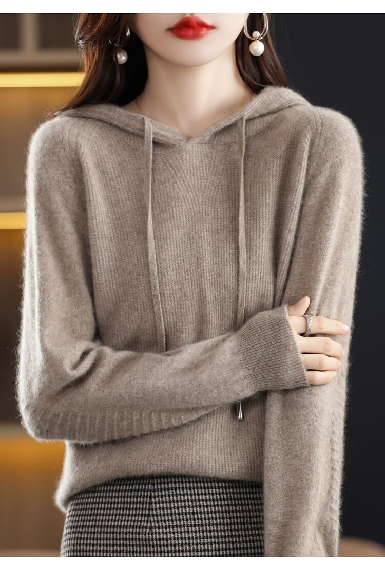 EMZ鄂尔多斯2025年春秋冬新款秋冬季带帽羊毛衫女士毛衣宽松连帽针织 中国红 中国红 S