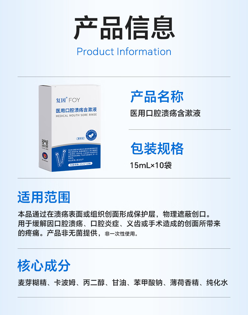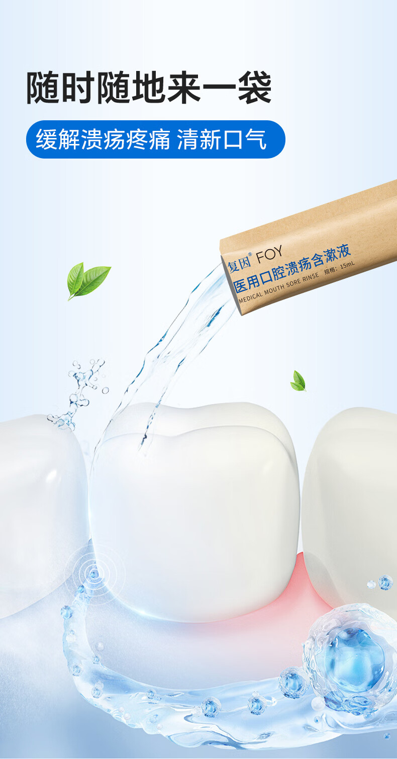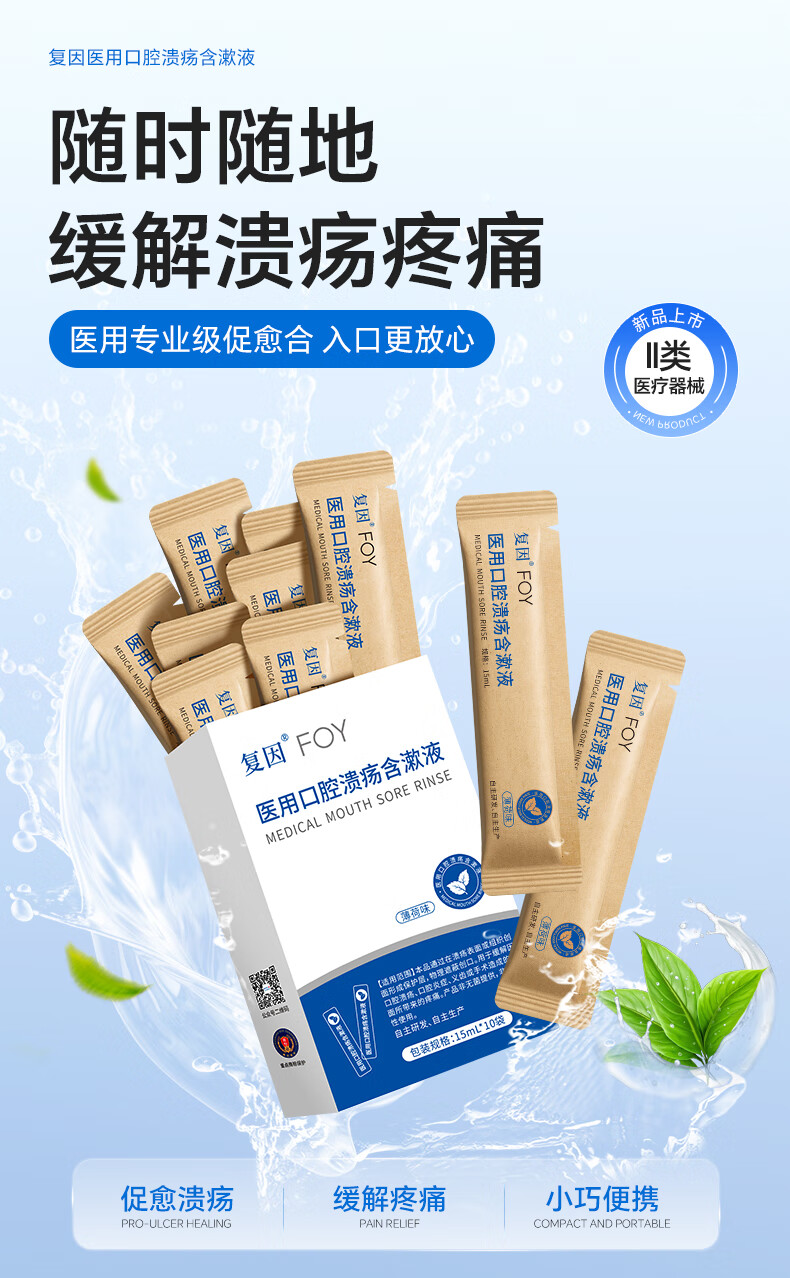 复因医用口腔溃疡含漱液缓解口腔炎症疼痛二类医疗器械 15ml*10袋/盒