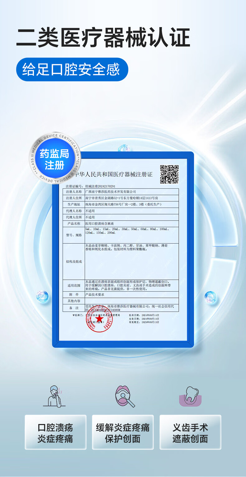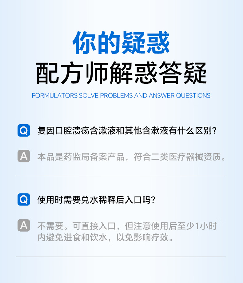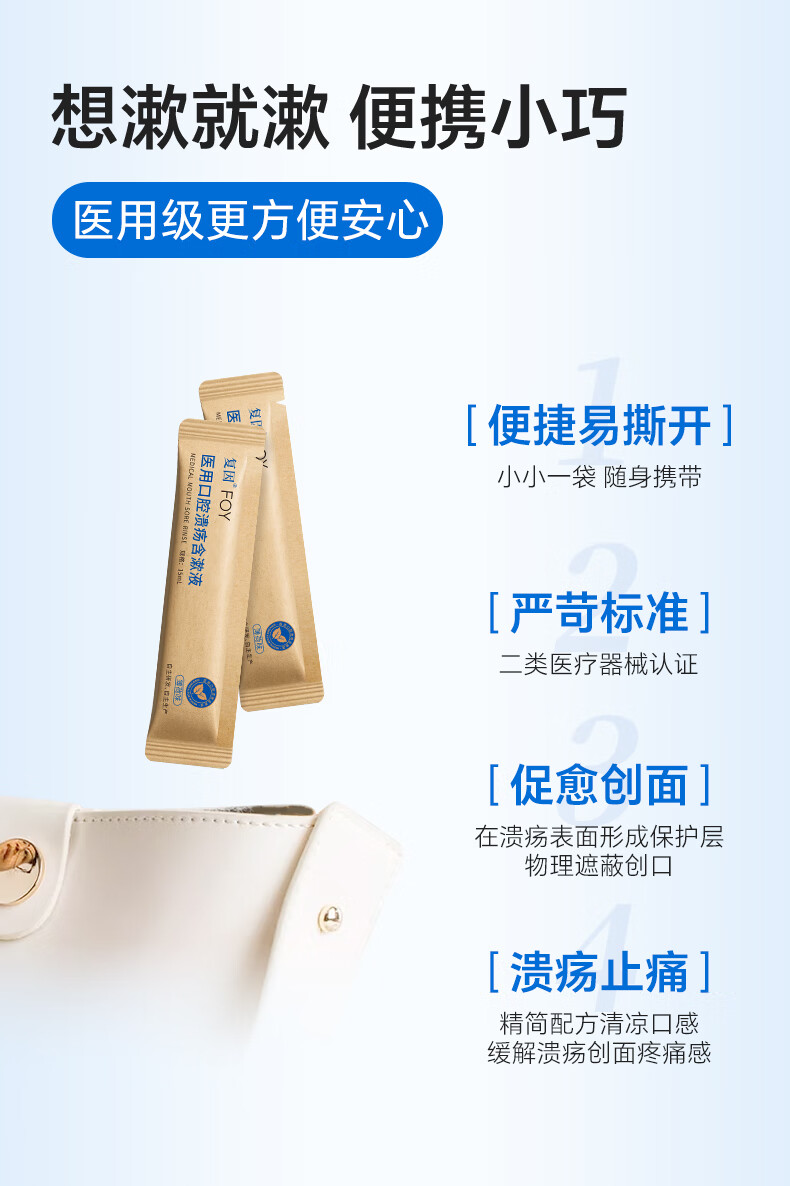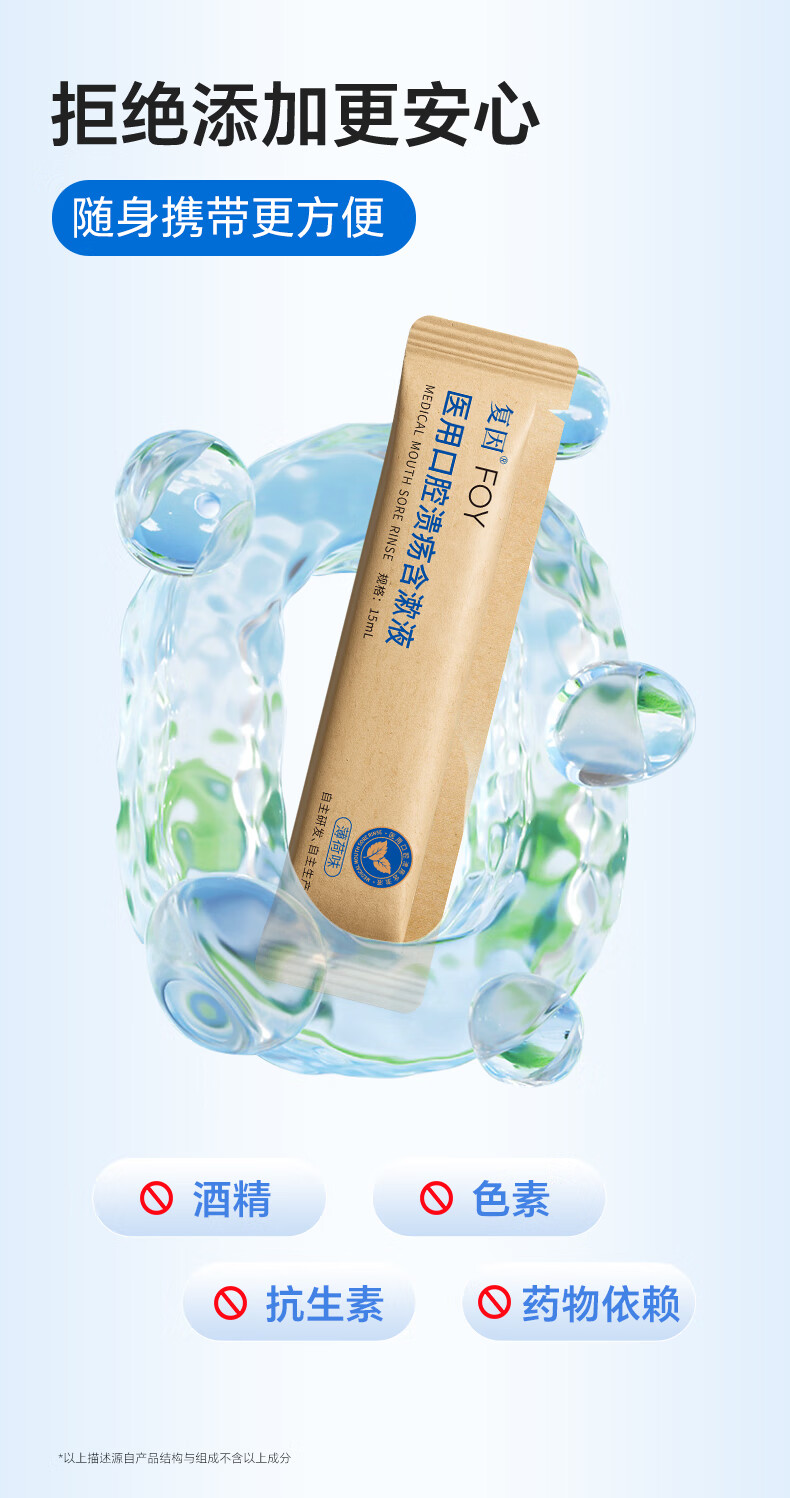 复因医用口腔溃疡含漱液缓解口腔炎症疼痛二类医疗器械 15ml*10袋/盒