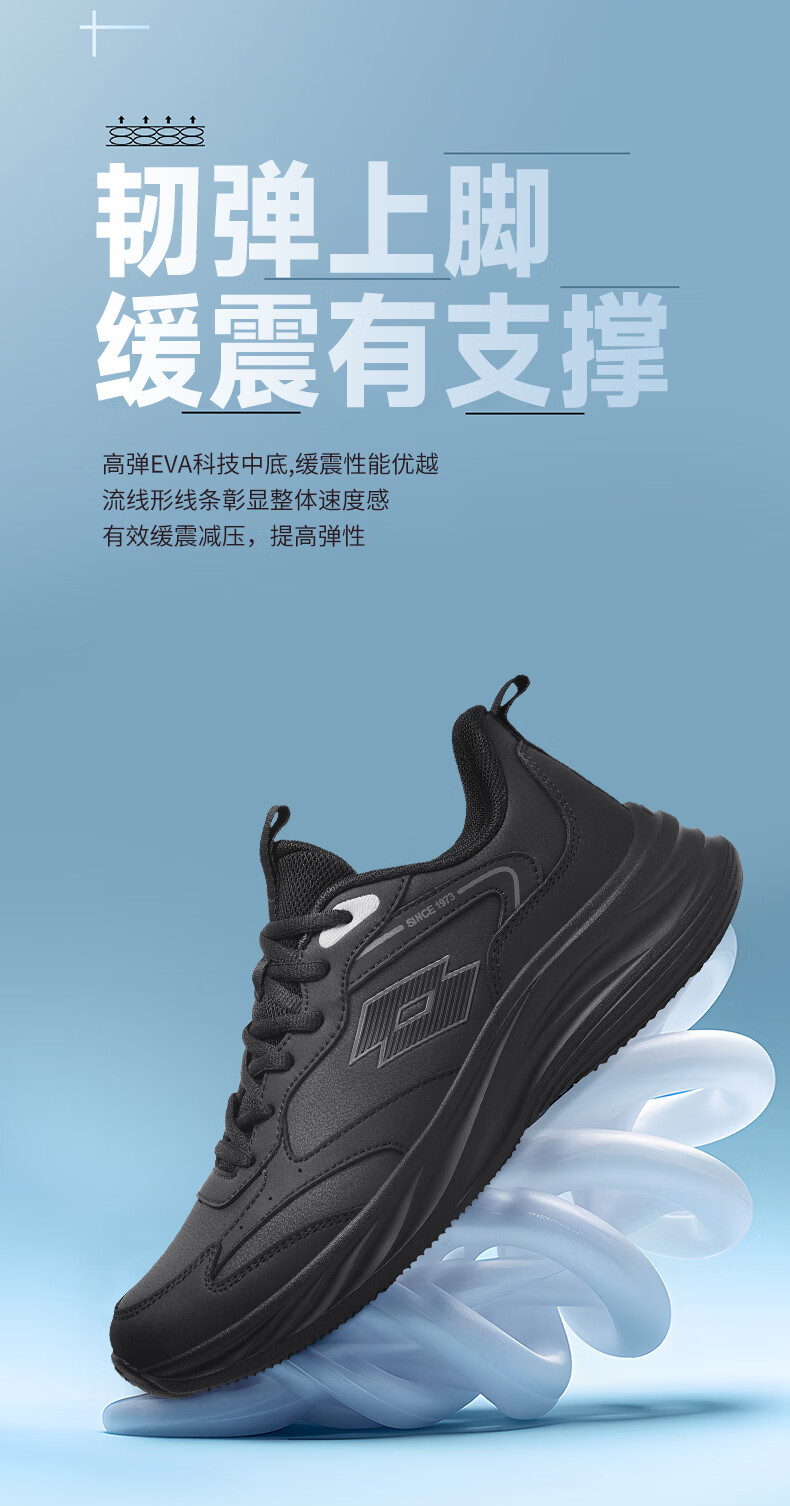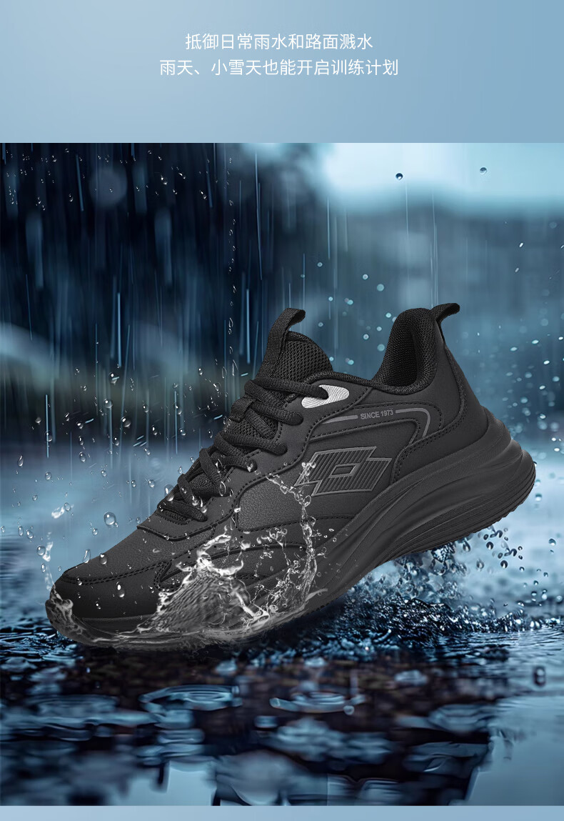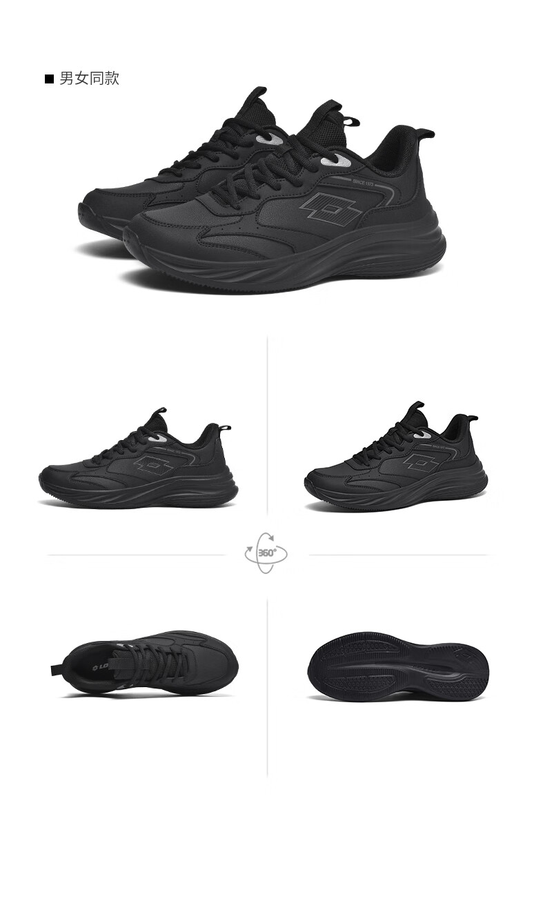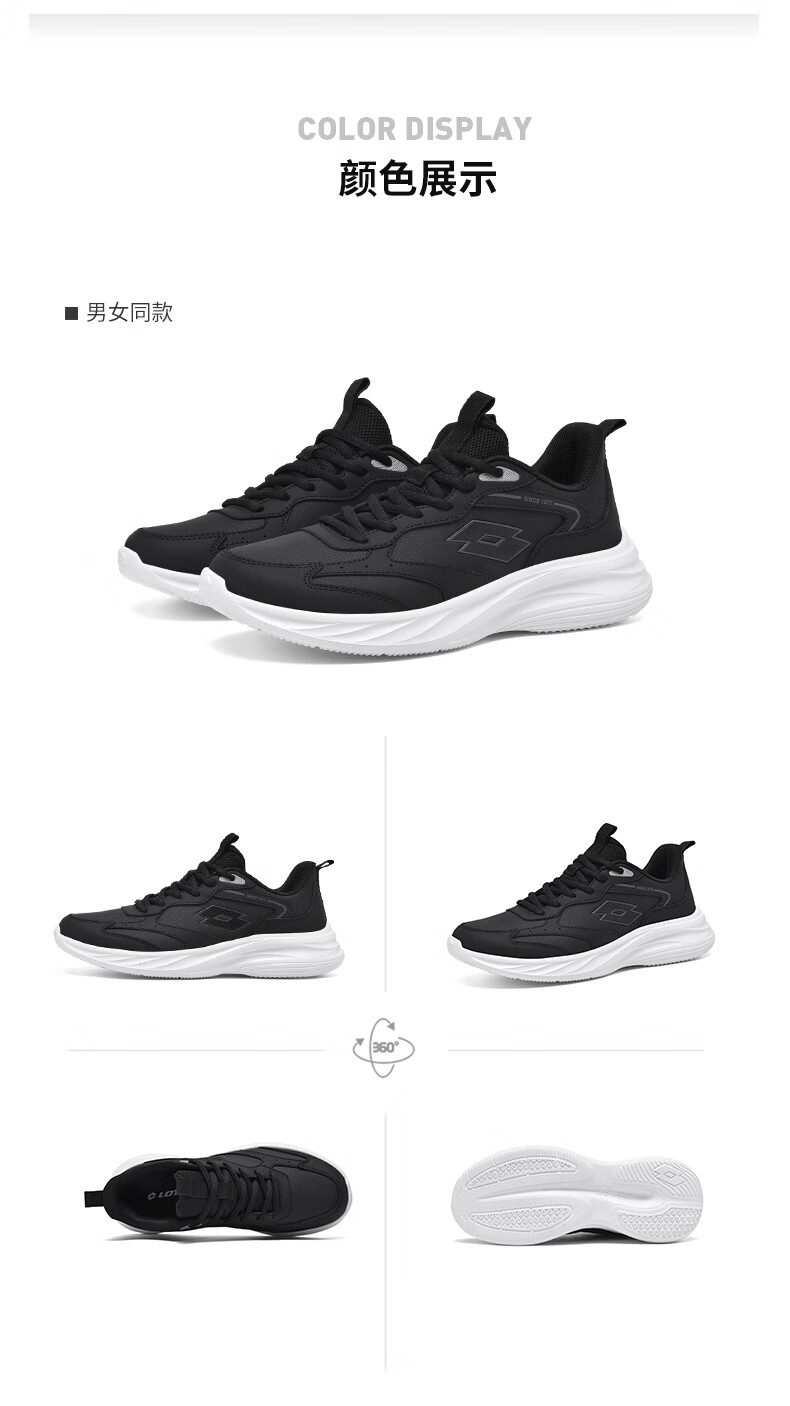 乐途(LOTTO)男鞋秋冬季加绒保暖黑色运动鞋跑步鞋减震休闲鞋慢跑鞋厚底通勤鞋 黑色·男女同款【防泼水皮面】 42