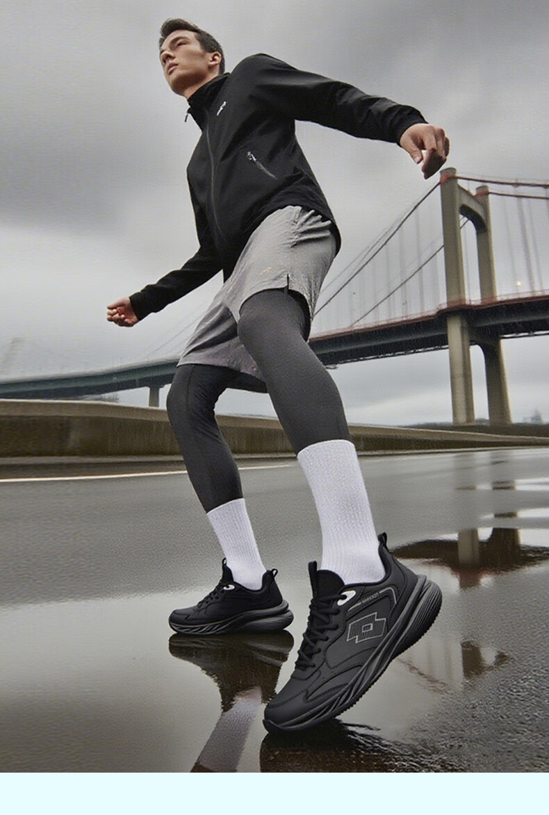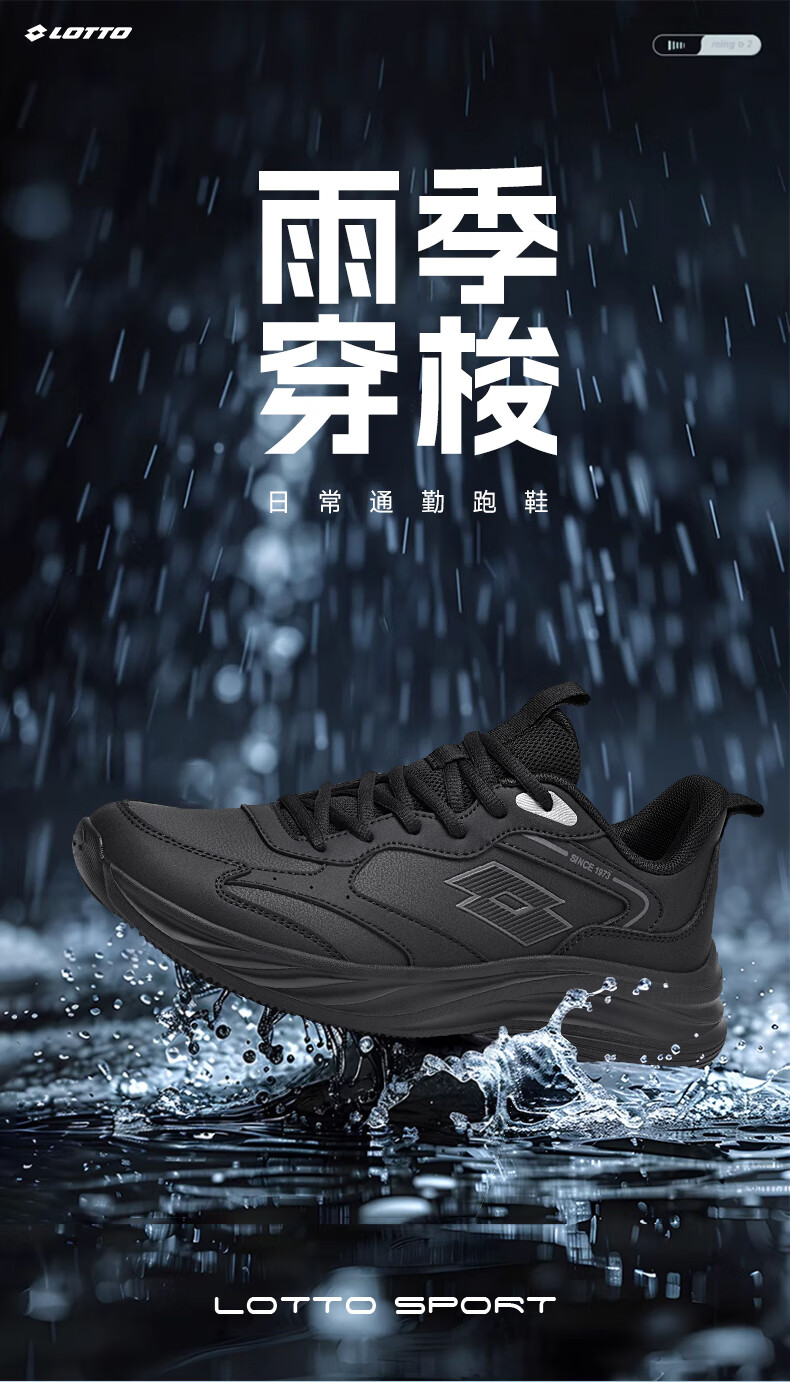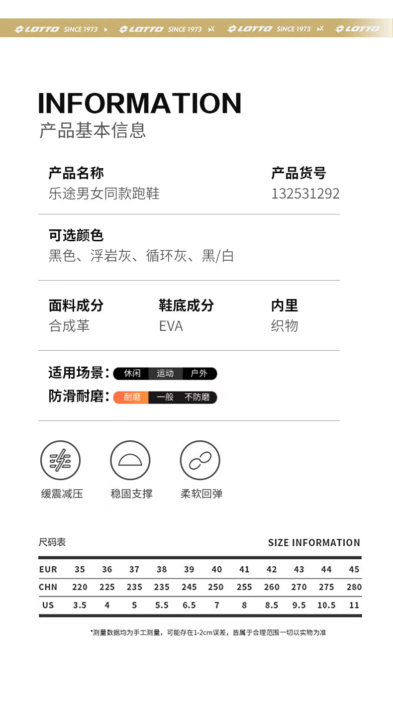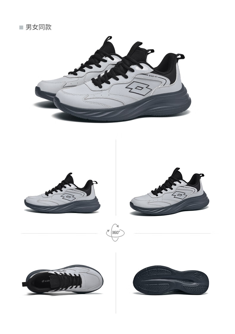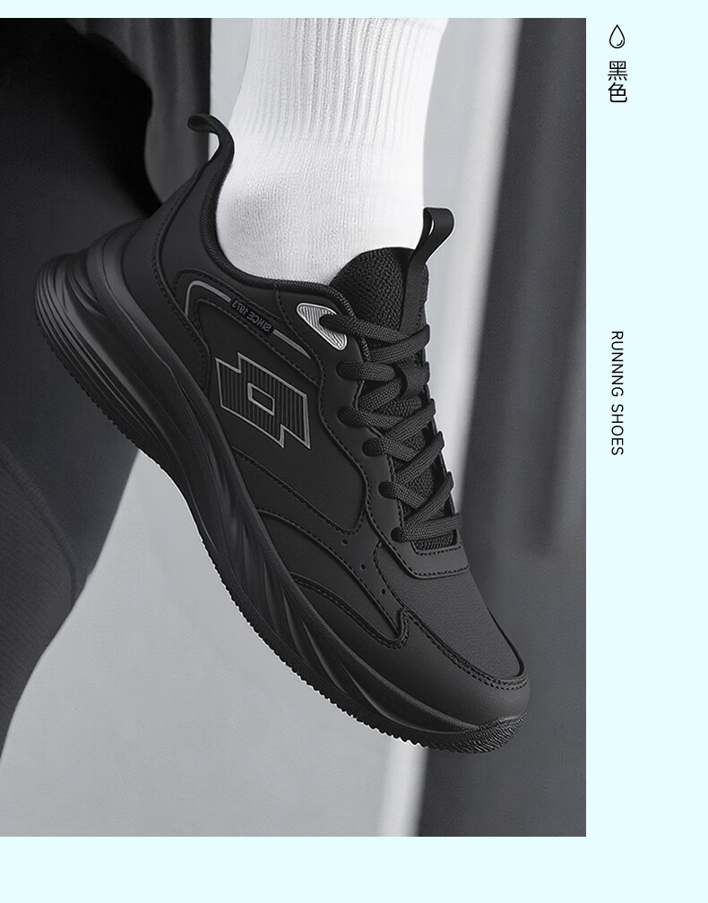 乐途(LOTTO)男鞋秋冬季加绒保暖黑色运动鞋跑步鞋减震休闲鞋慢跑鞋厚底通勤鞋 黑色·男女同款【防泼水皮面】 42