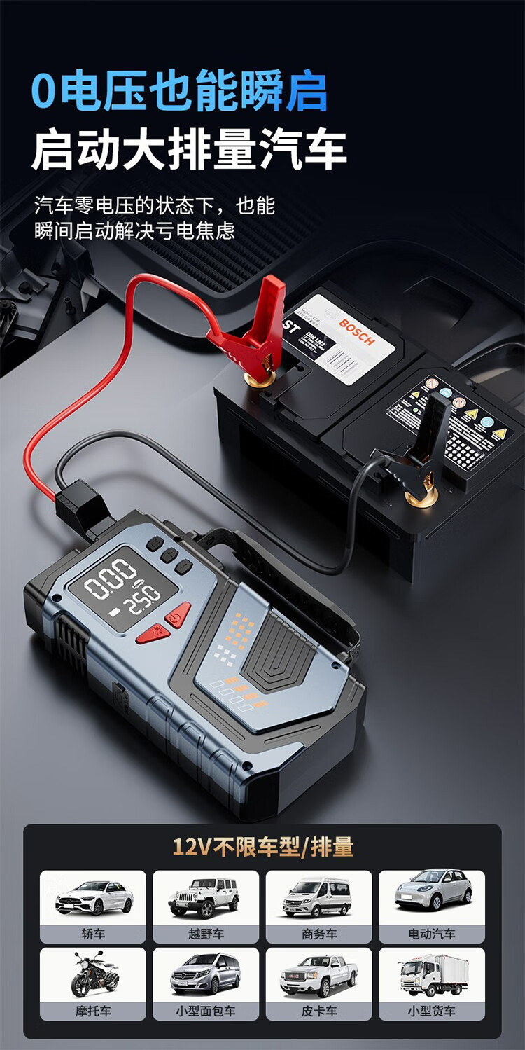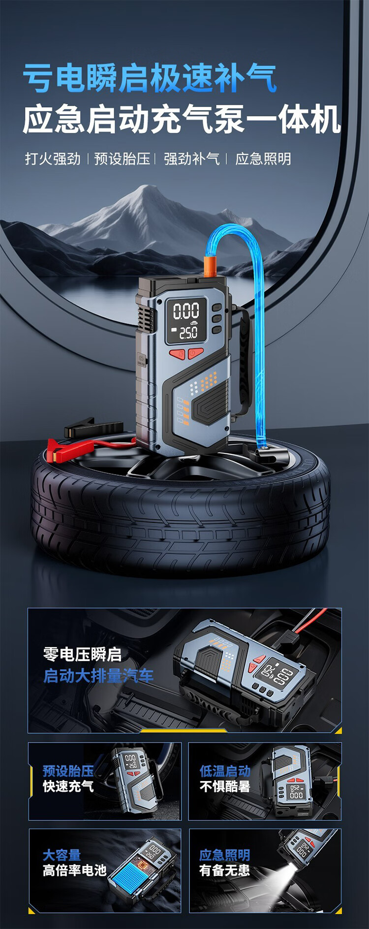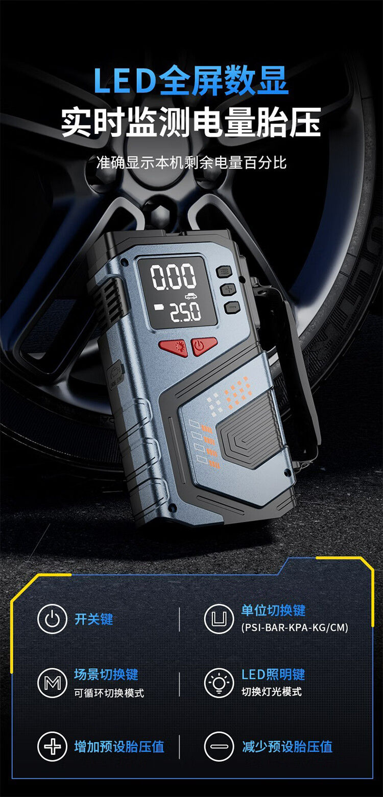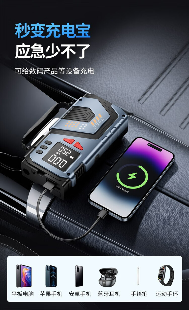 筏芯德国汽车应急启动电源车载充气泵一体机汽车电瓶紧急强搭电宝打火 一体机/无线款【打火/充气/照明/充电宝/测胎压】
