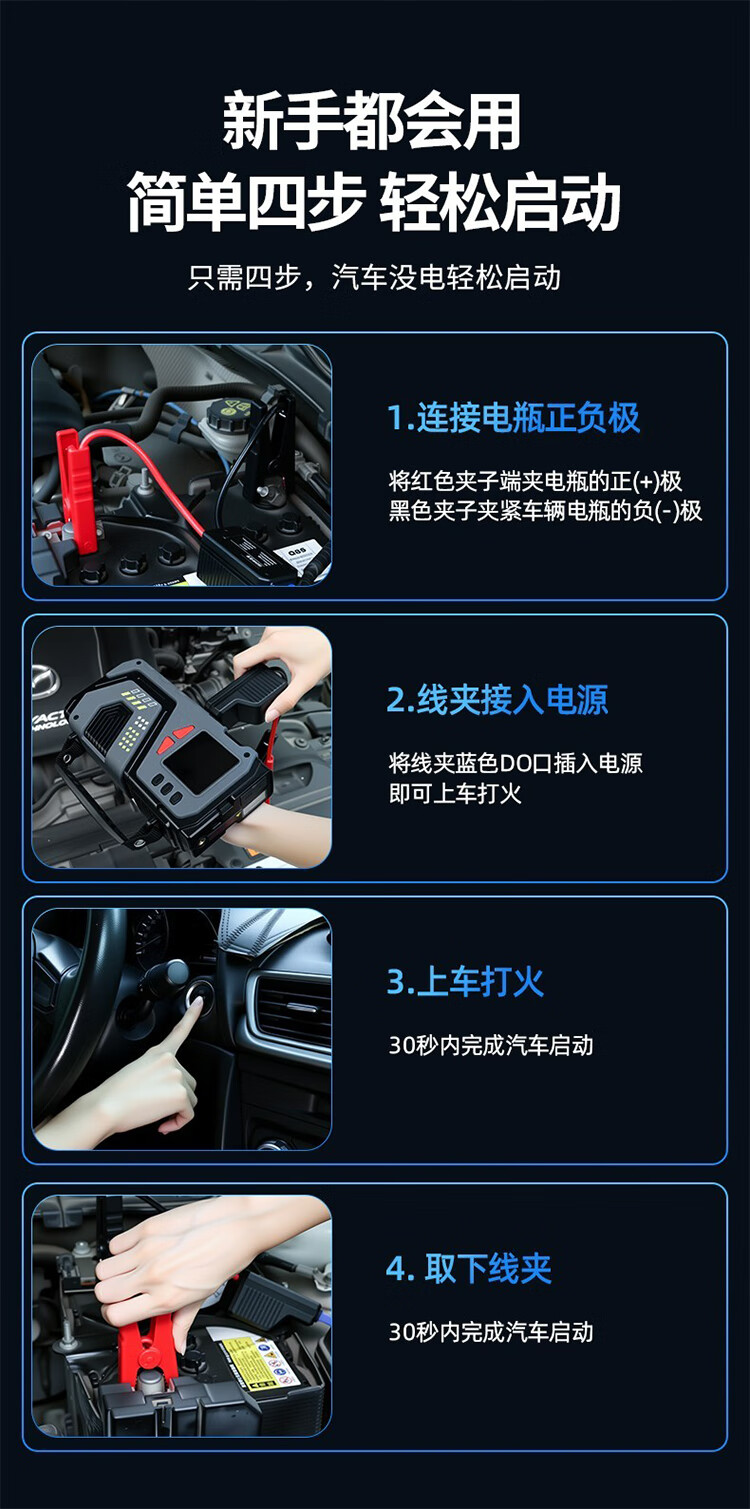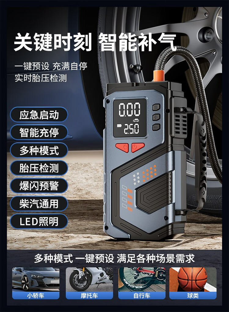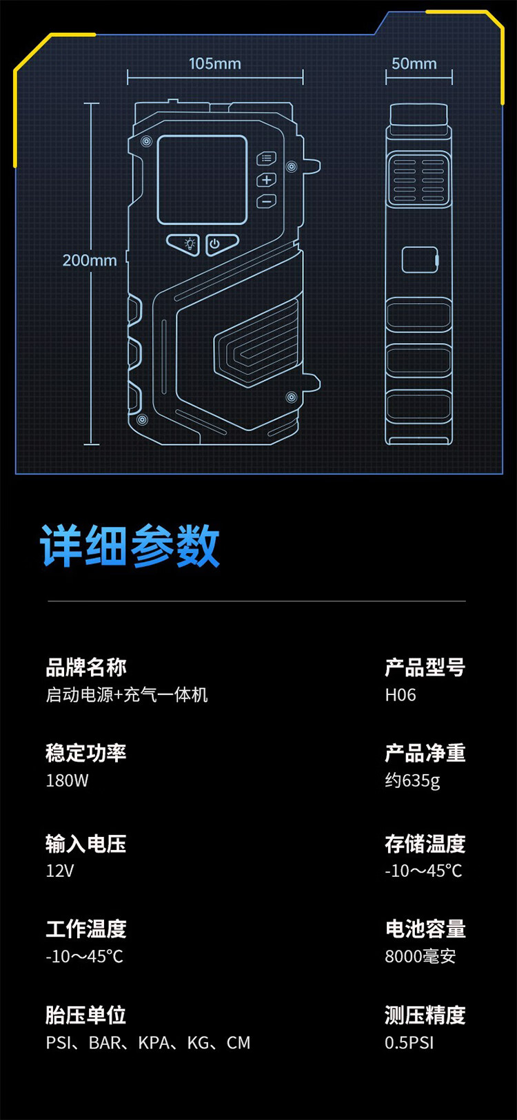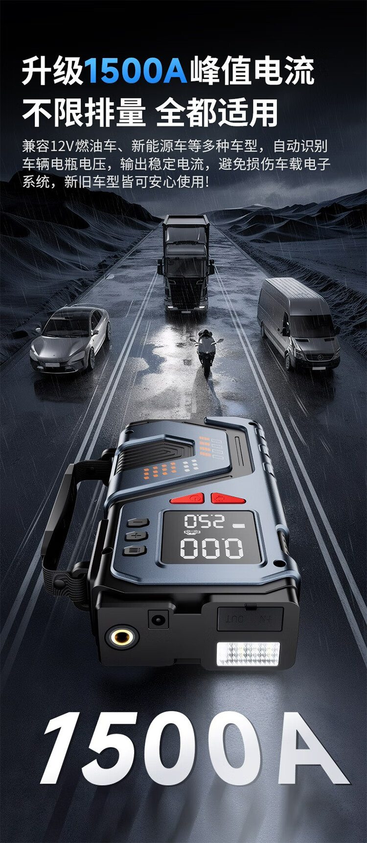 筏芯德国汽车应急启动电源车载充气泵一体机汽车电瓶紧急强搭电宝打火 一体机/无线款【打火/充气/照明/充电宝/测胎压】