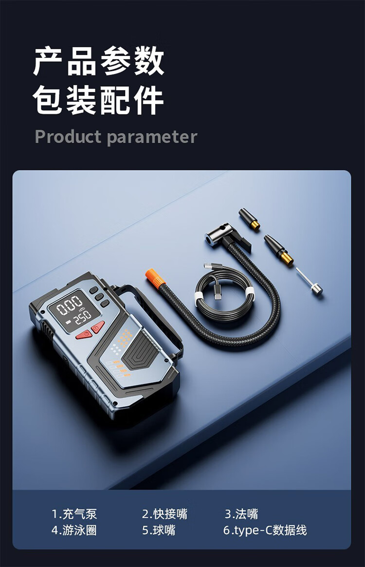 筏芯德国车载无线充气泵汽车用便携式打气泵电动轿车轮胎高压打气充气 【德系无线款】双聚锂电9999999泵驱动力+氮气快充