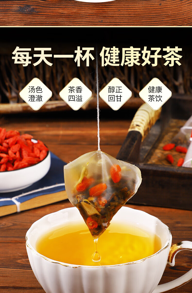 婉明制牌人参枸杞九宝茶枸杞茶花茶黄精杜仲雄花男人茶 婉明制-人参枸杞九宝茶(牛皮袋袋泡茶150克30包