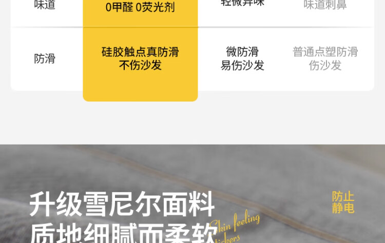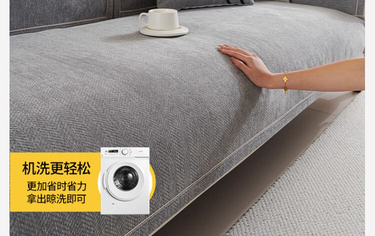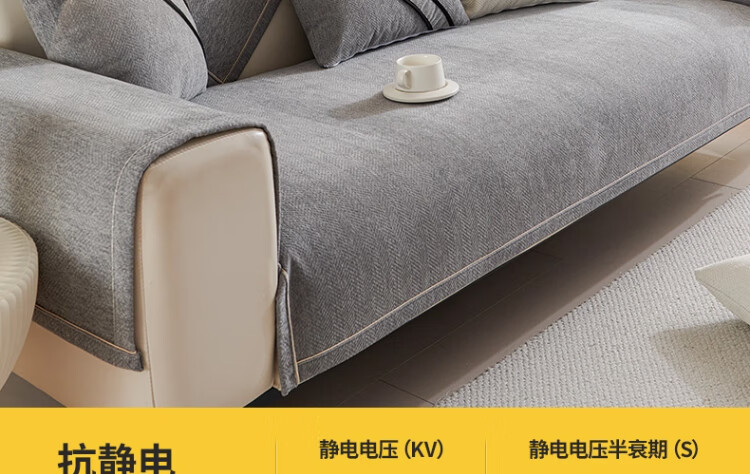 无印良品【超耐磨】2025新款雪尼尔沙发垫四季通用固定防滑防猫抓沙发坐垫 养猫必备-云初-浅灰【防抓力MAX】 70*70cm(直角边,适用靠背扶手巾)