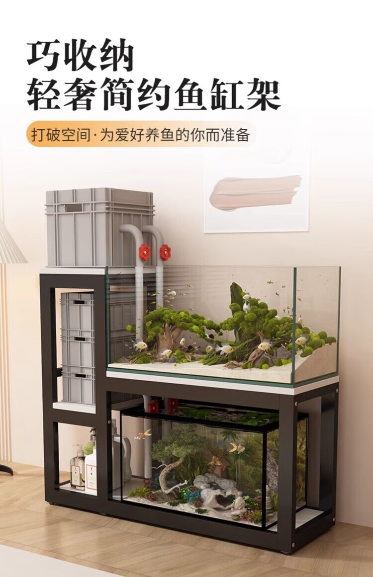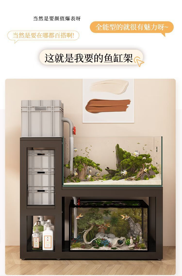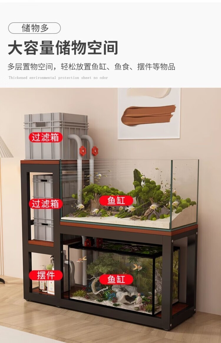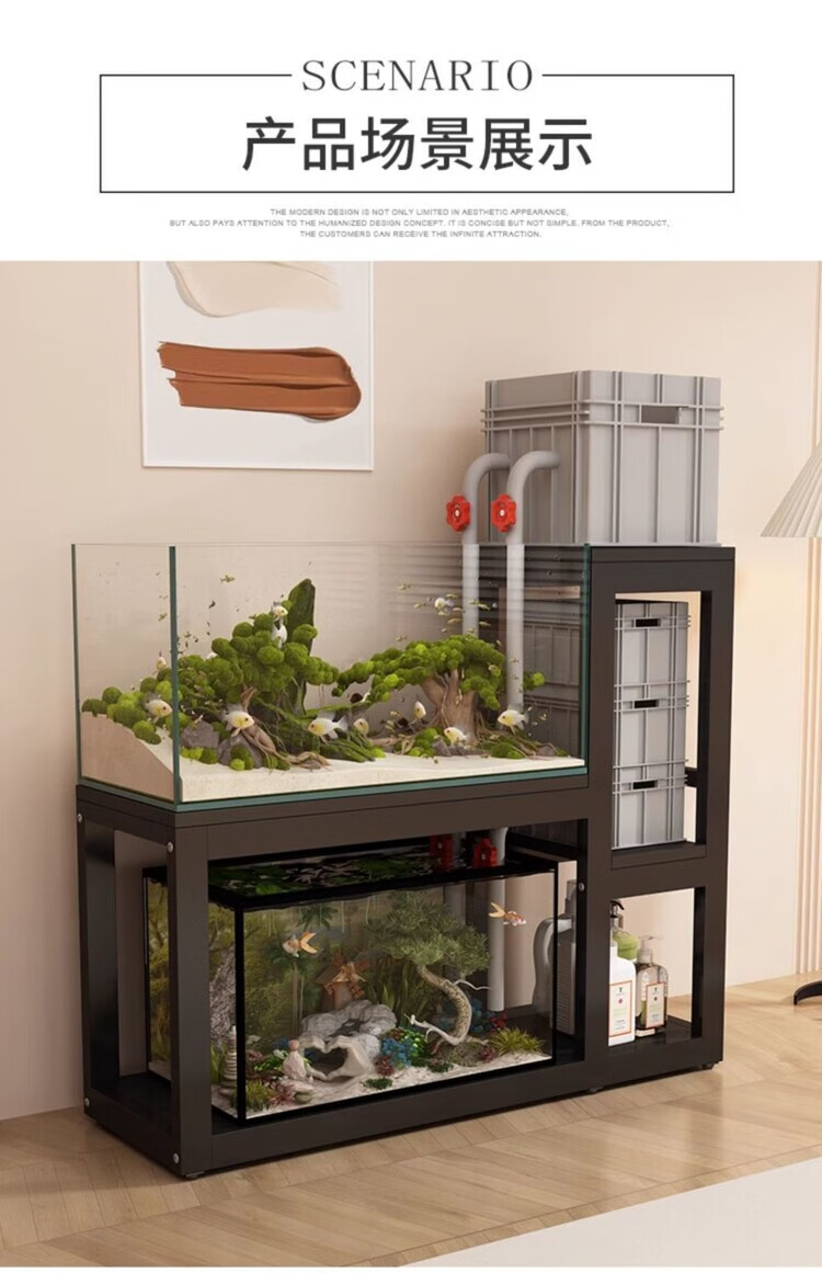 倘然之家2025新款鱼缸底柜客厅底座金属承重多层鱼缸架落地架子鱼缸桌子 黑架+黑板- 【加粗加厚】 长60*宽40*高110CM【总长90】