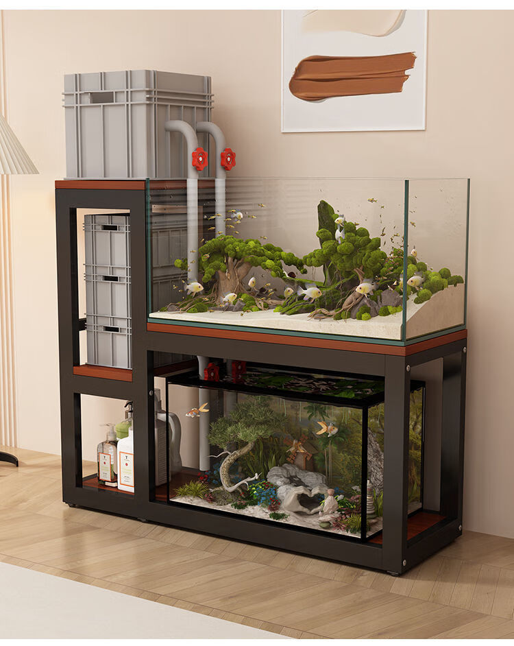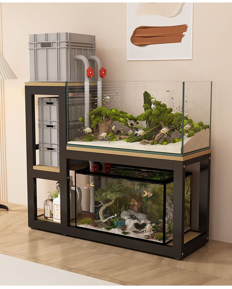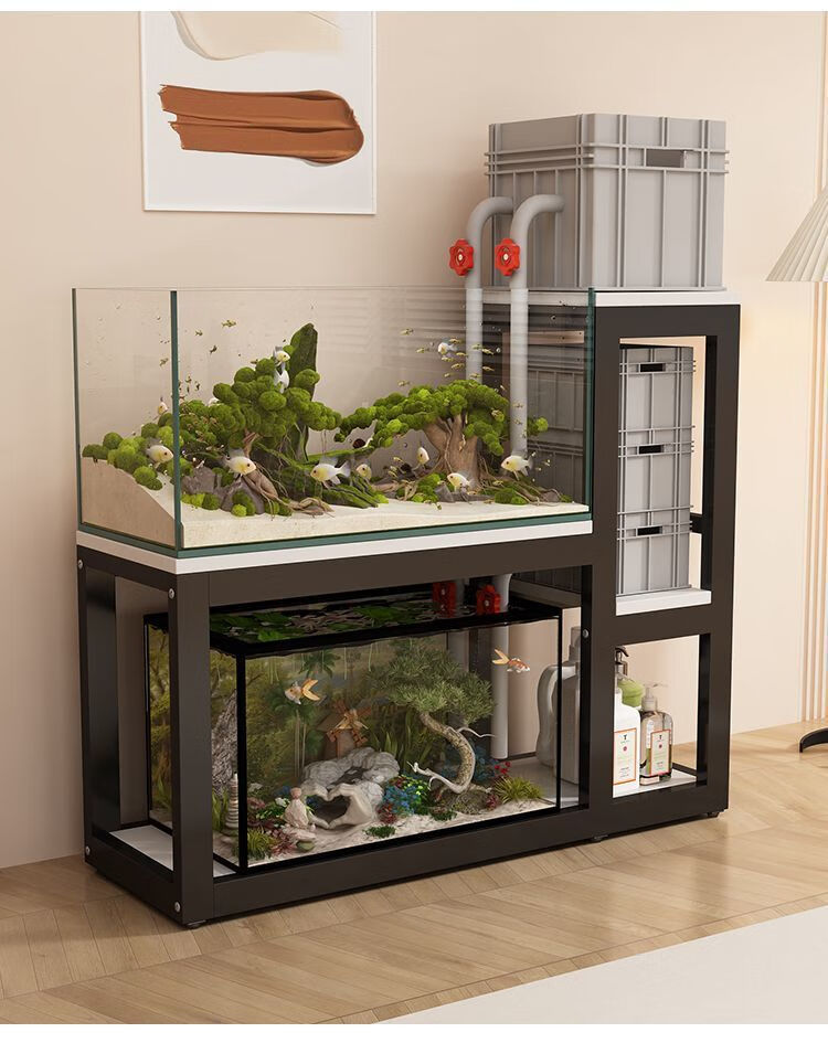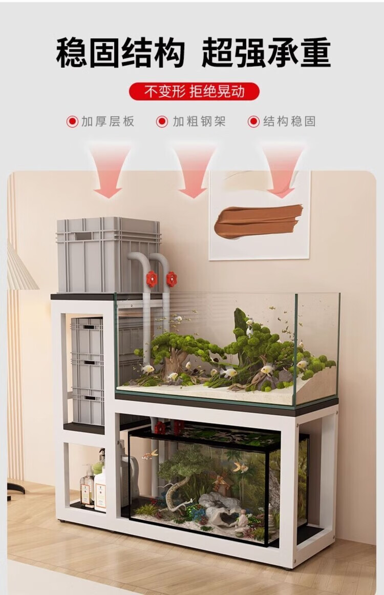 倘然之家2025新款鱼缸底柜客厅底座金属承重多层鱼缸架落地架子鱼缸桌子 黑架+黑板- 【加粗加厚】 长60*宽40*高110CM【总长90】