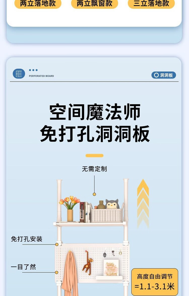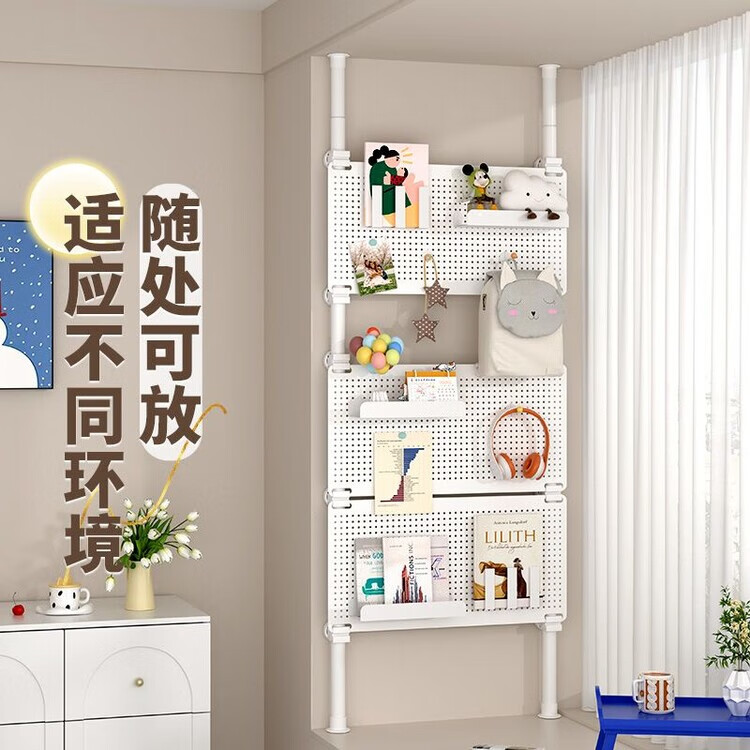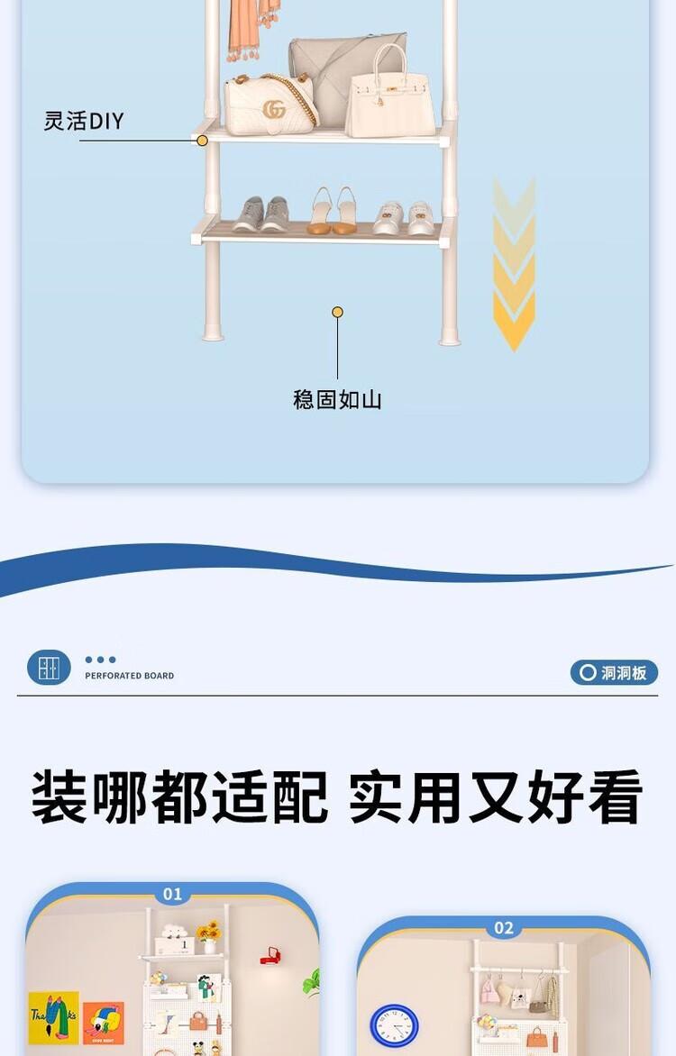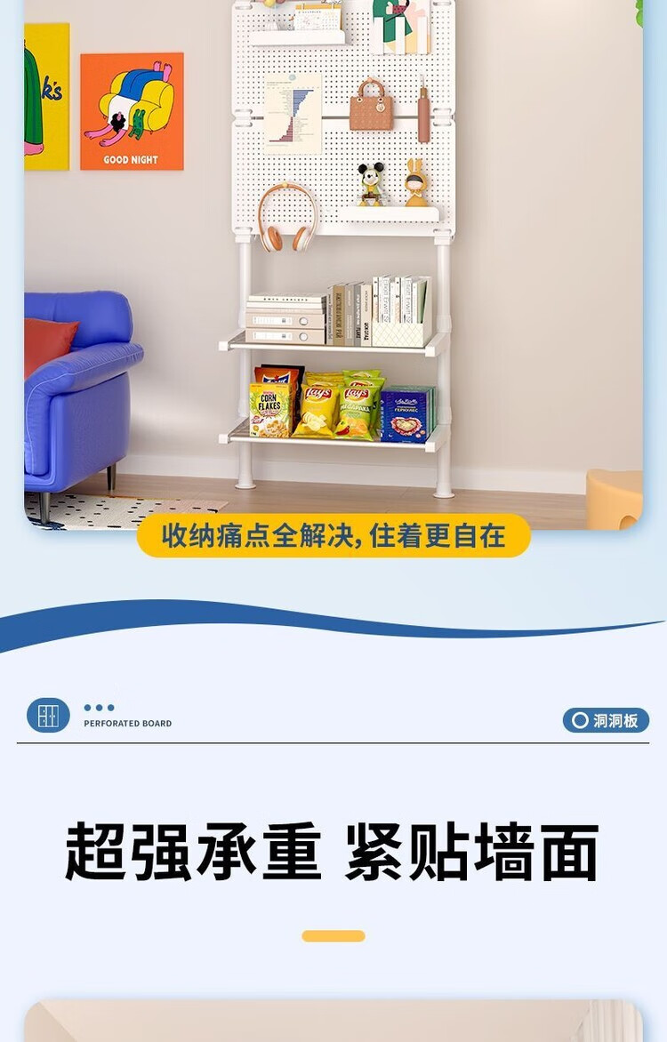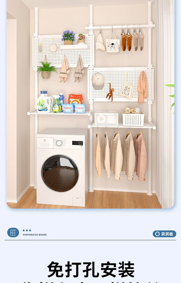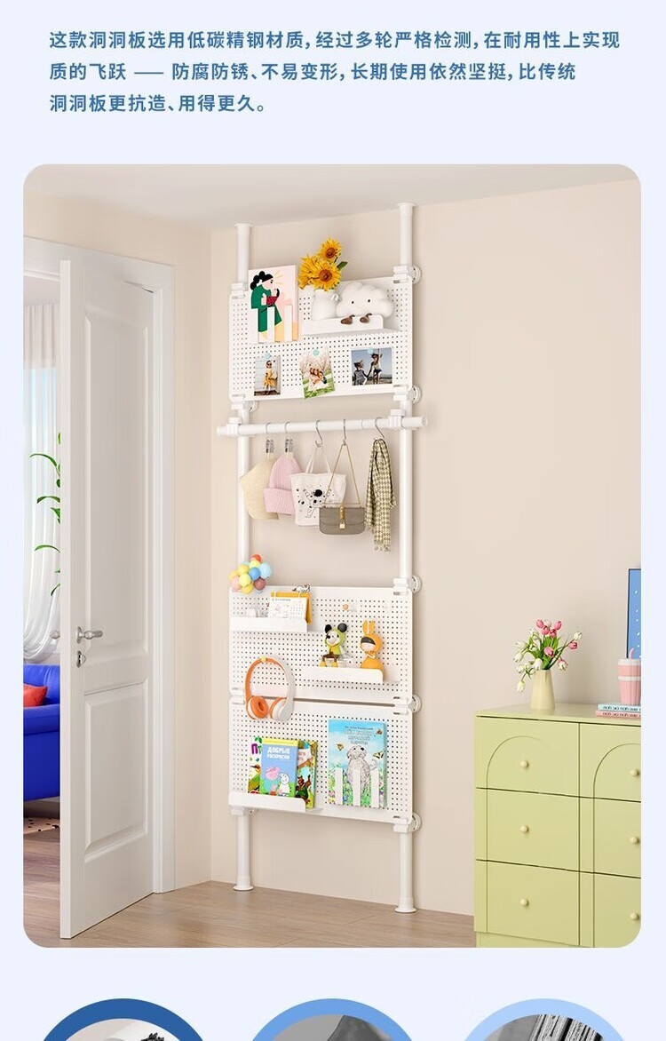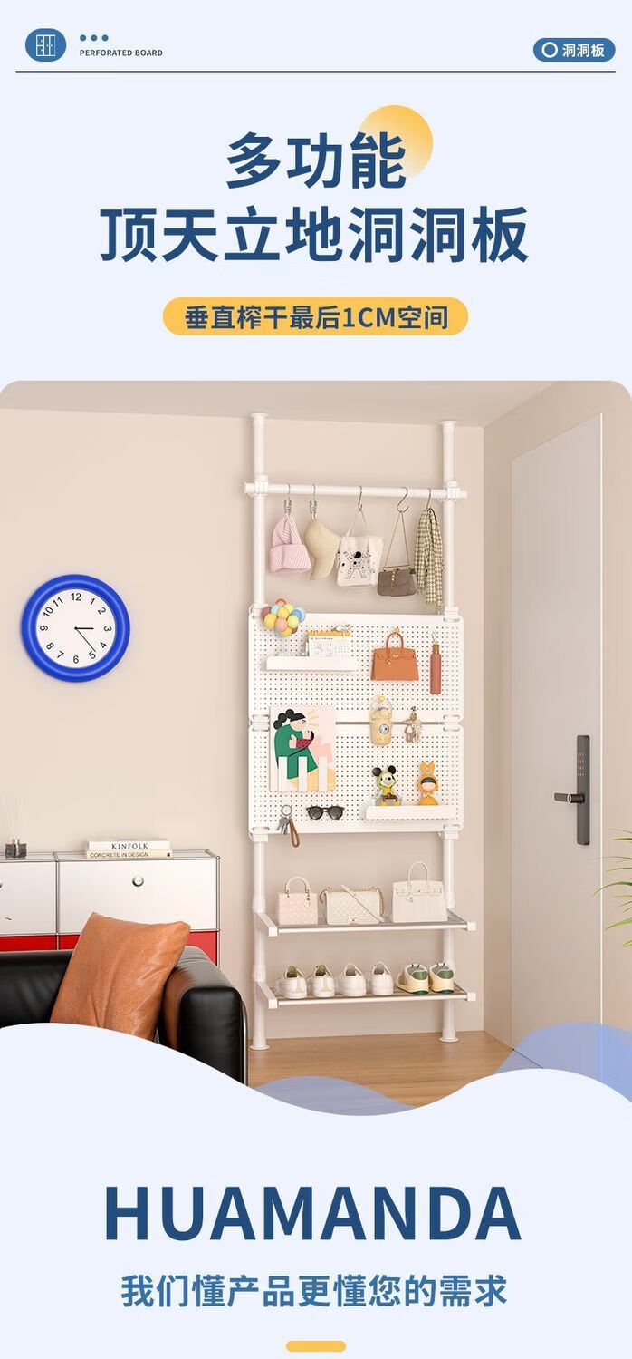 迈途森免打孔顶天立地门后超薄洞洞板置物架落地多层收纳架省空间挂衣架 两立2横杆 高度1.1-1.6米可调节