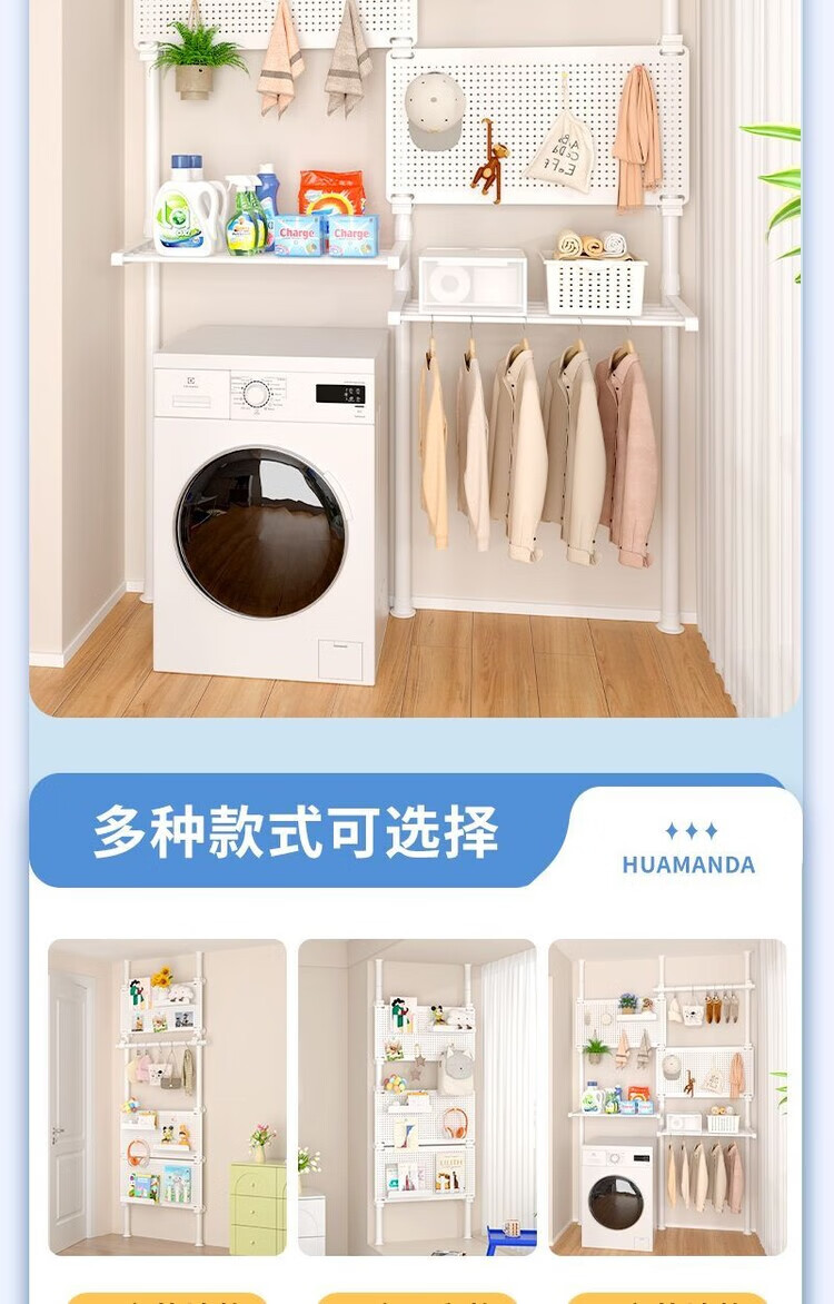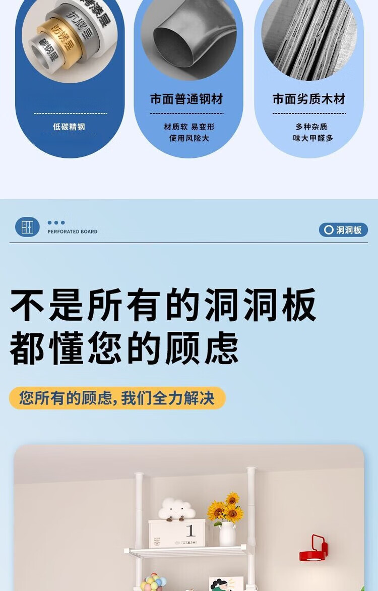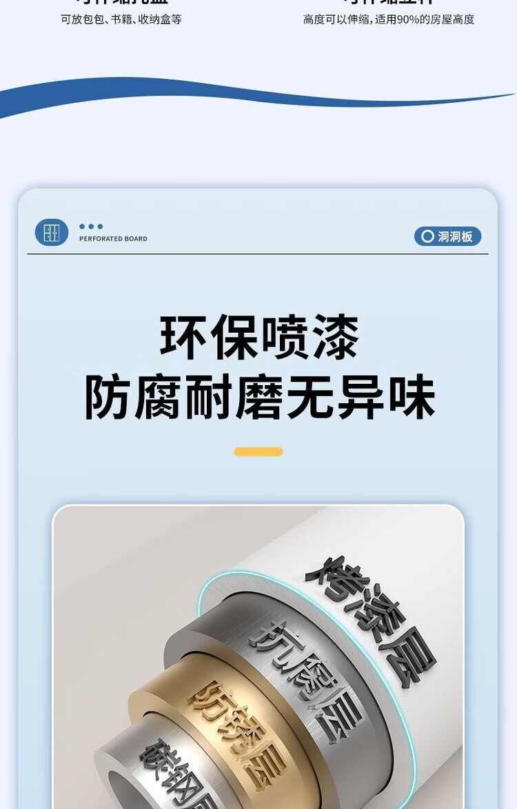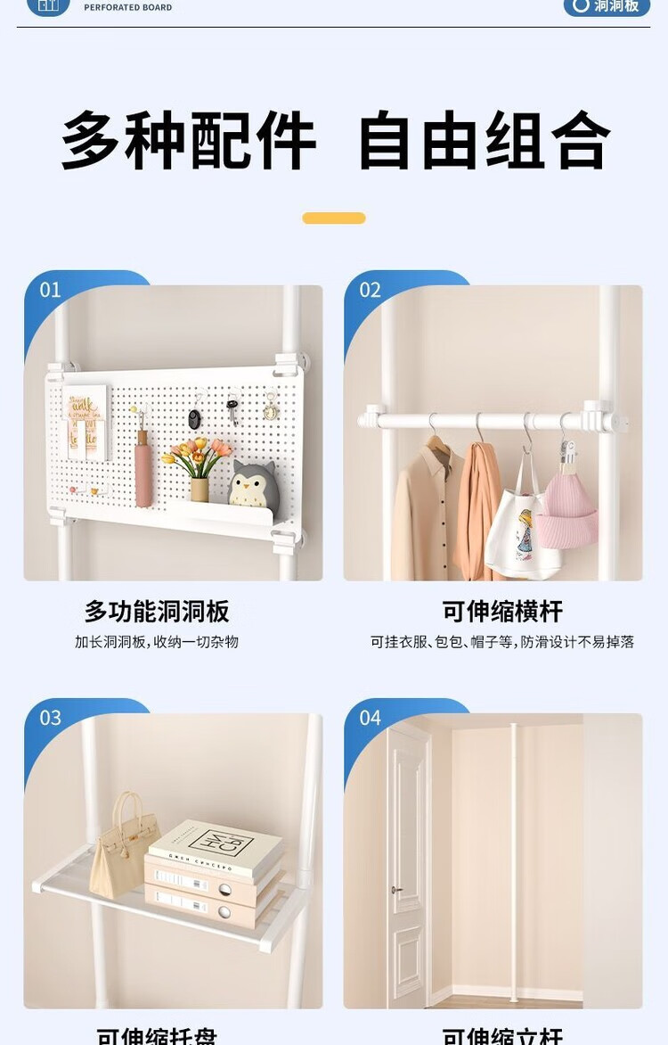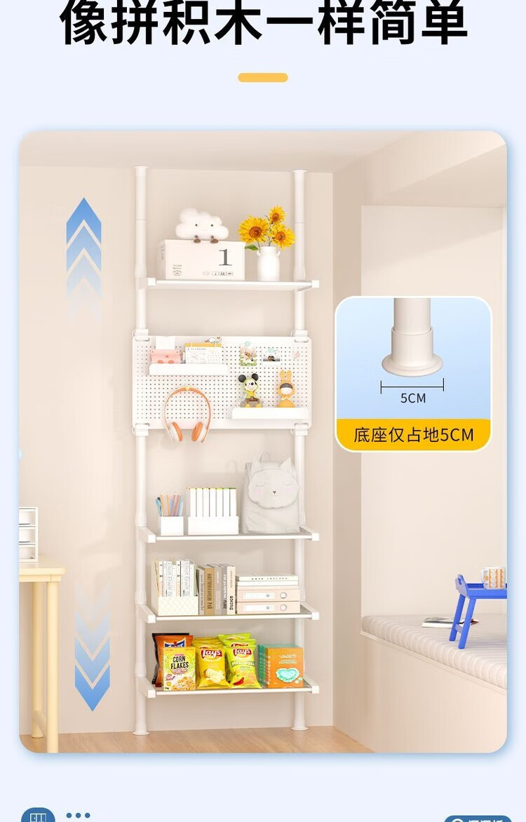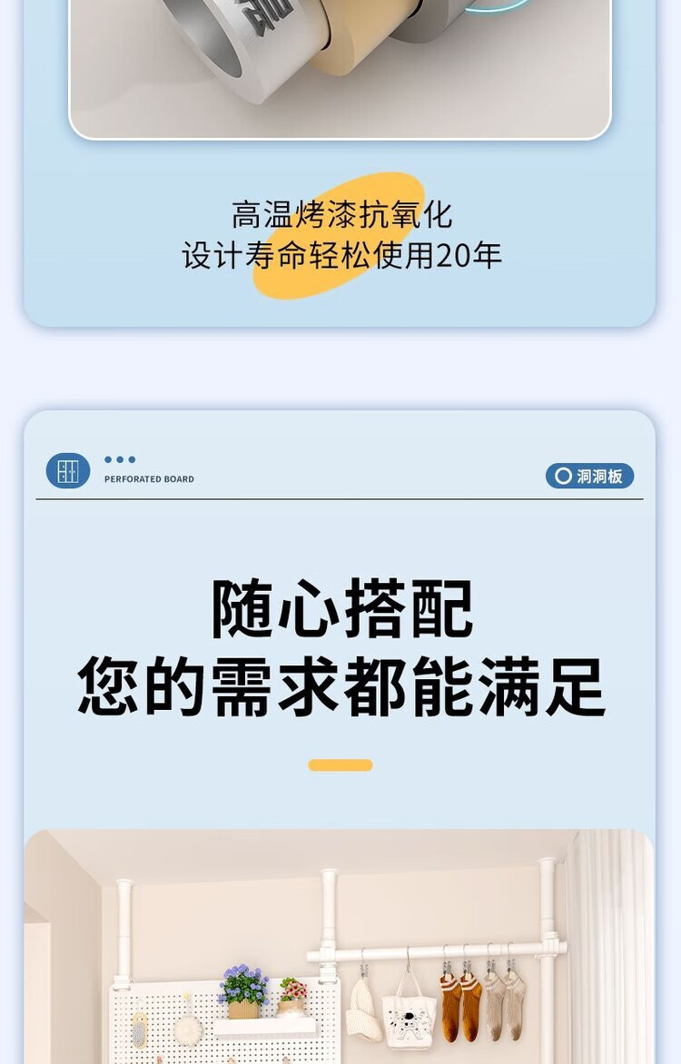 迈途森免打孔顶天立地门后超薄洞洞板置物架落地多层收纳架省空间挂衣架 两立2横杆 高度1.1-1.6米可调节