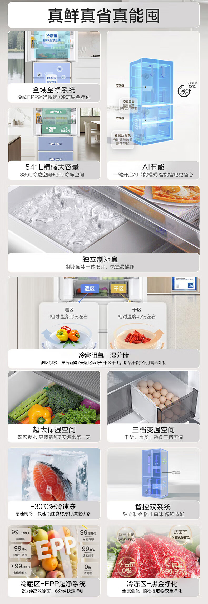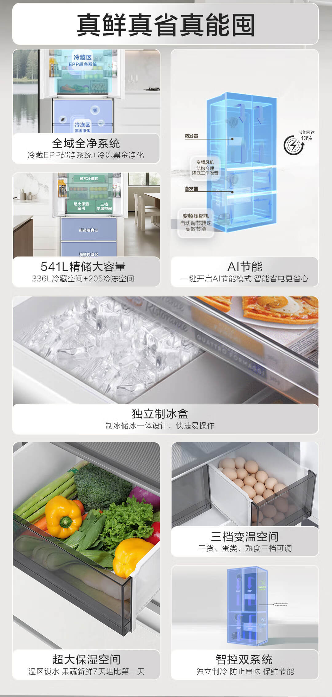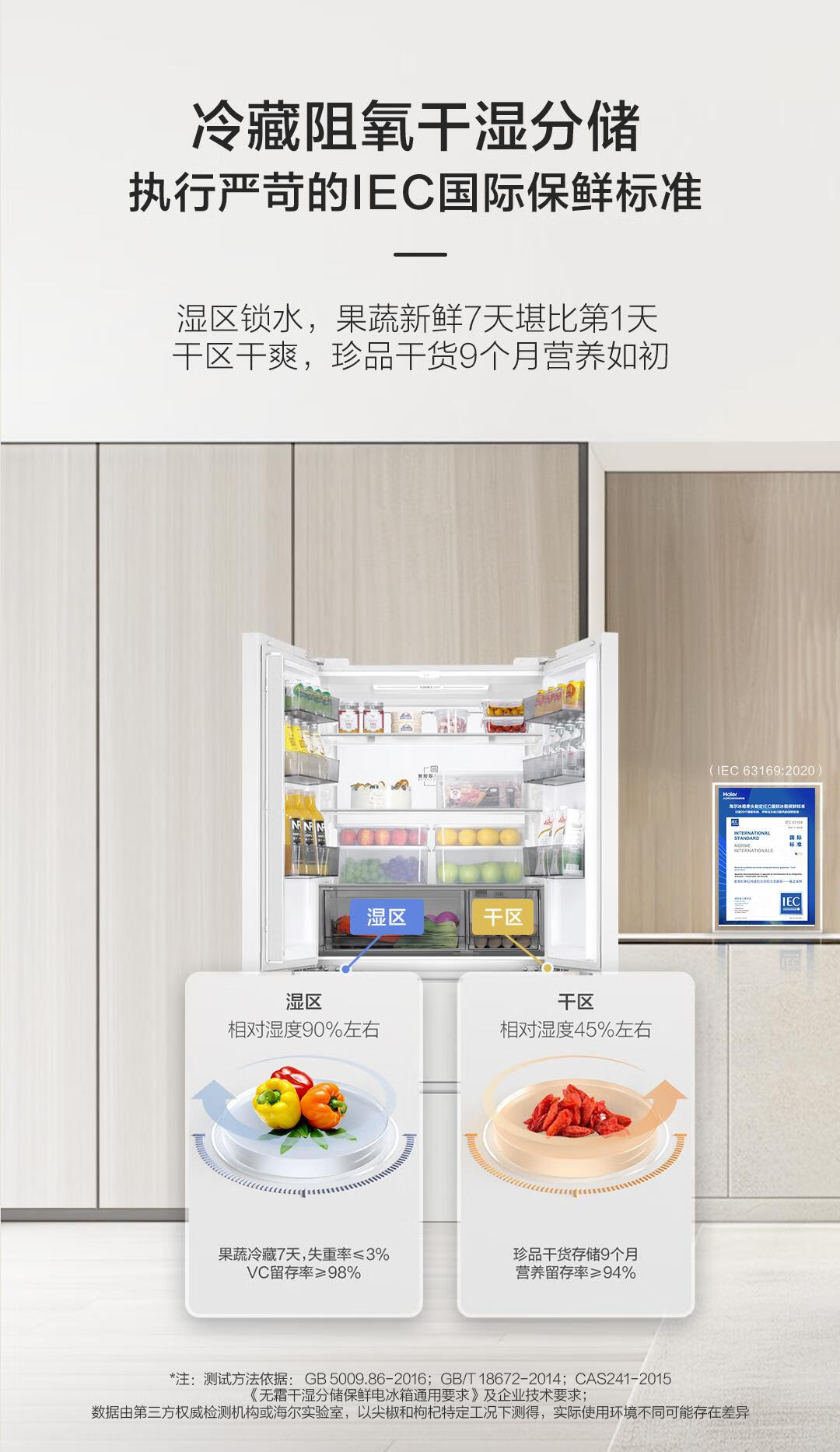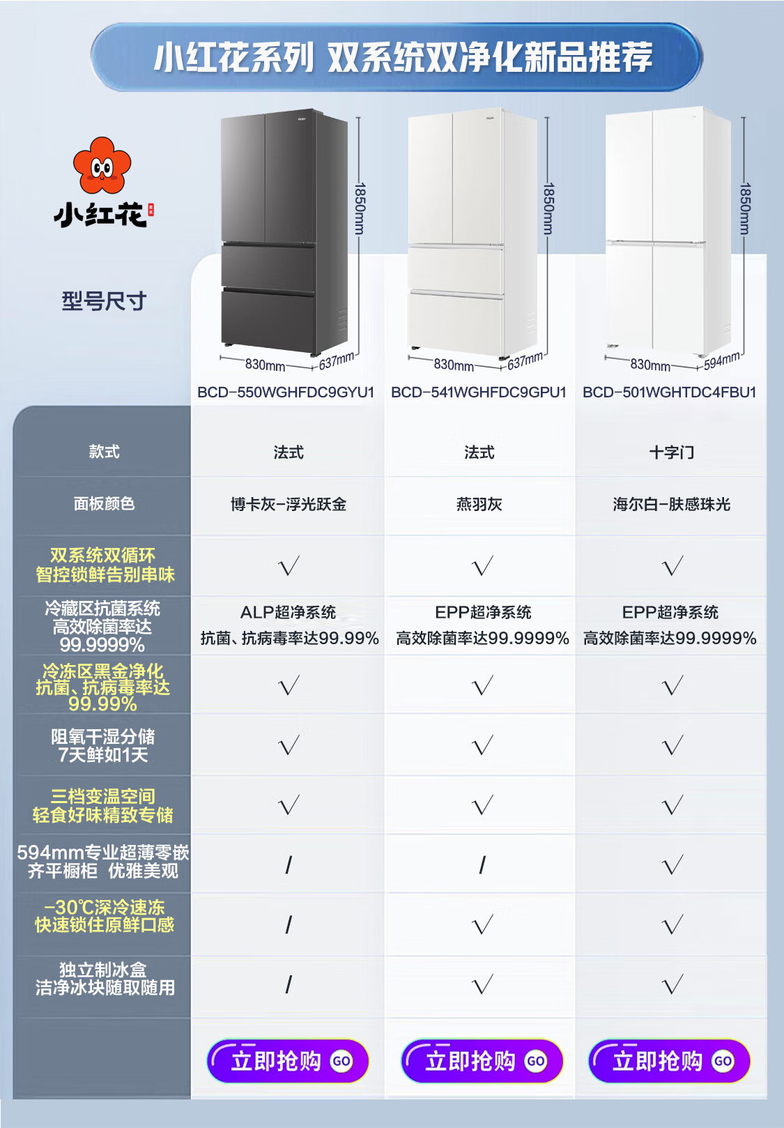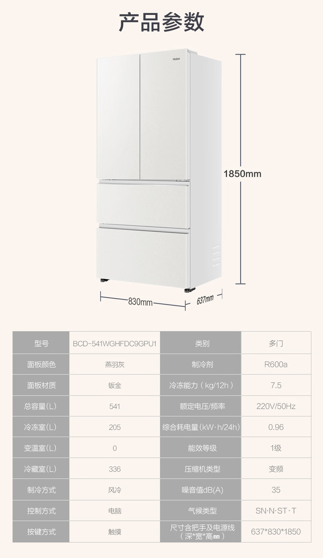 海尔(Haier)小红花541升法式多门冰箱双系统全域净化-30℃深冷锁鲜BCD-541WGHFDC9GPU1国家补贴20%