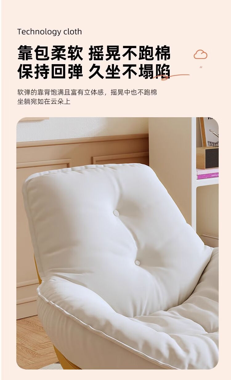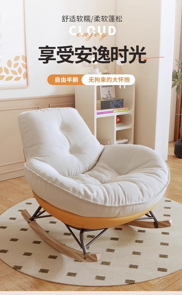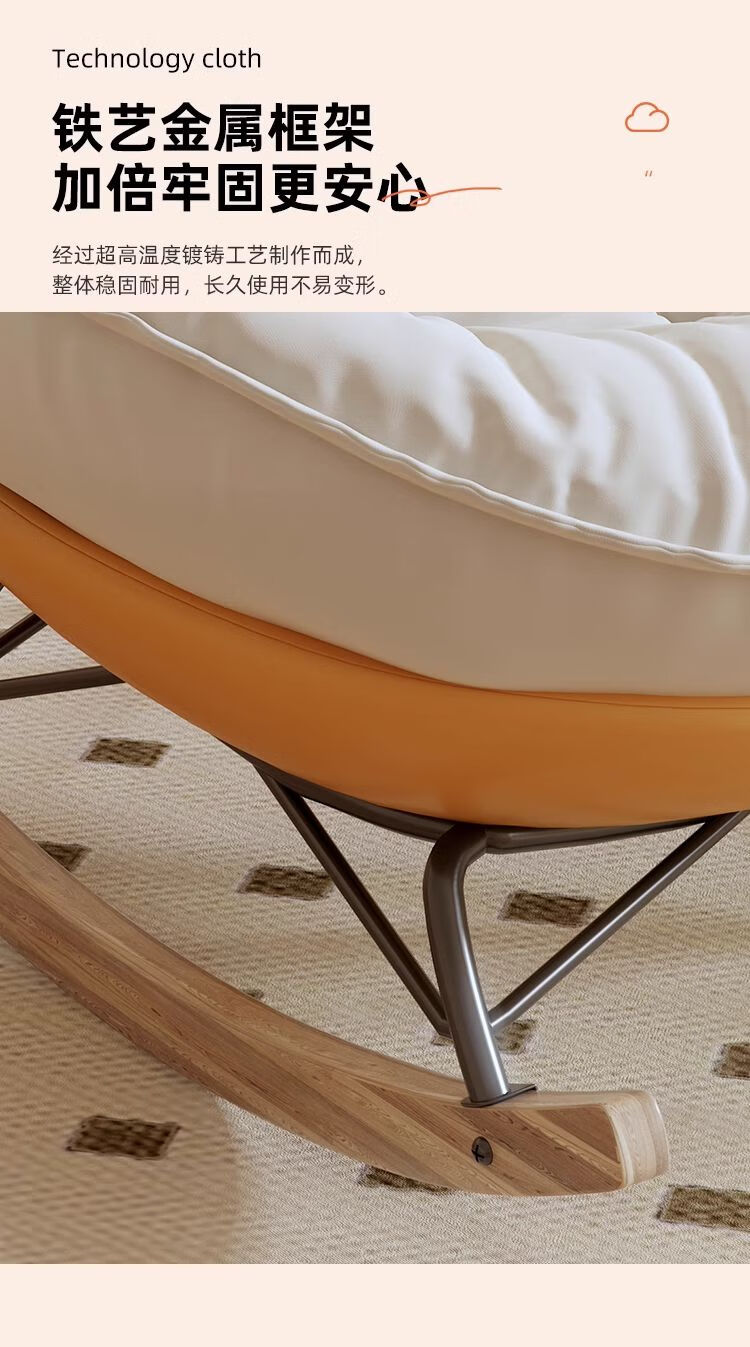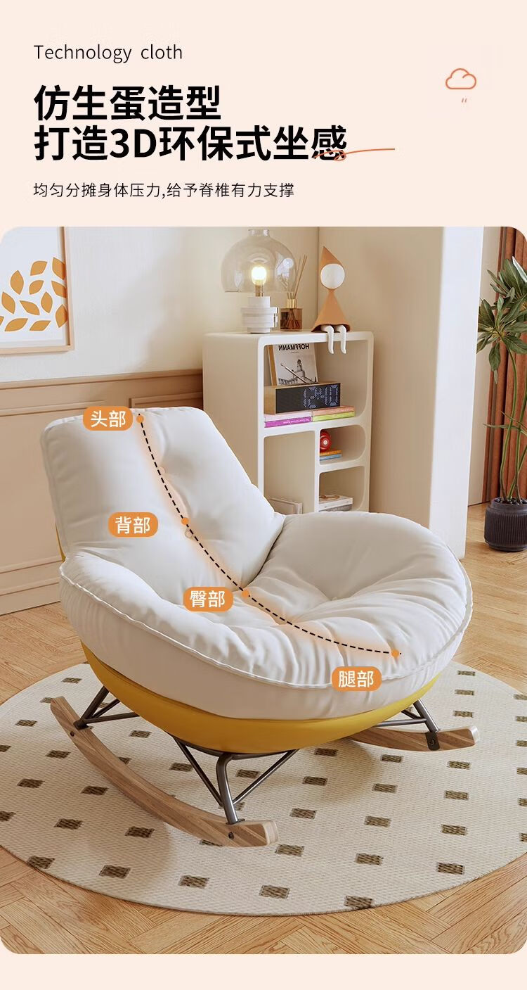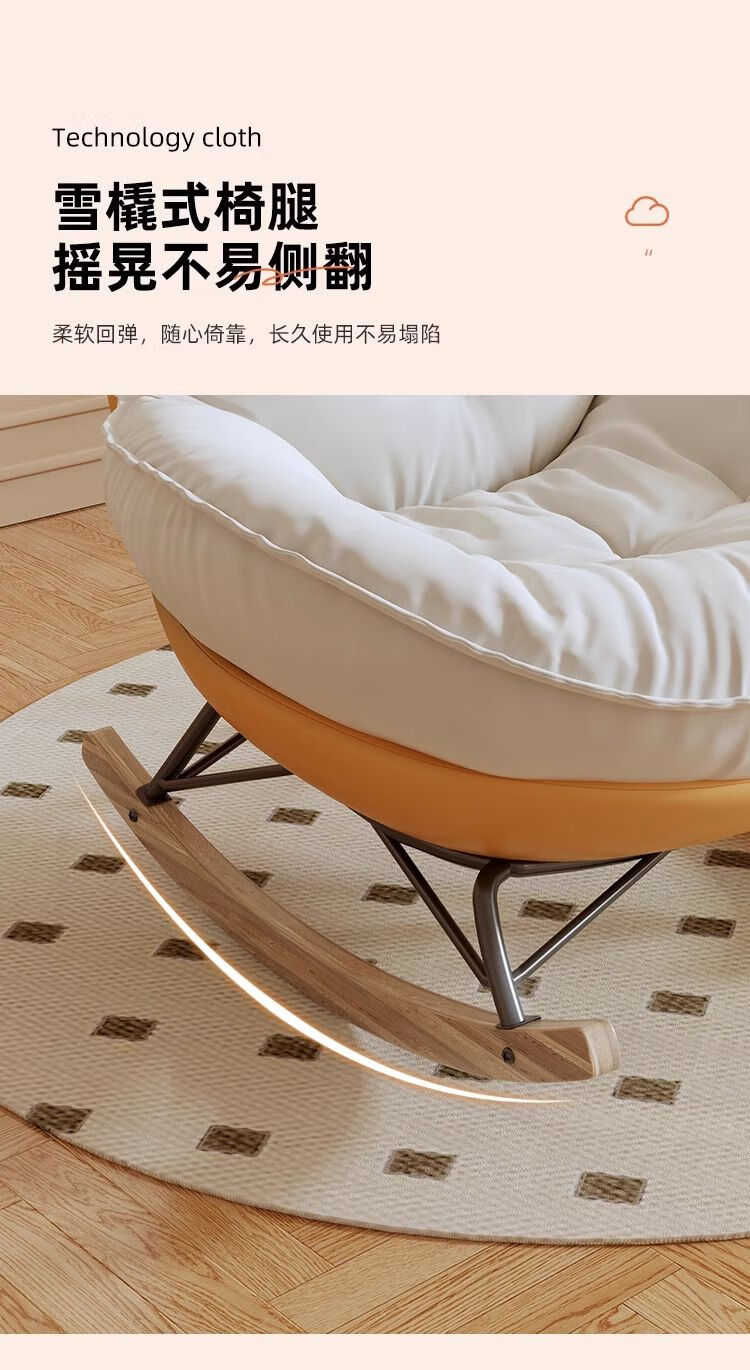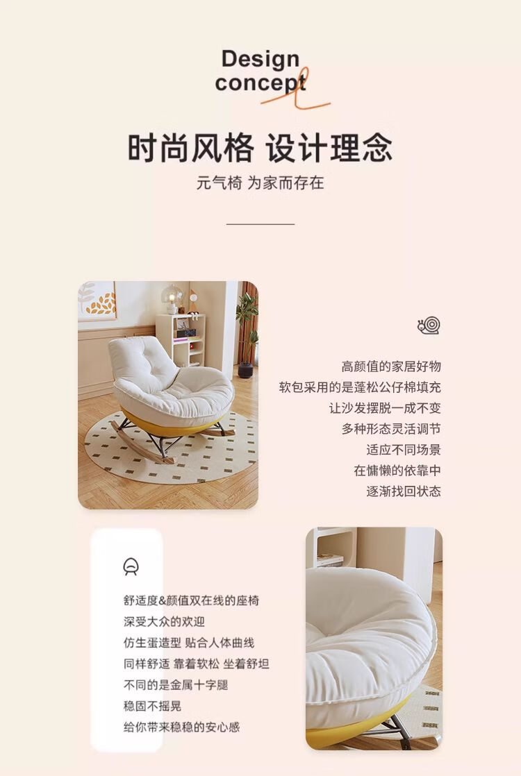 迈途森企鹅摇椅懒人蛋壳沙发躺椅成人客厅蜗牛阳台单人家用休闲卧室摇摇 灰色底座+绒布坐包【新款大号】