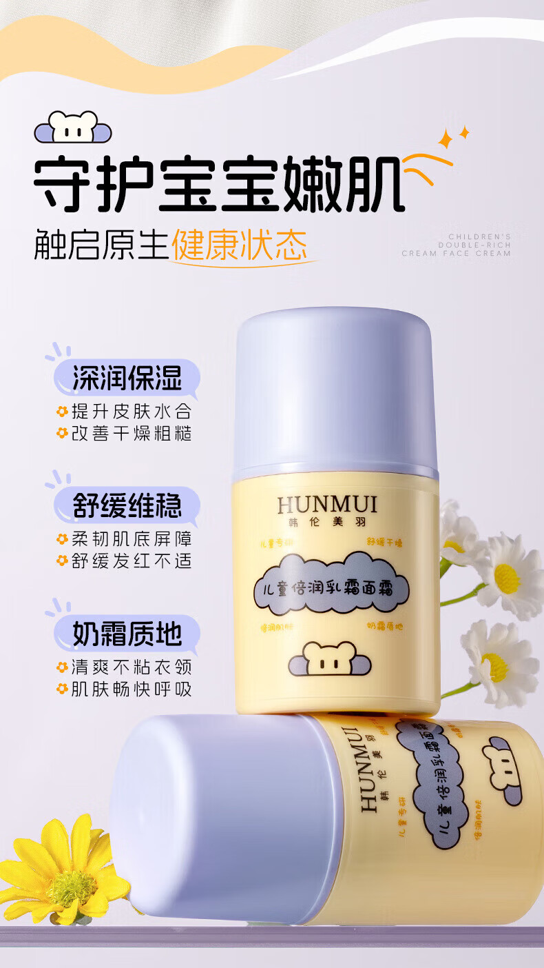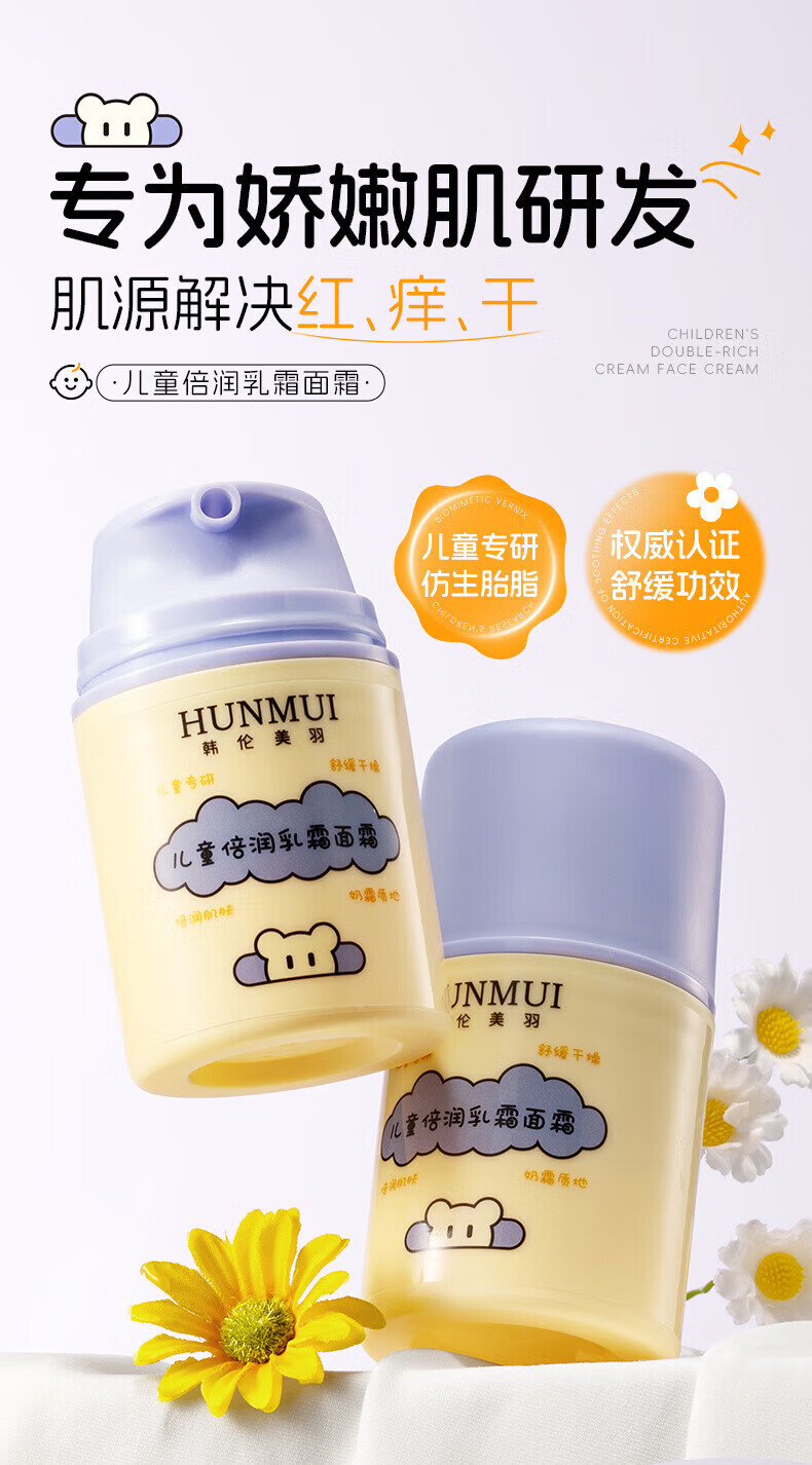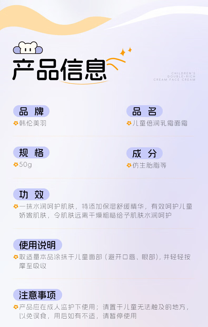 韩伦美羽小金盾儿面霜保湿舒缓秋润宝宝专用 儿倍润乳霜面霜50g