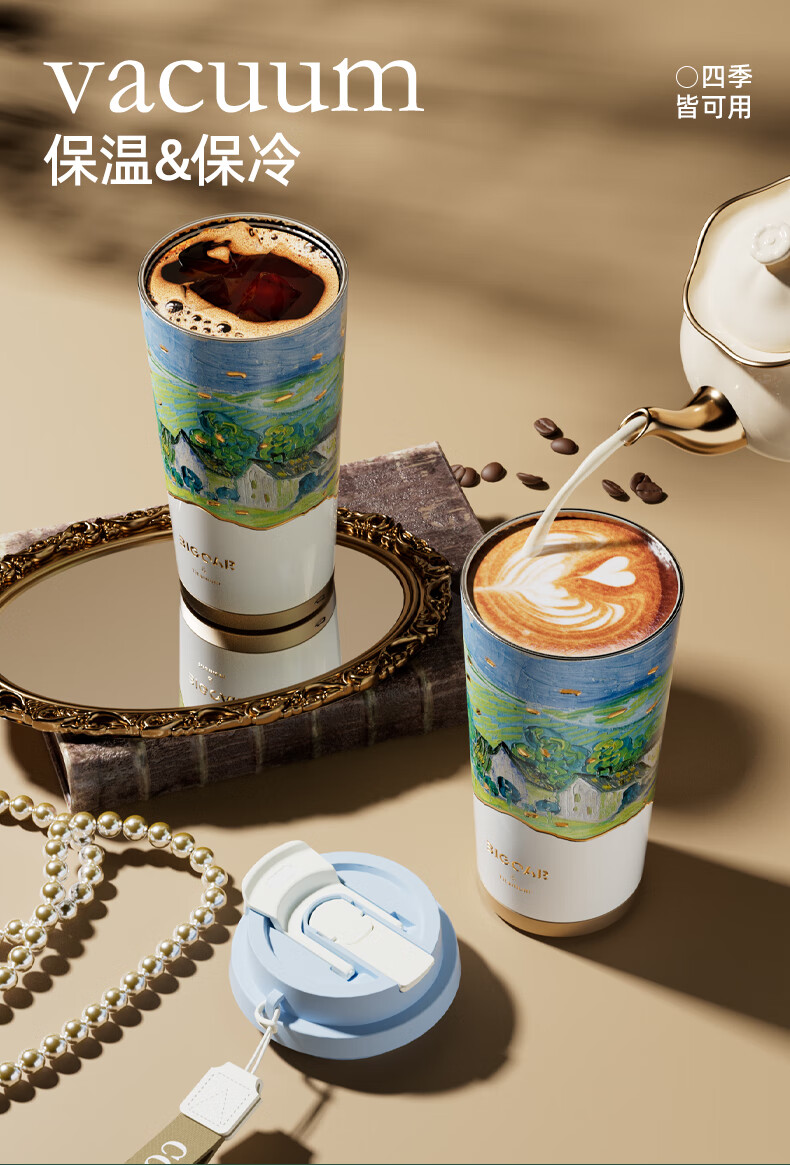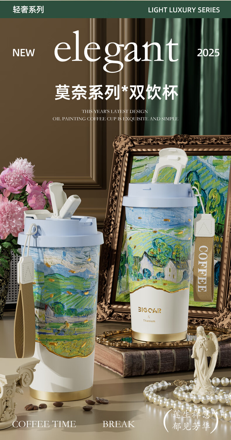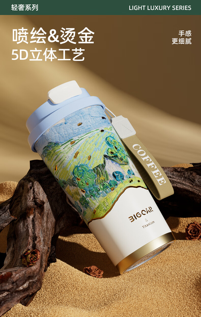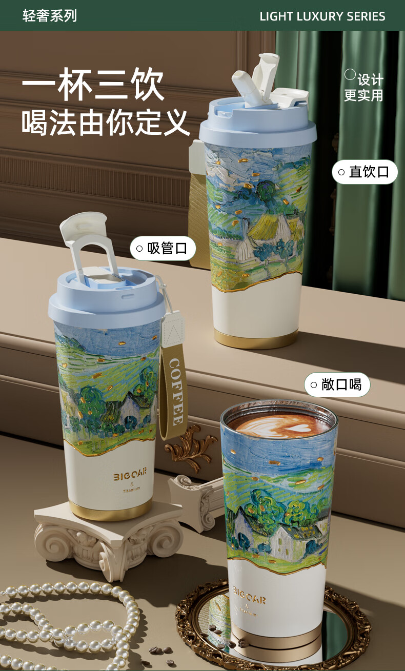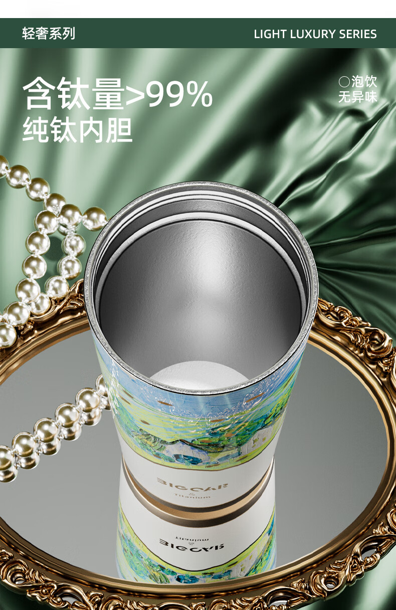 大卡纯钛保温杯男女便携咖啡杯学生双饮杯子送男友女友生日礼物水杯 奥维尔景观【内外纯钛】520ml