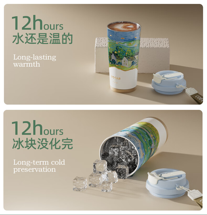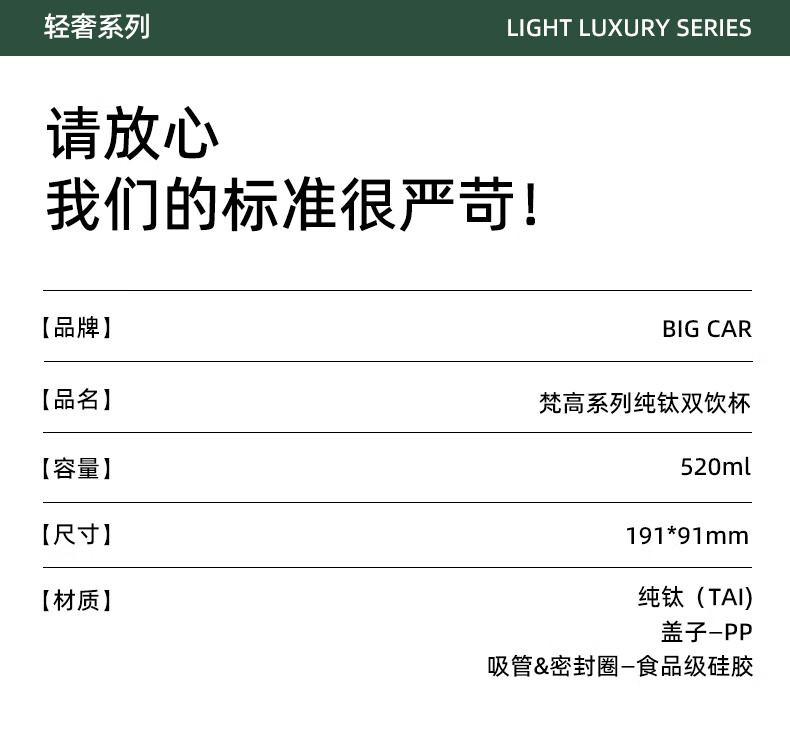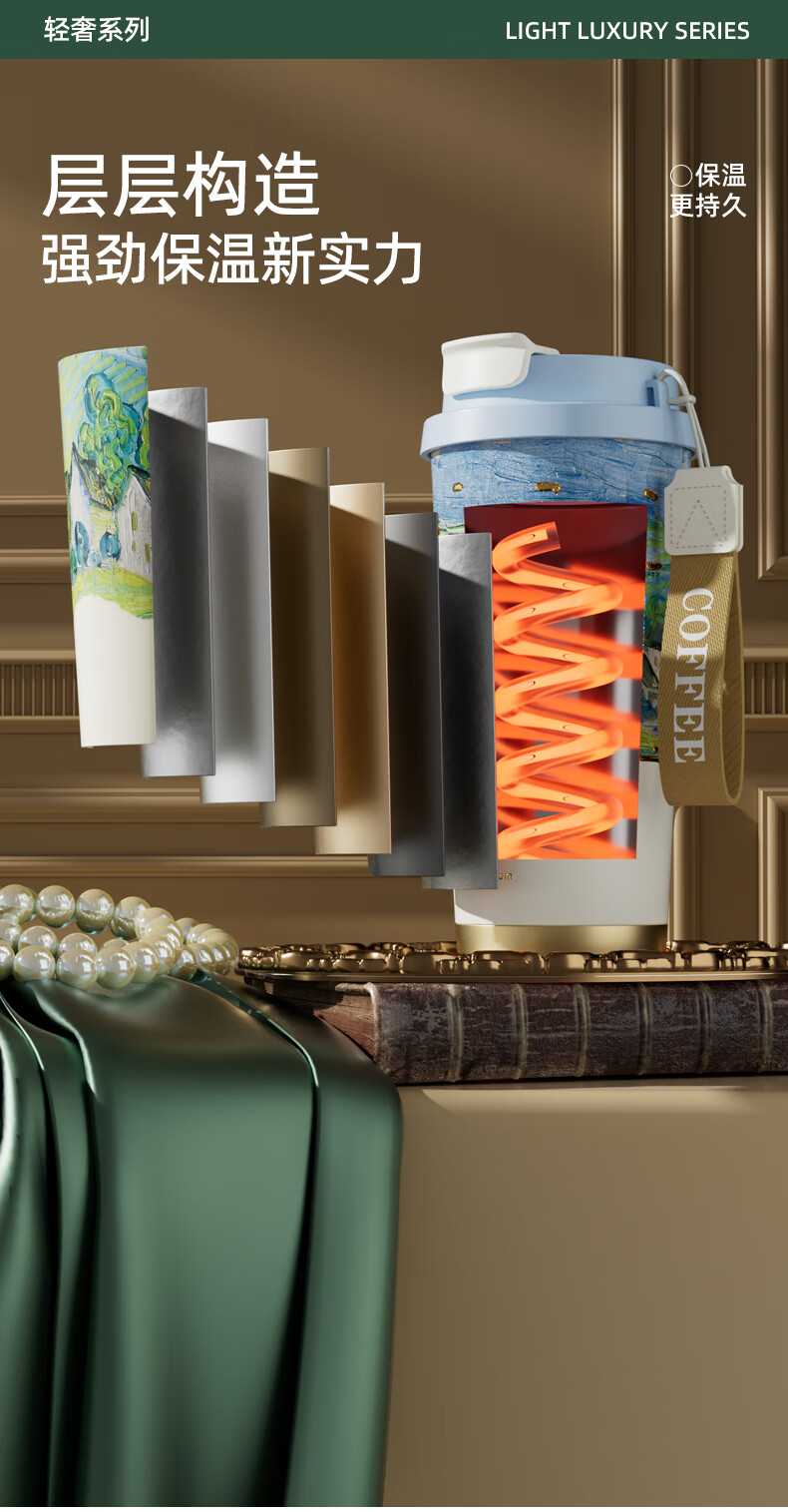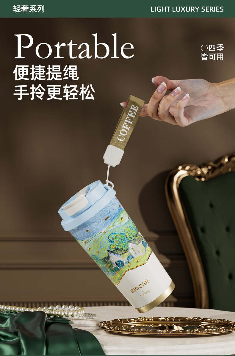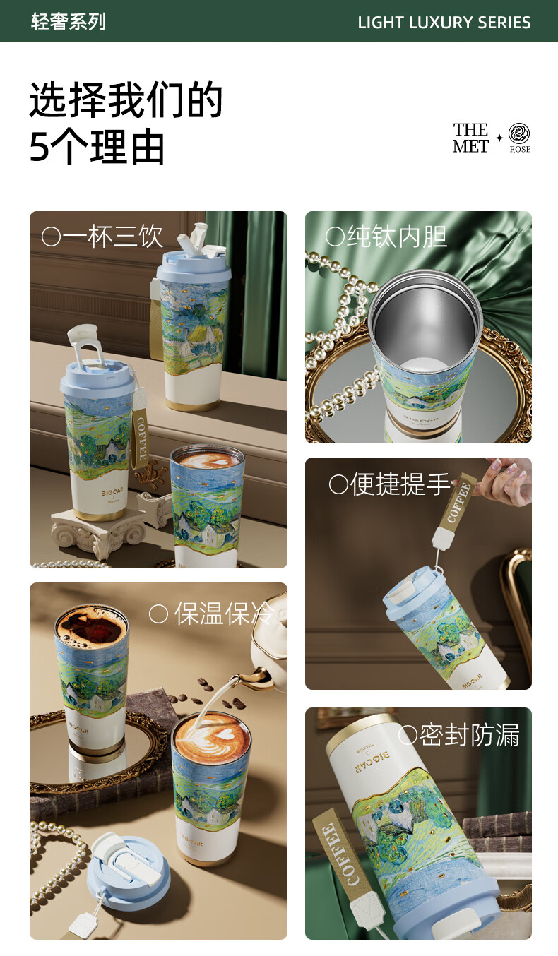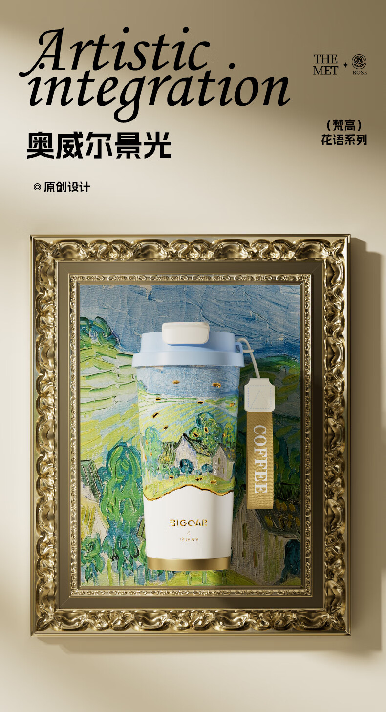 大卡纯钛保温杯男女便携咖啡杯学生双饮杯子送男友女友生日礼物水杯 奥维尔景观【内外纯钛】520ml