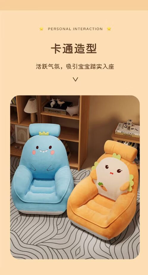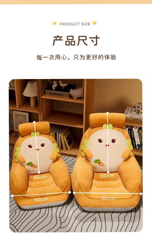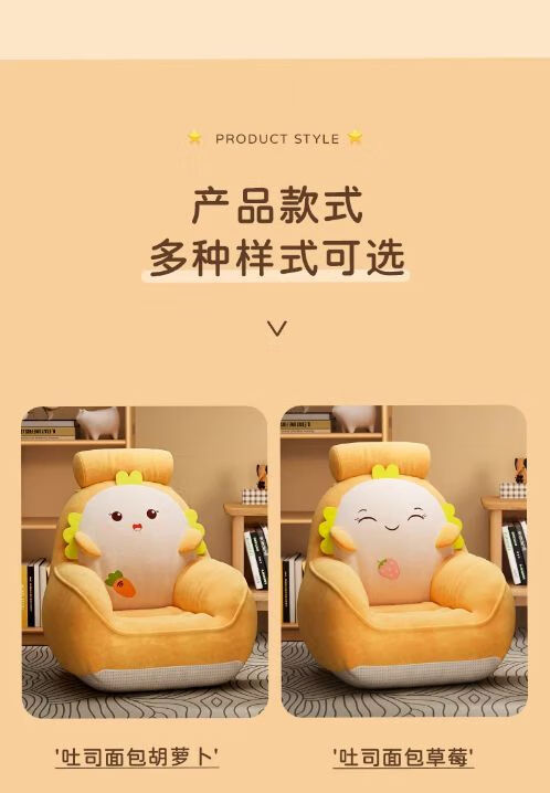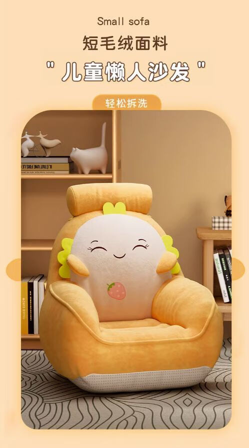 弘星隆卡通懒人沙发卧室阅读角儿童沙发阳台休闲家用小沙发椅坐垫靠背椅 吐司面包草莓 50x40cm