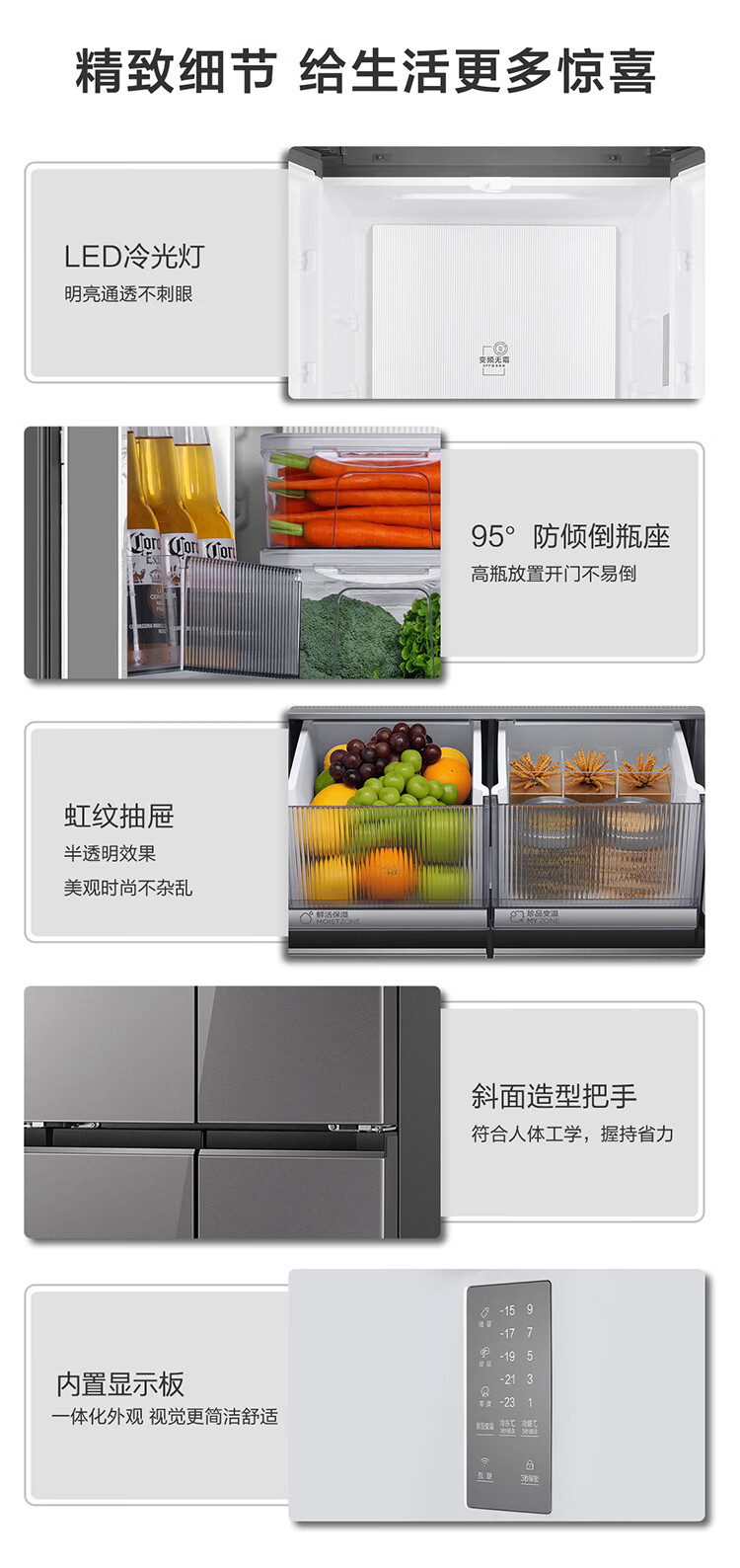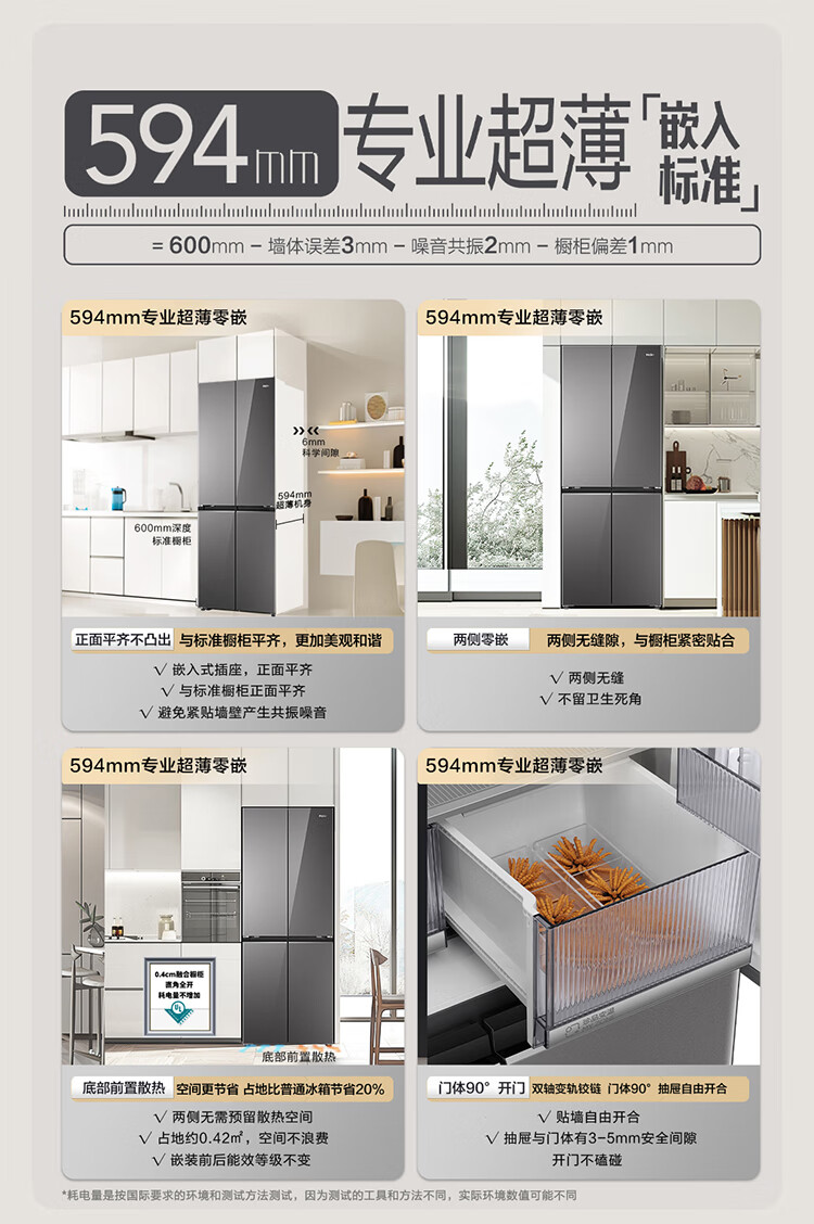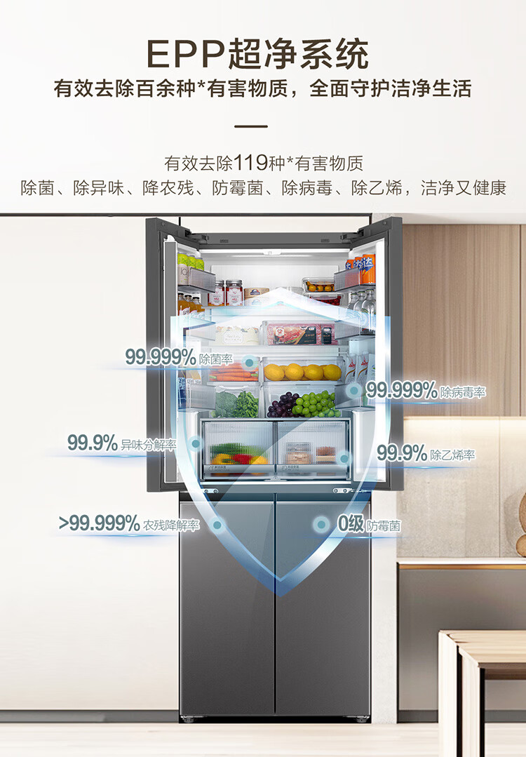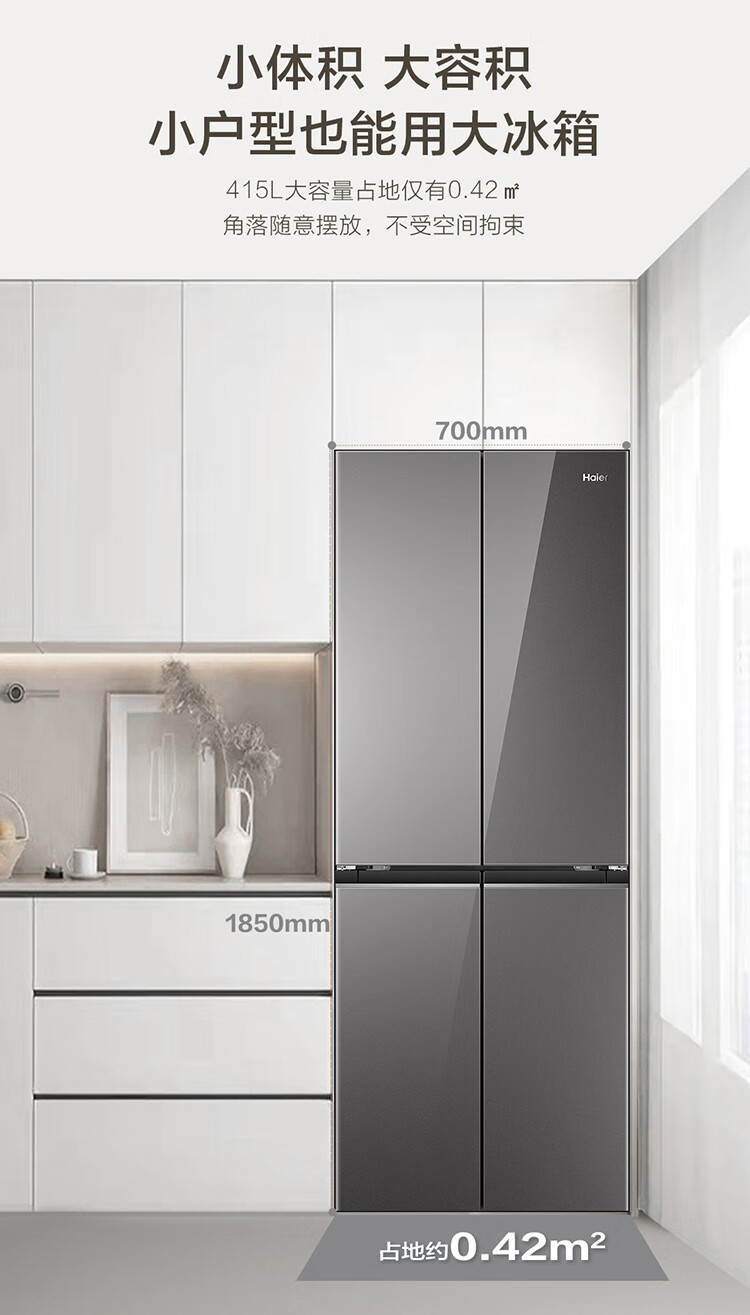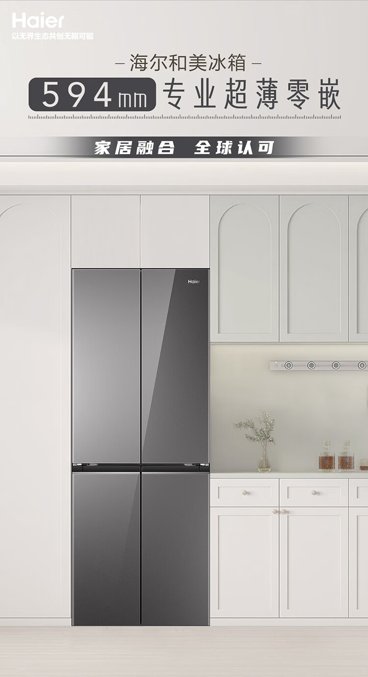 海尔(Haier)和美系列415L十字门冰箱超薄零嵌入宽70厘米一级双变频风冷EPP超净系统冷藏干湿分储技术25年新款 博卡灰+冷藏三档变温+彩晶玻璃面