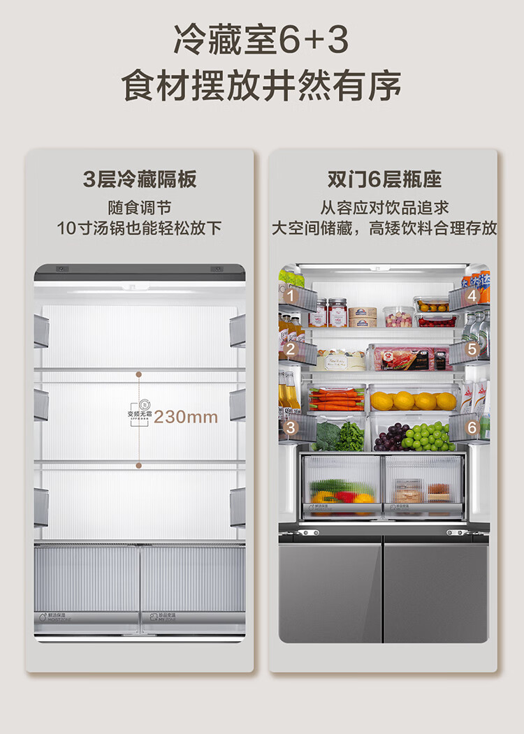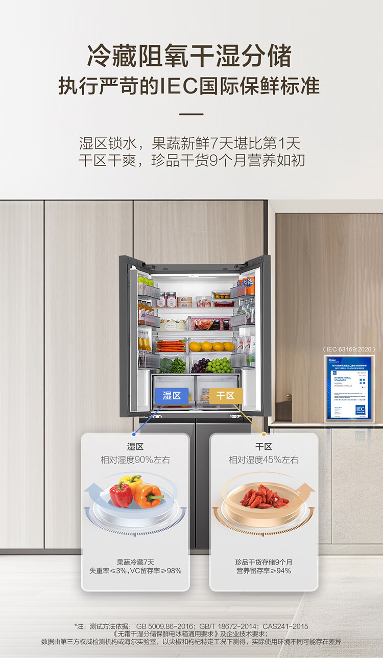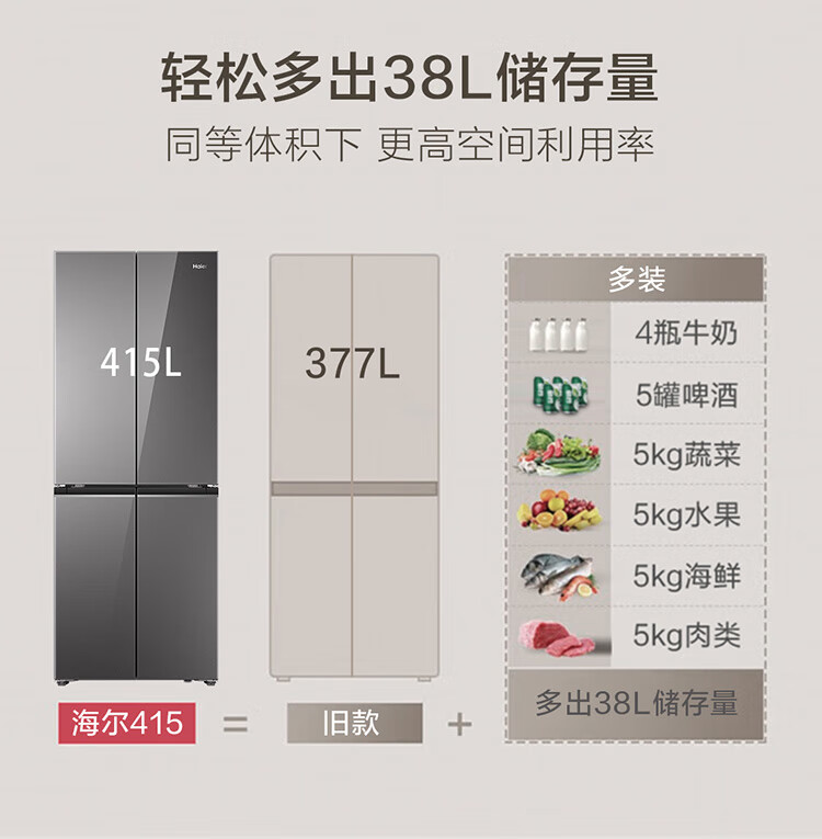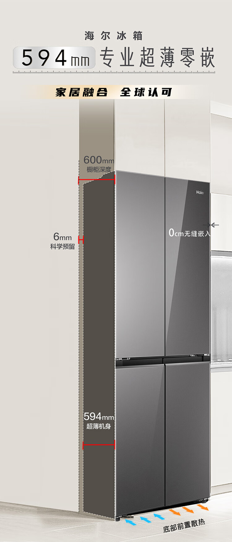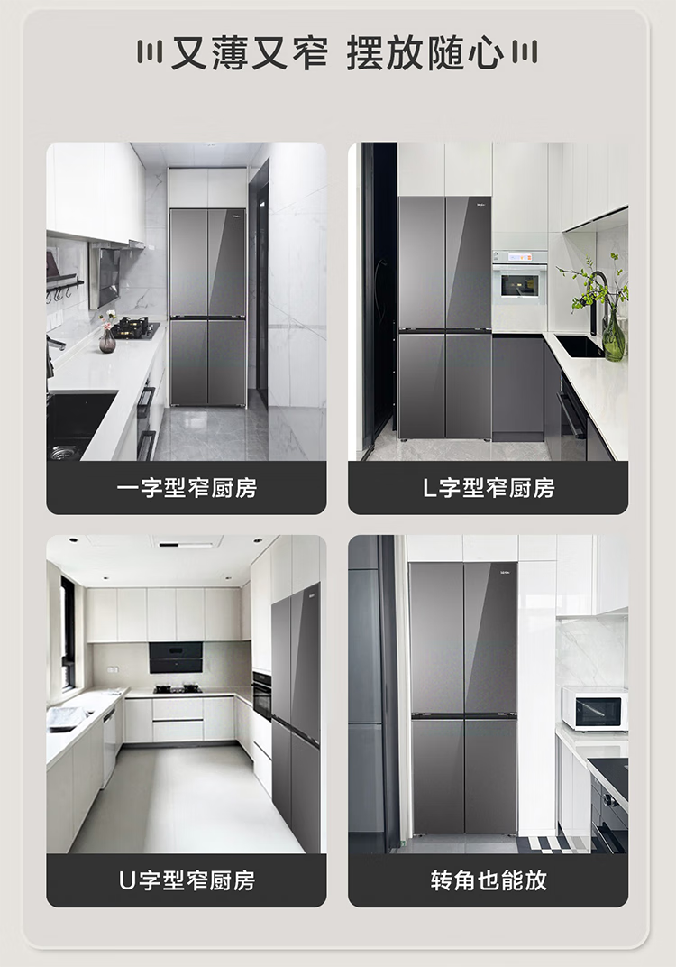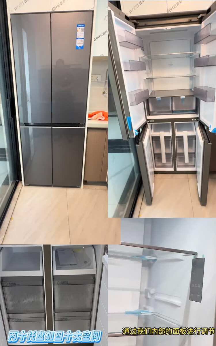 海尔(Haier)和美系列415L十字门冰箱超薄零嵌入宽70厘米一级双变频风冷EPP超净系统冷藏干湿分储技术25年新款 博卡灰+冷藏三档变温+彩晶玻璃面