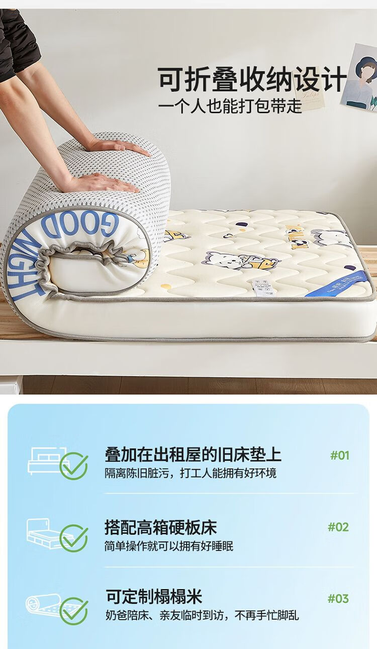 海诗圣堡加厚乳胶学生宿舍床垫0.9m单人榻榻米软垫可折叠上下铺床褥子海绵 L爆咪花6cm 60x120cm(婴儿床颜色随机)