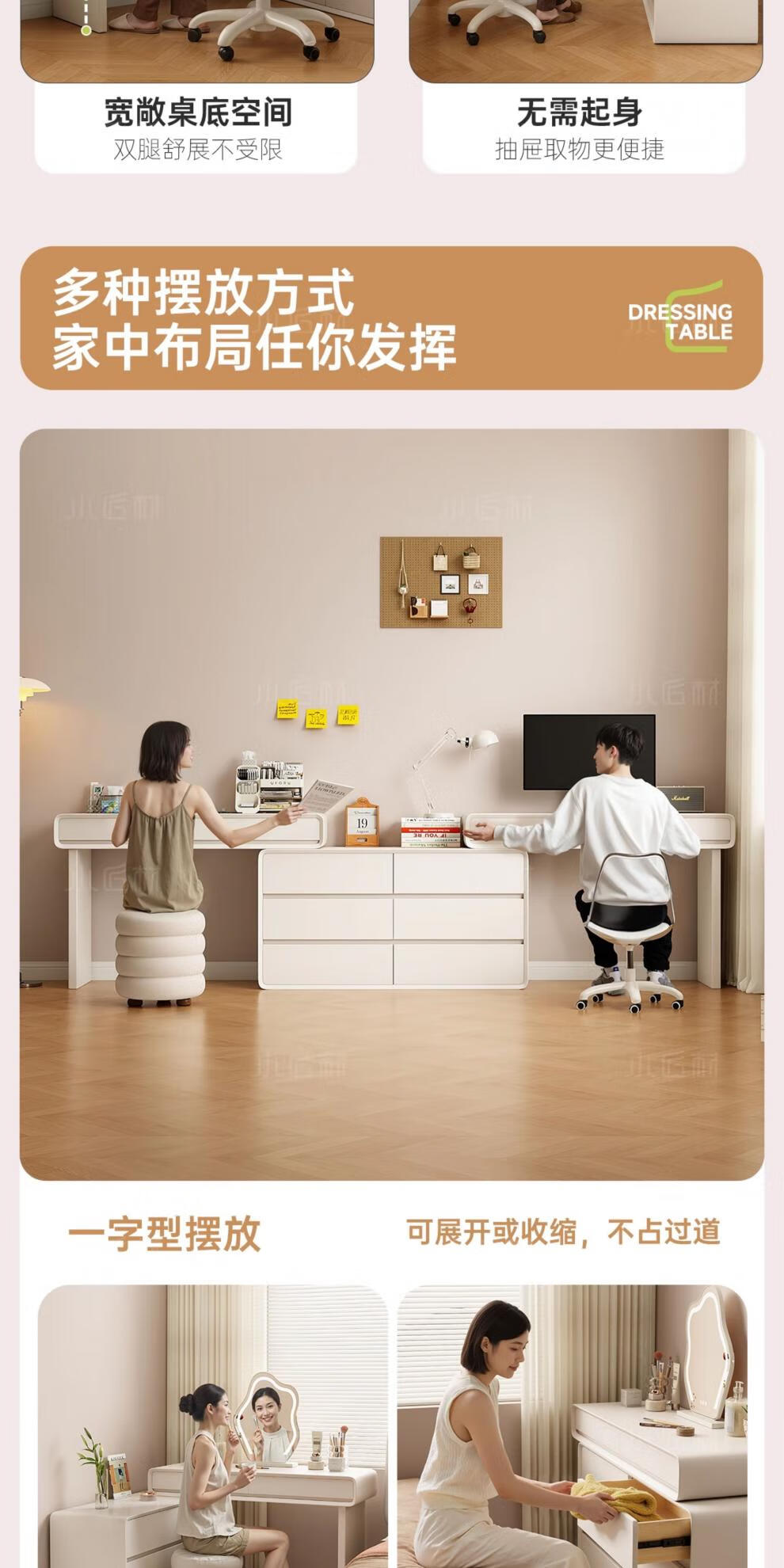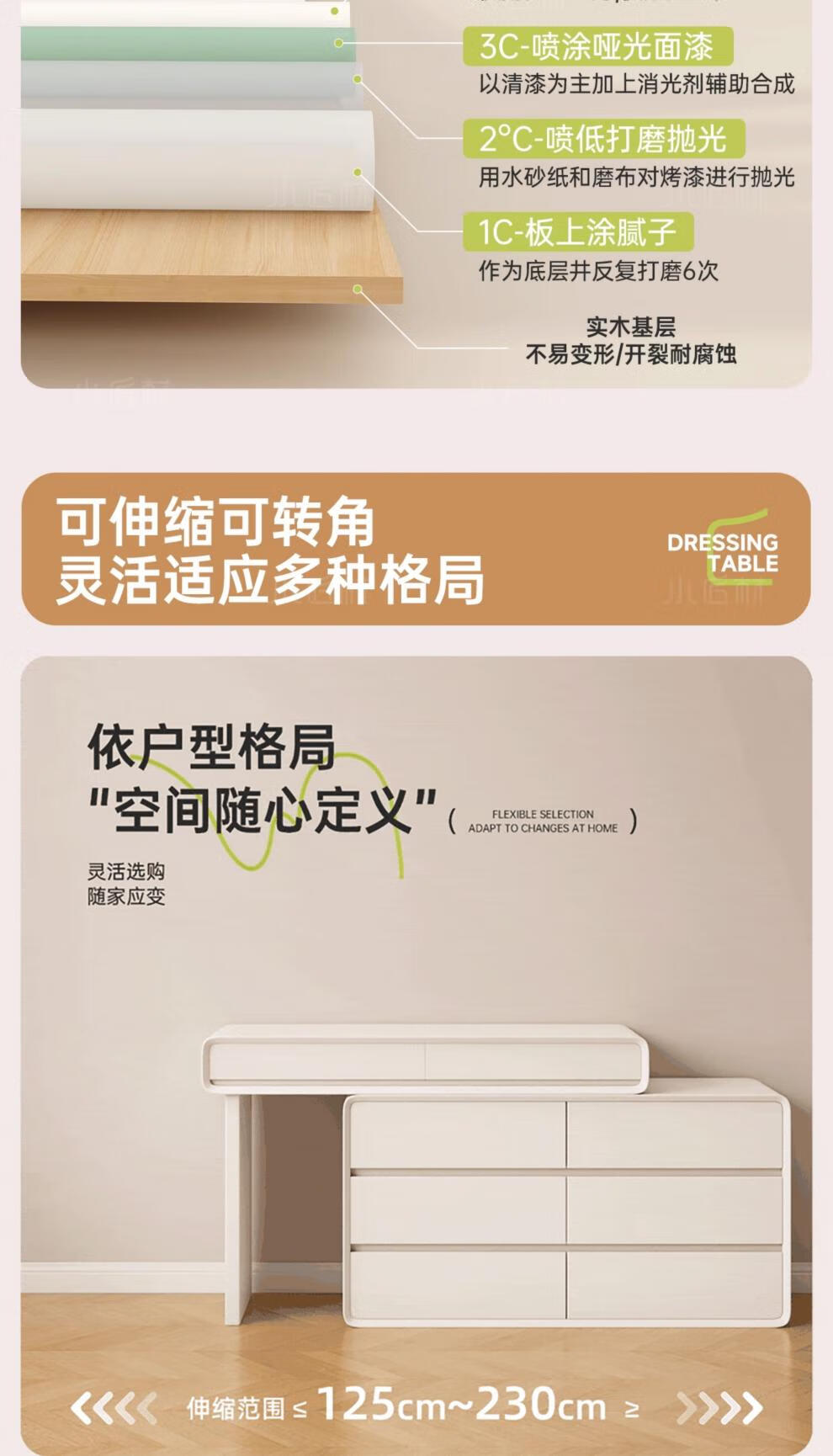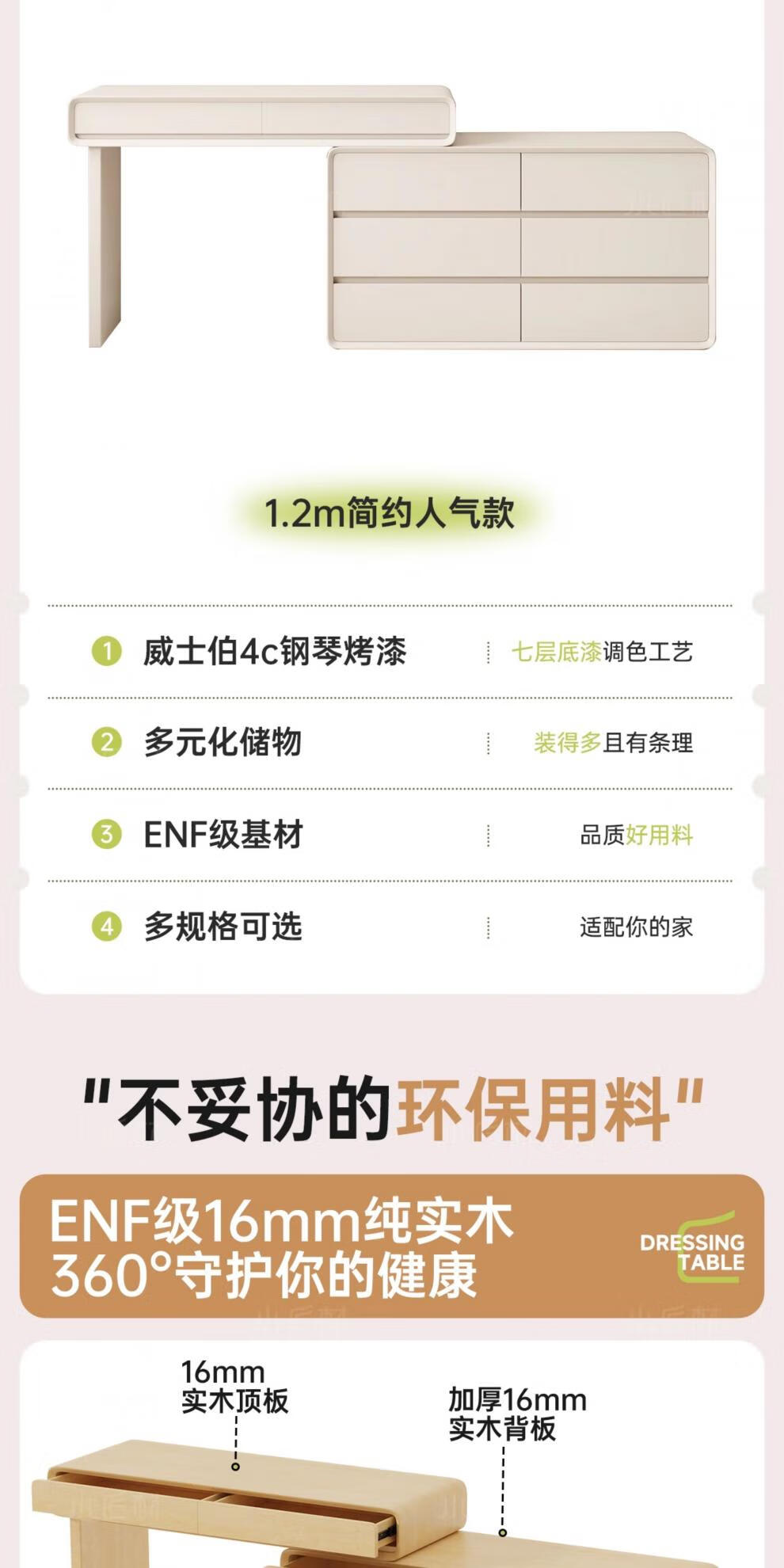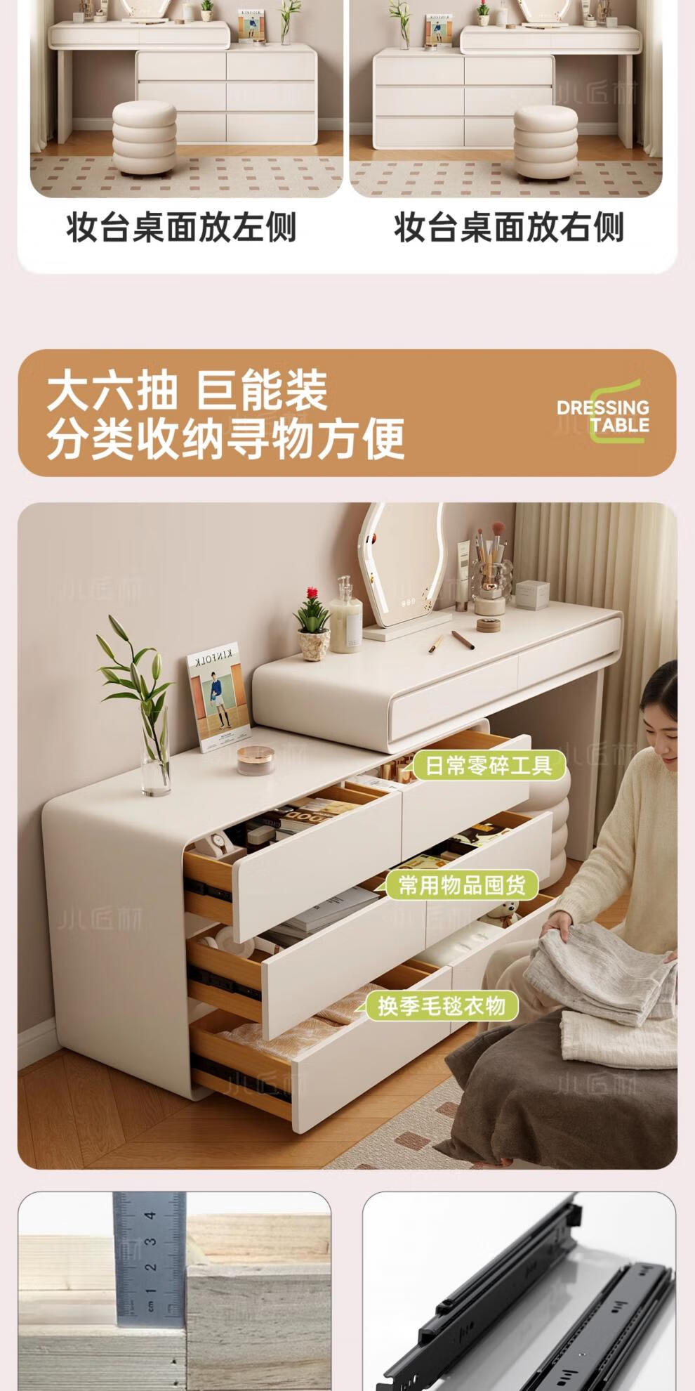 迈途森现代简约卧室床尾斗柜梳妆台一体伸缩化妆桌家具2026新款生态实木 奶白色六柜+1.2m妆台+妆凳+妆镜 【ENF级全实木】带货上门包安装