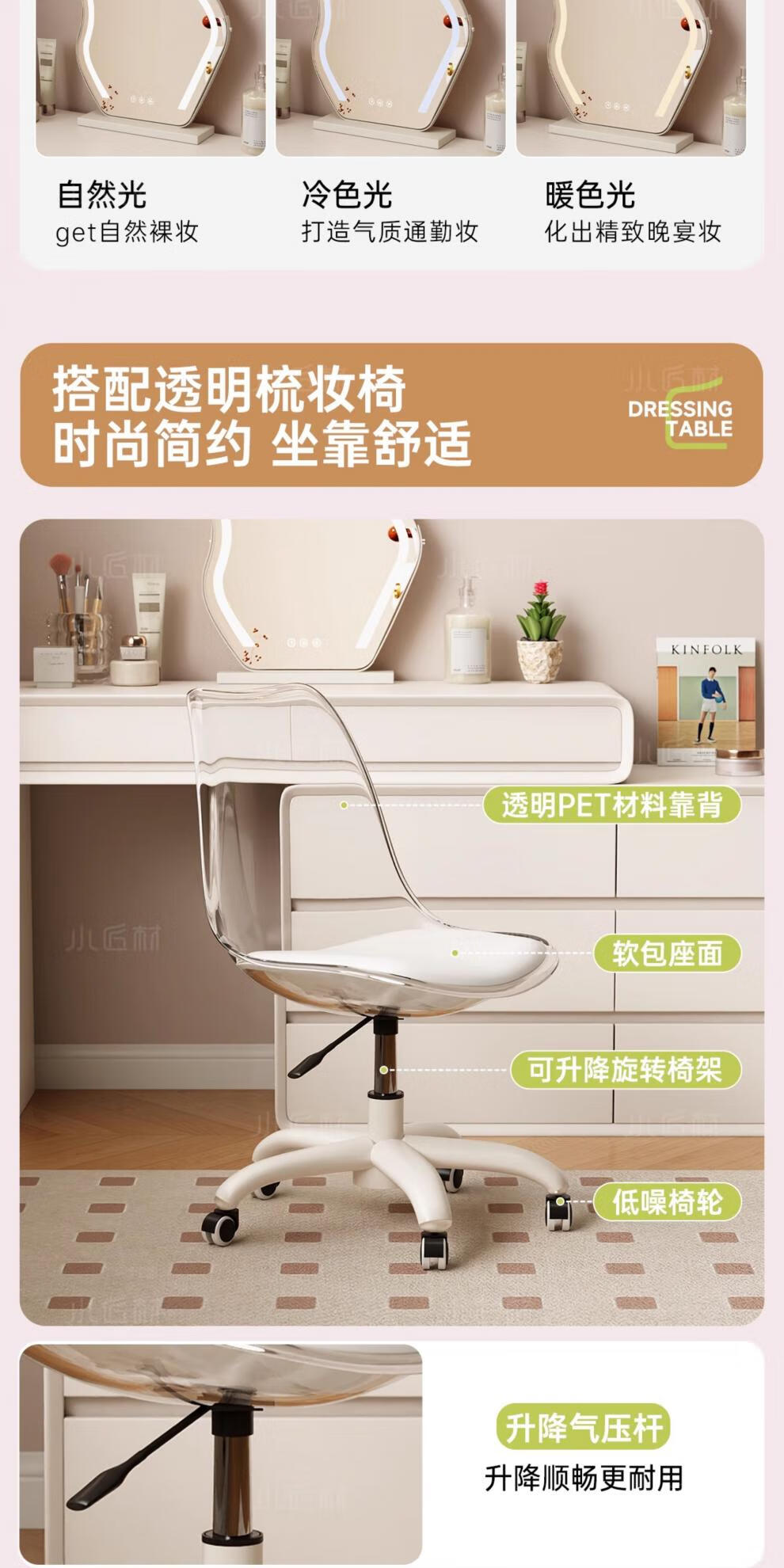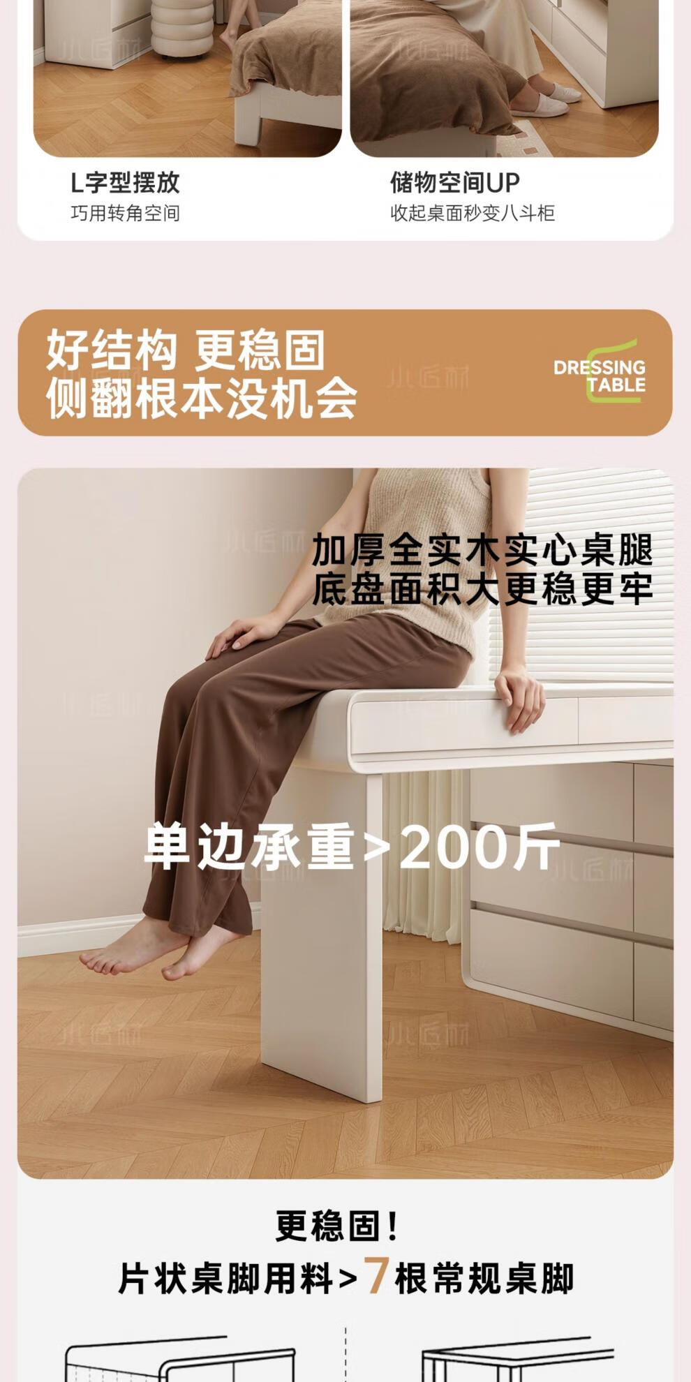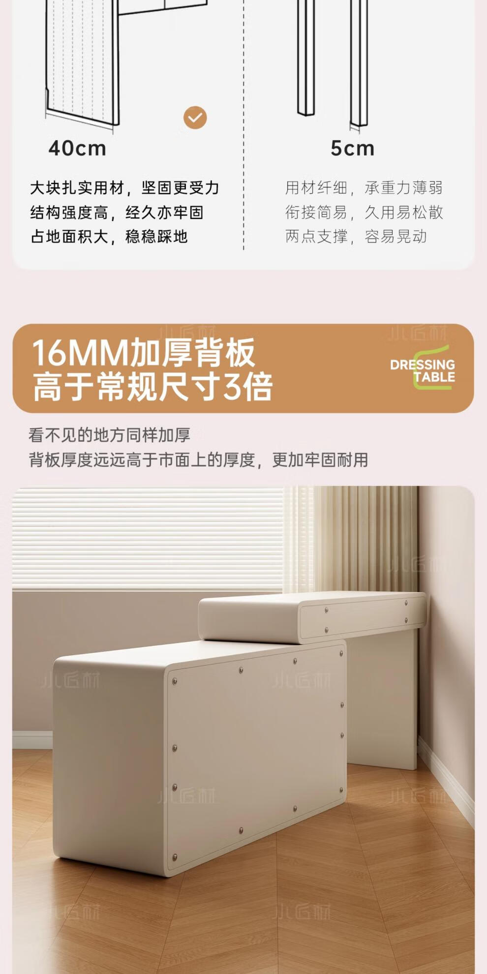 迈途森2026款梳实木小型梳妆台迷你化妆桌卧室床头柜斗柜书桌简约墙角柜 奶白色0.8m妆台(云朵镜+方块凳 带货上楼包安装【ENF全实木】