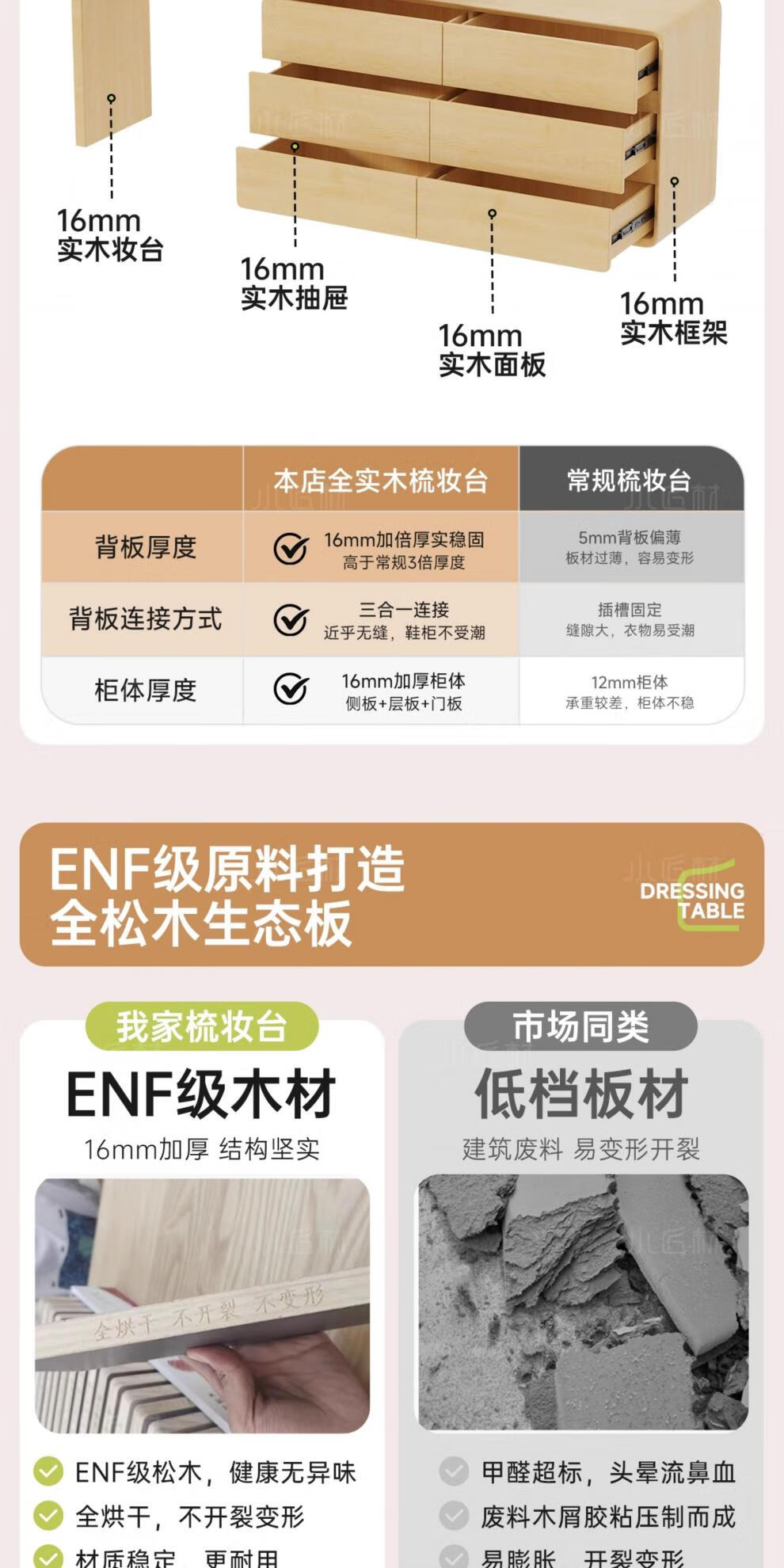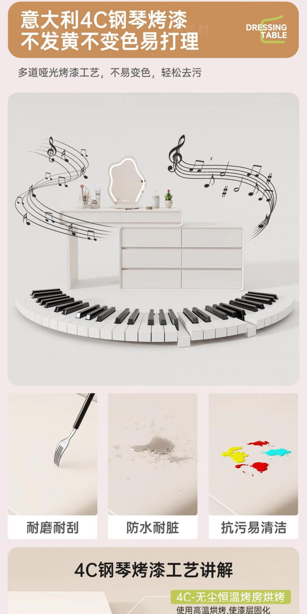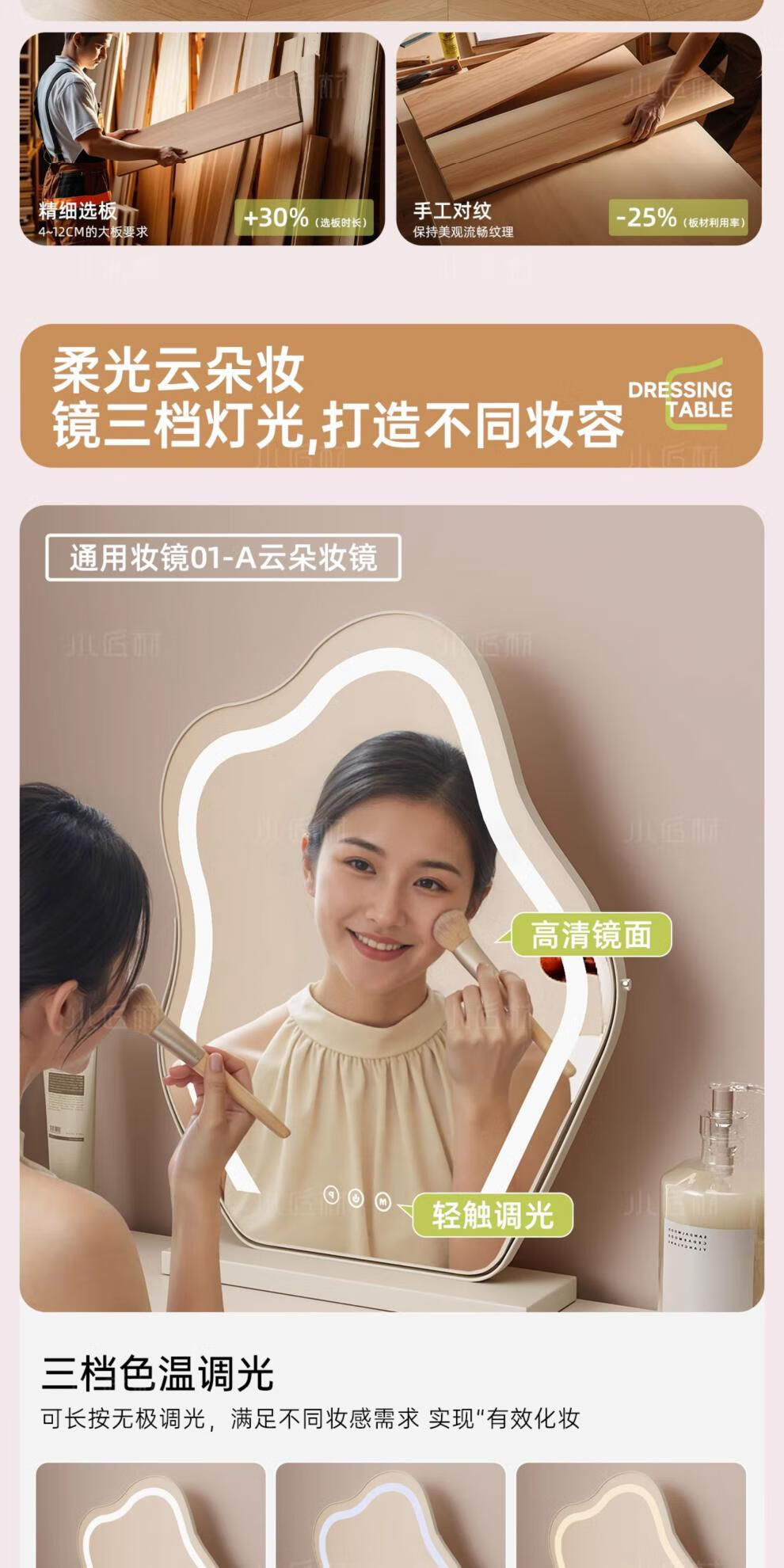 迈途森2026款梳实木小型梳妆台迷你化妆桌卧室床头柜斗柜书桌简约墙角柜 奶白色0.8m妆台(云朵镜+方块凳 带货上楼包安装【ENF全实木】