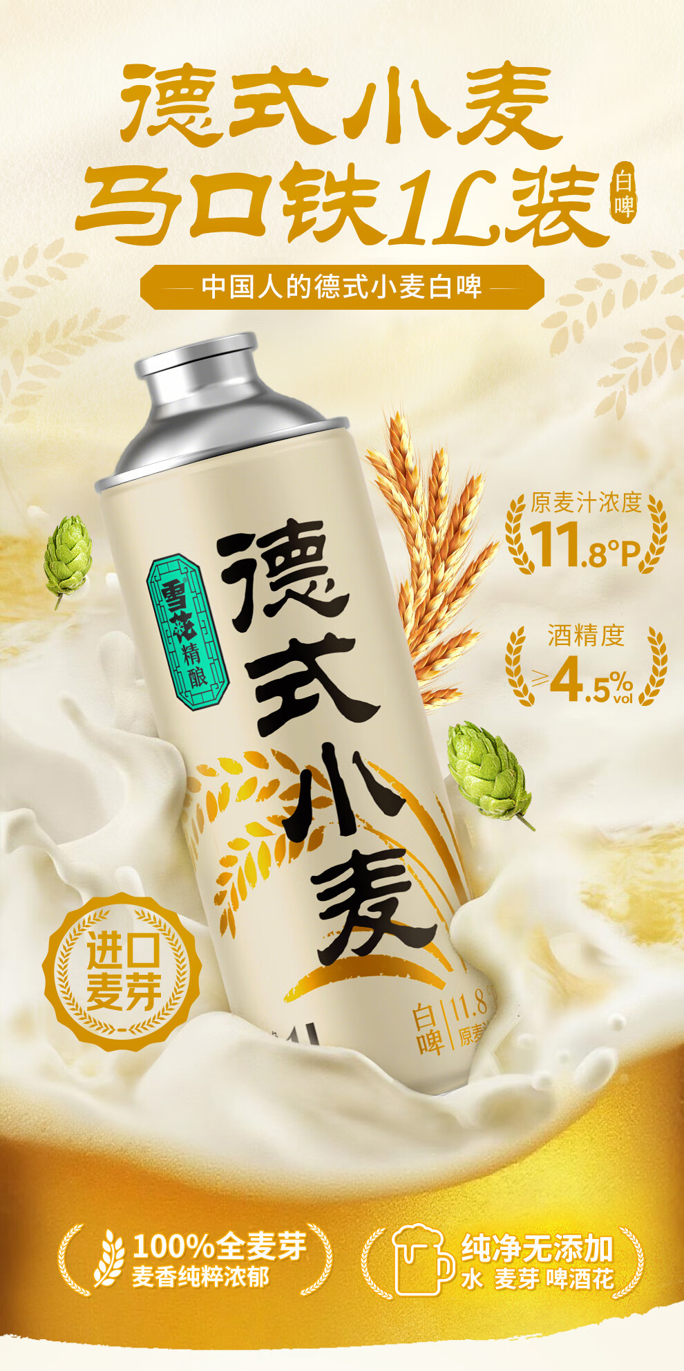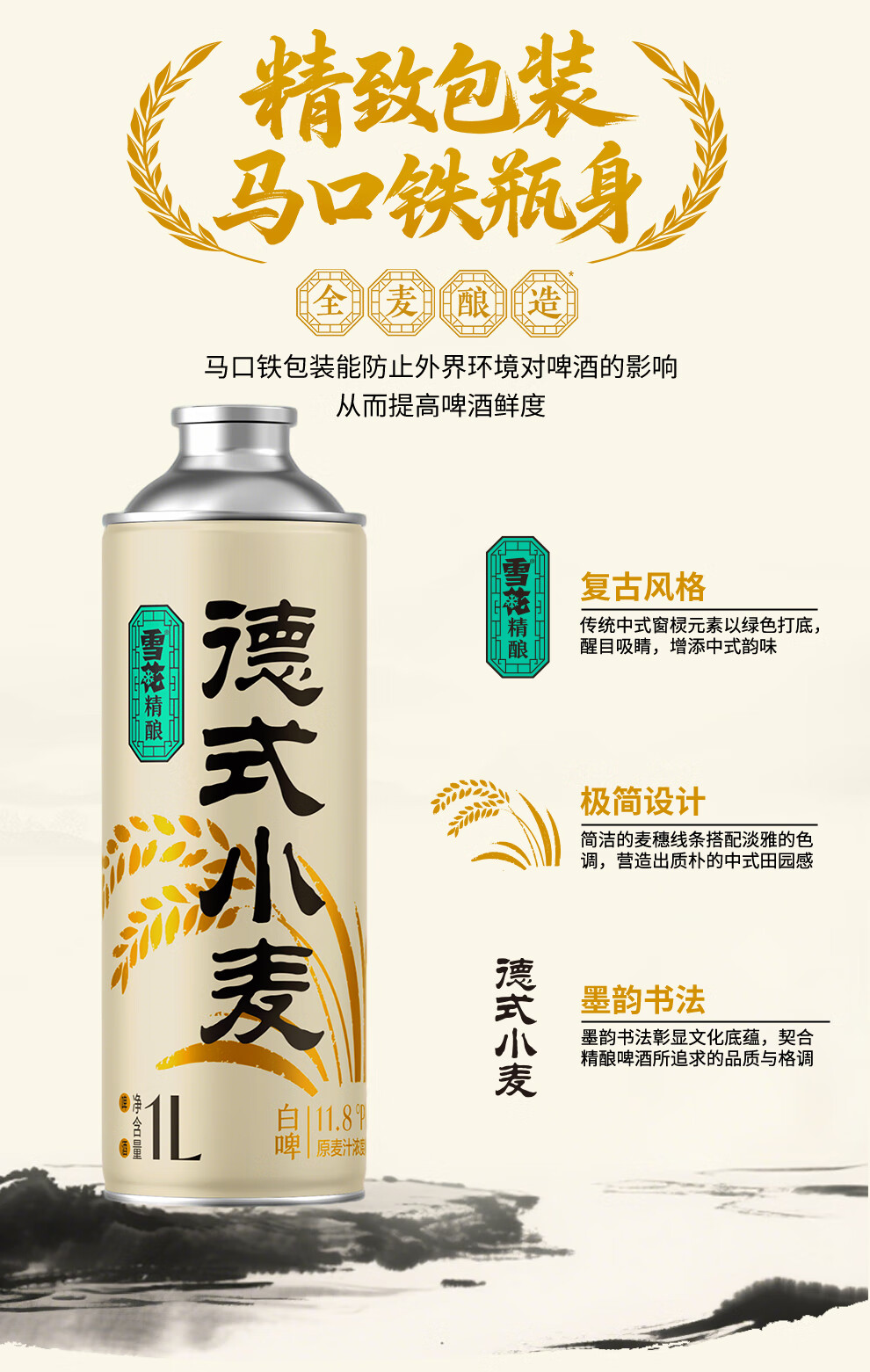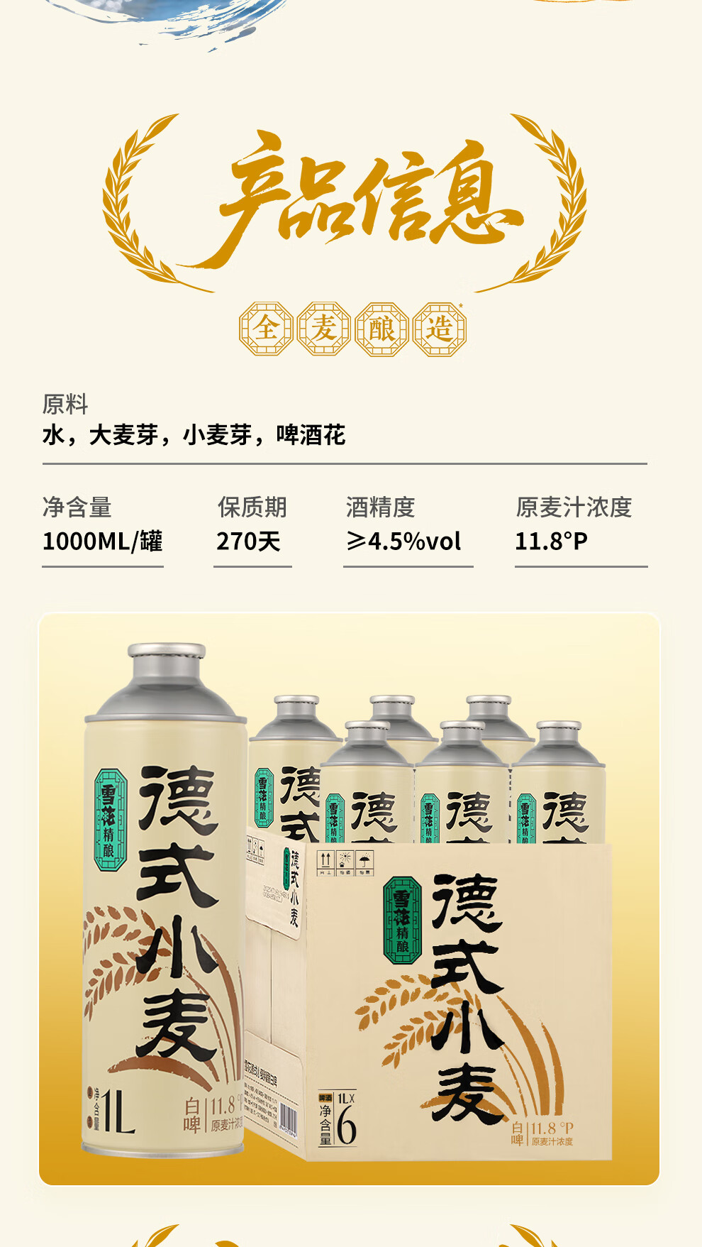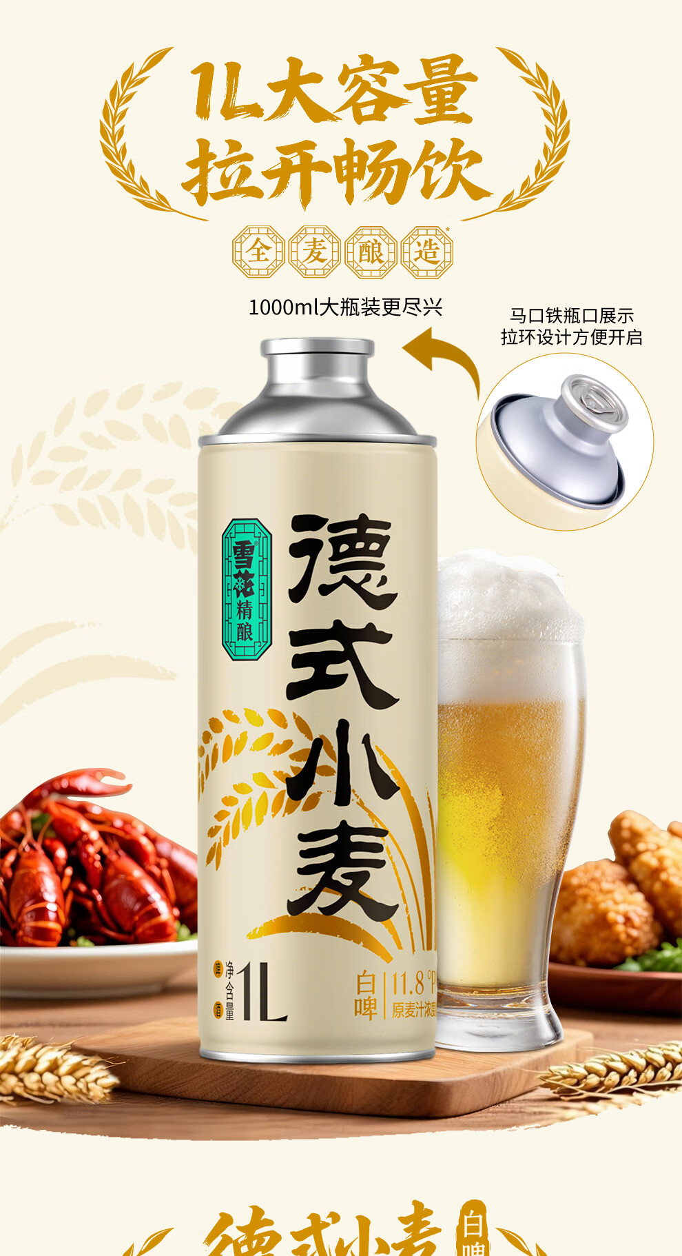 雪花啤酒(Snowbeer) 德式小麦精酿白啤11度1L*6罐 整箱装 热门商品