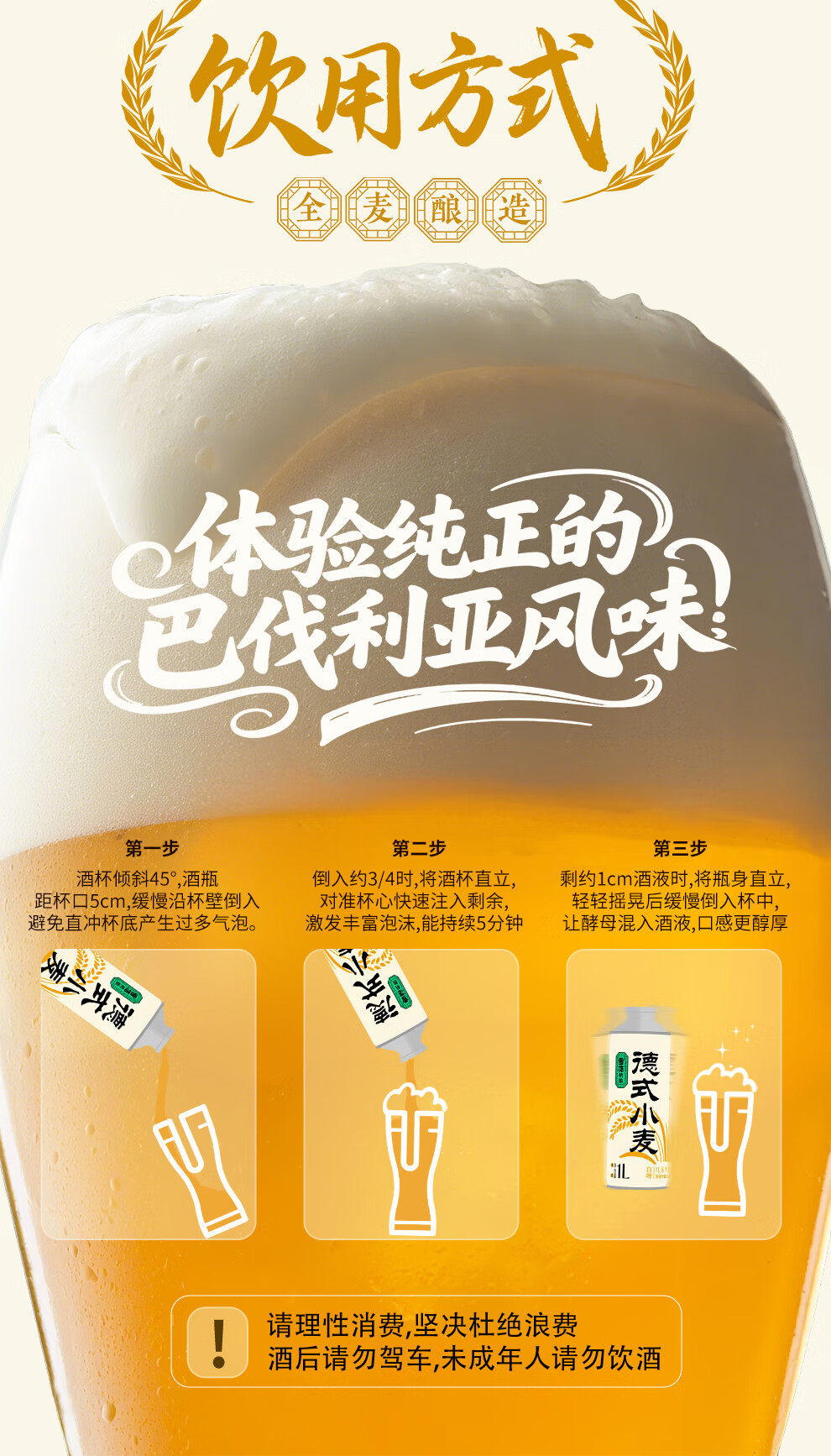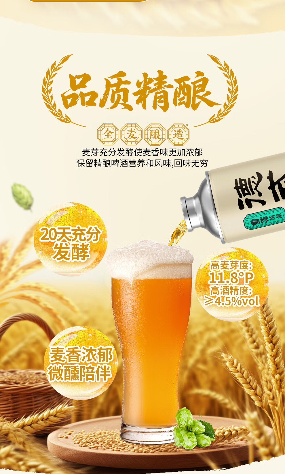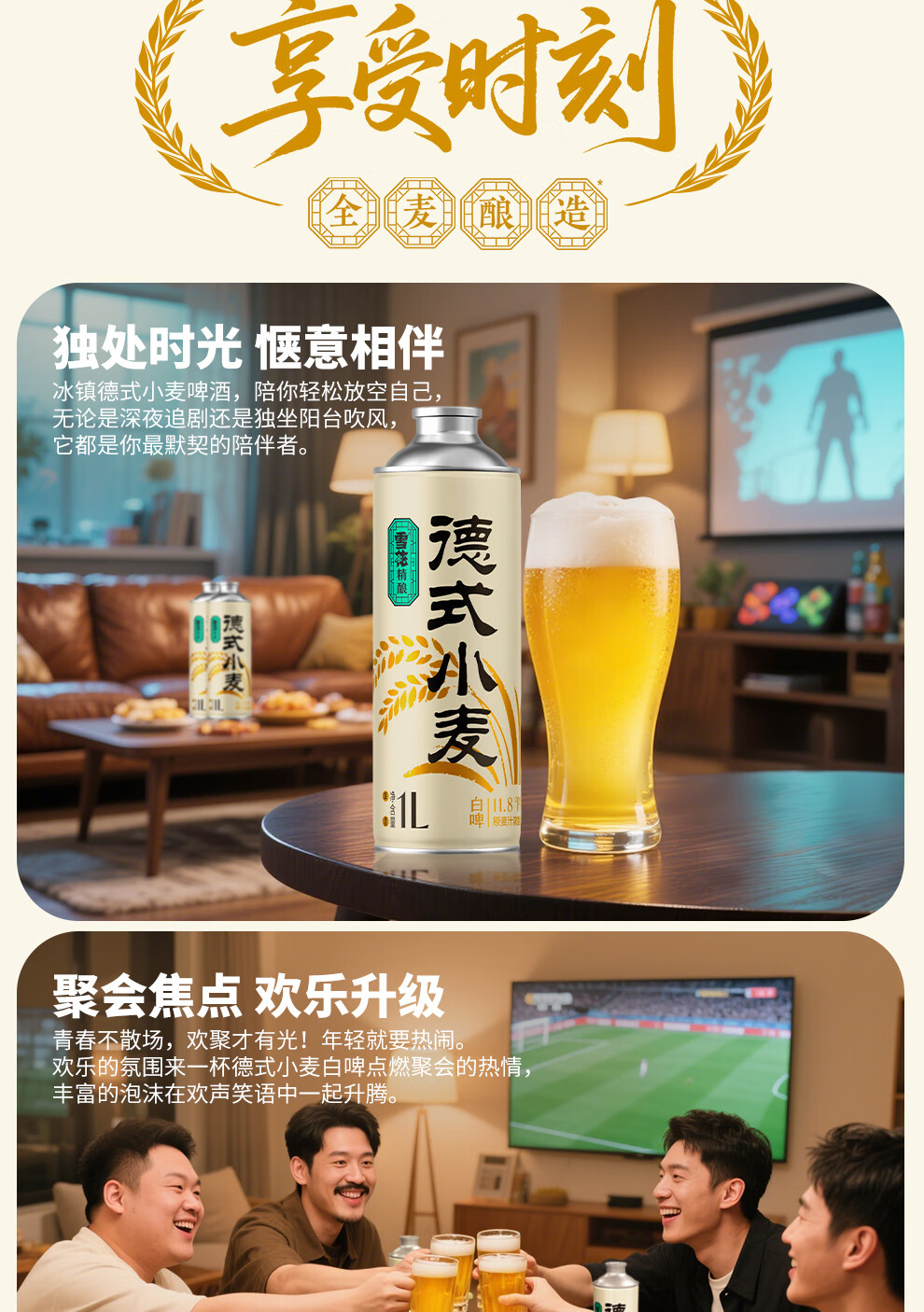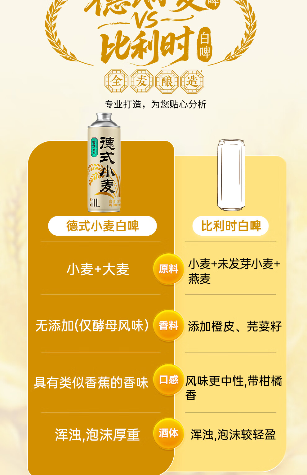 雪花啤酒(Snowbeer) 德式小麦精酿白啤11度1L*6罐 整箱装 热门商品